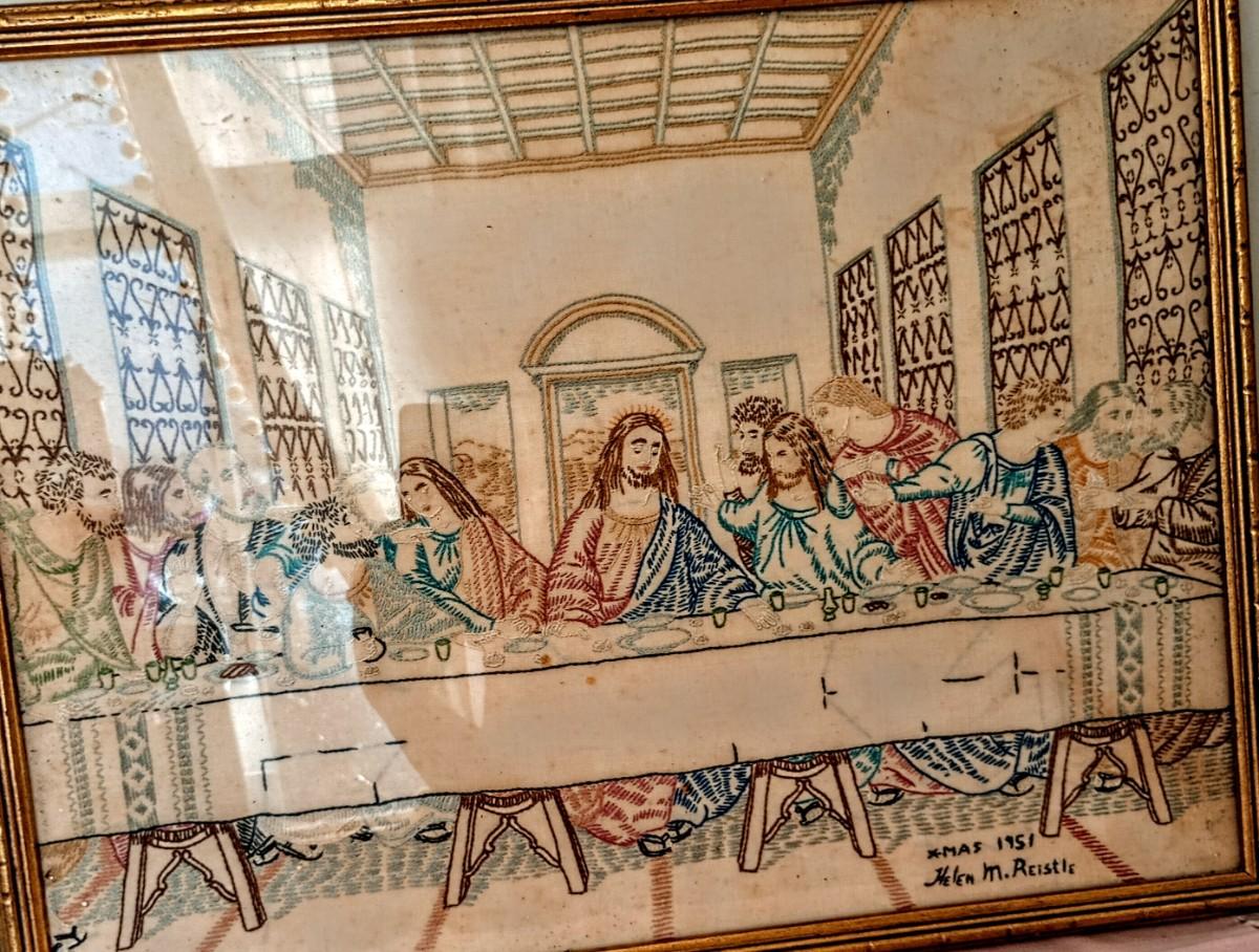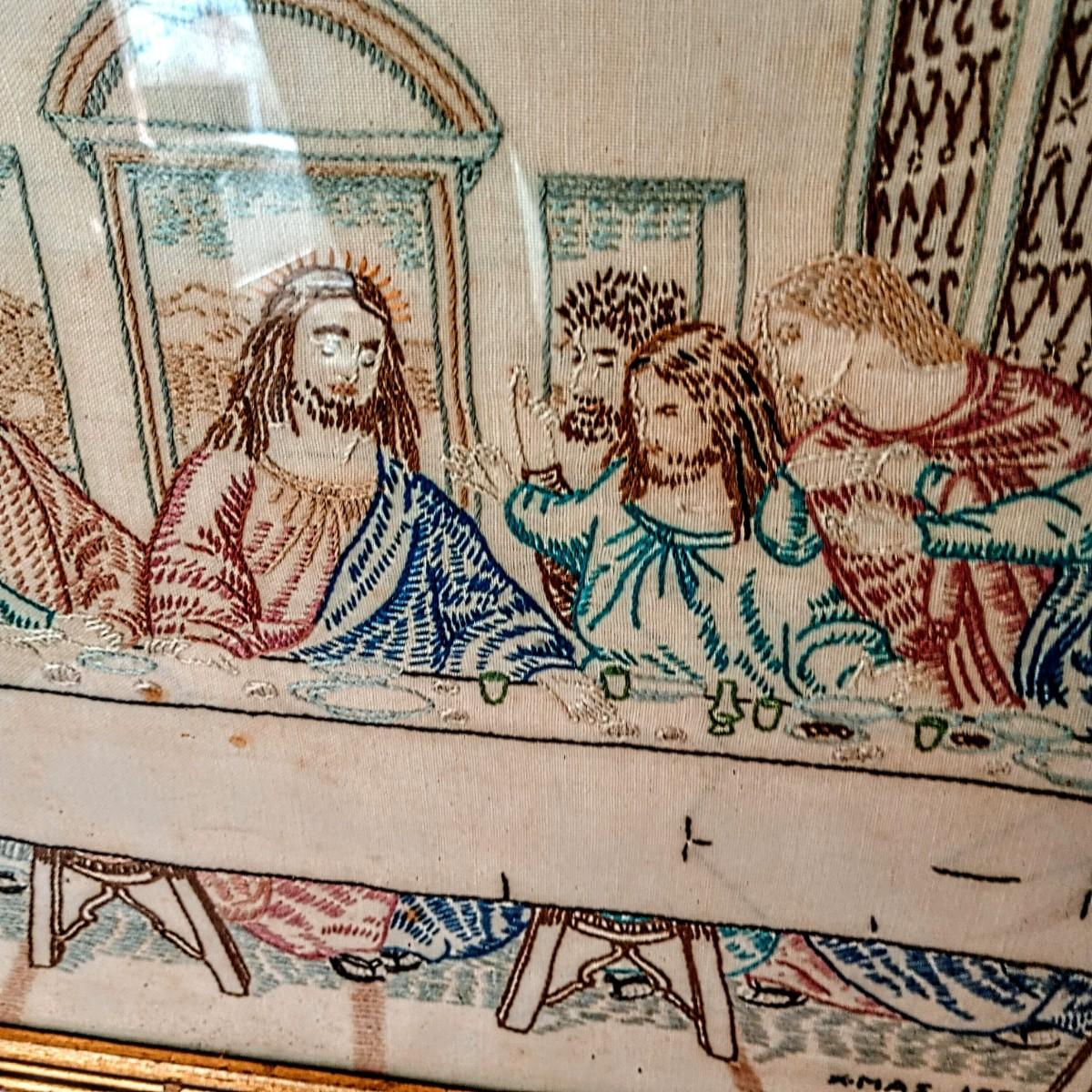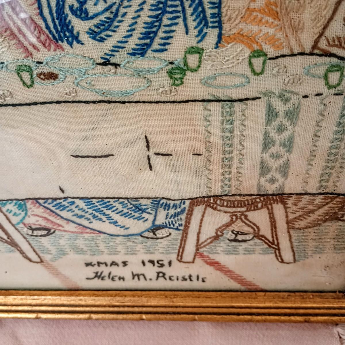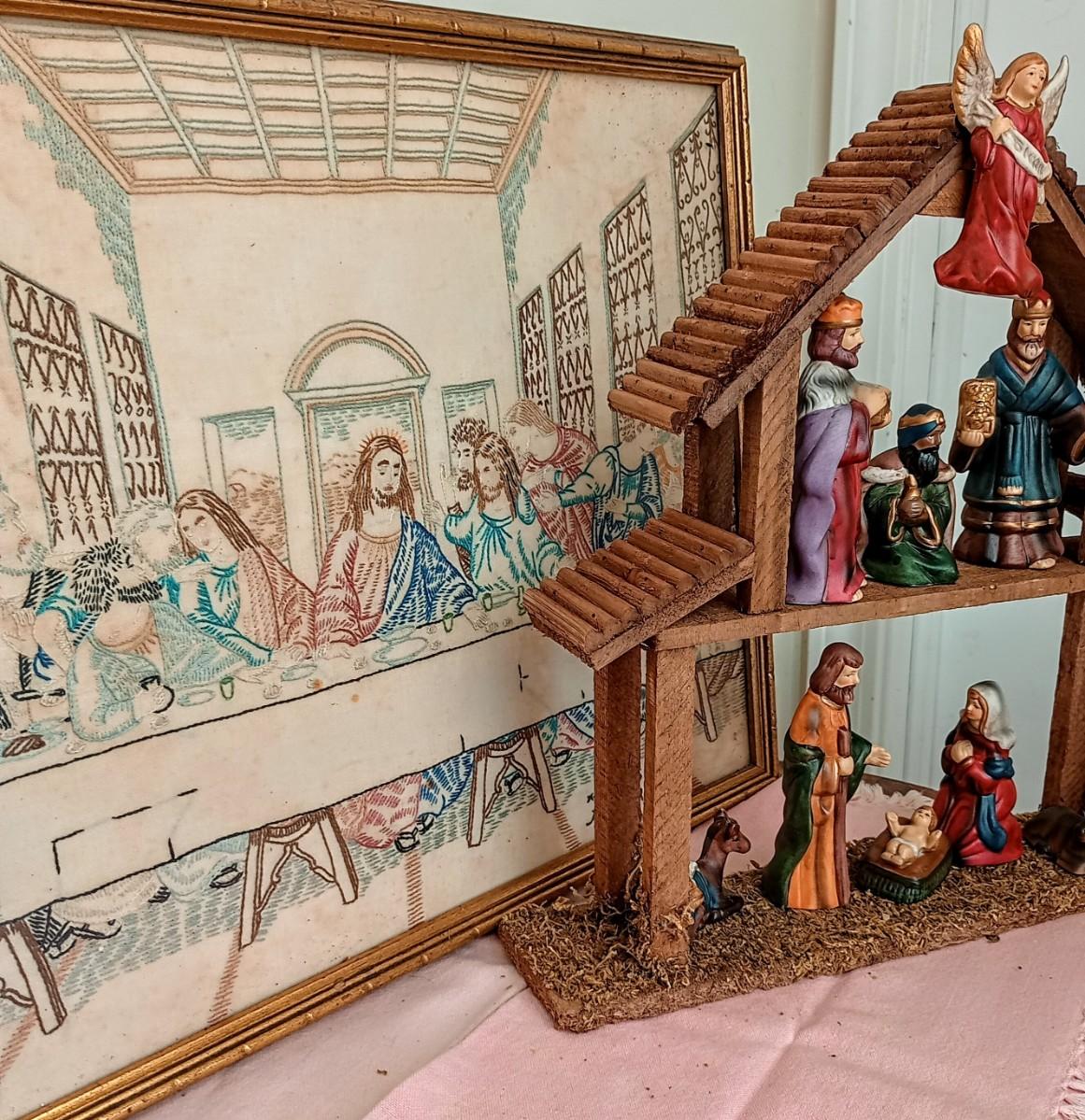LOT 74U: Embroidered "Last Supper" Picture and Manger Set