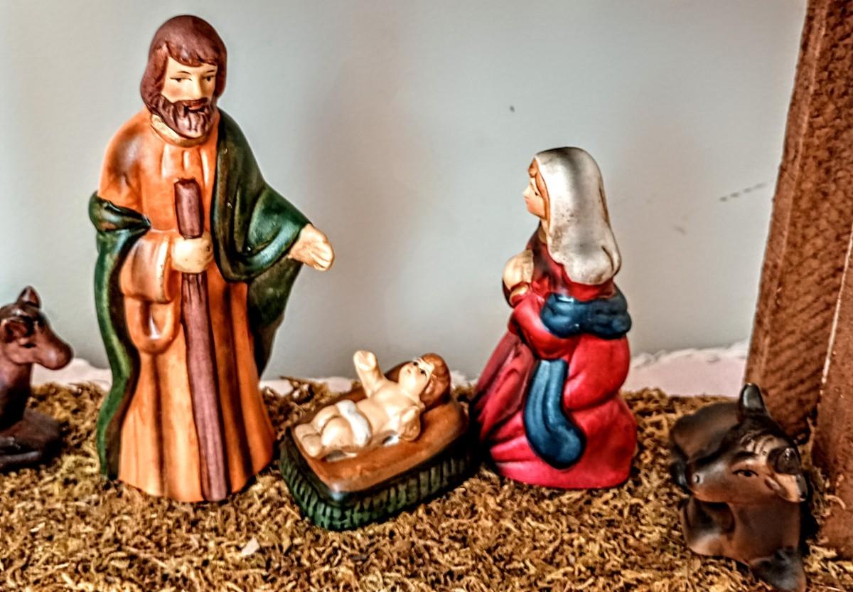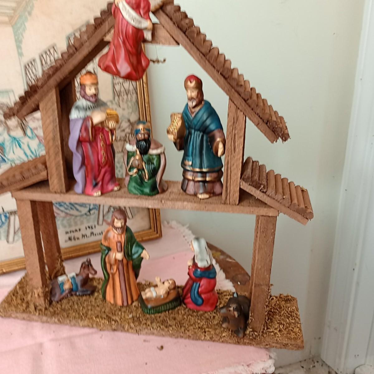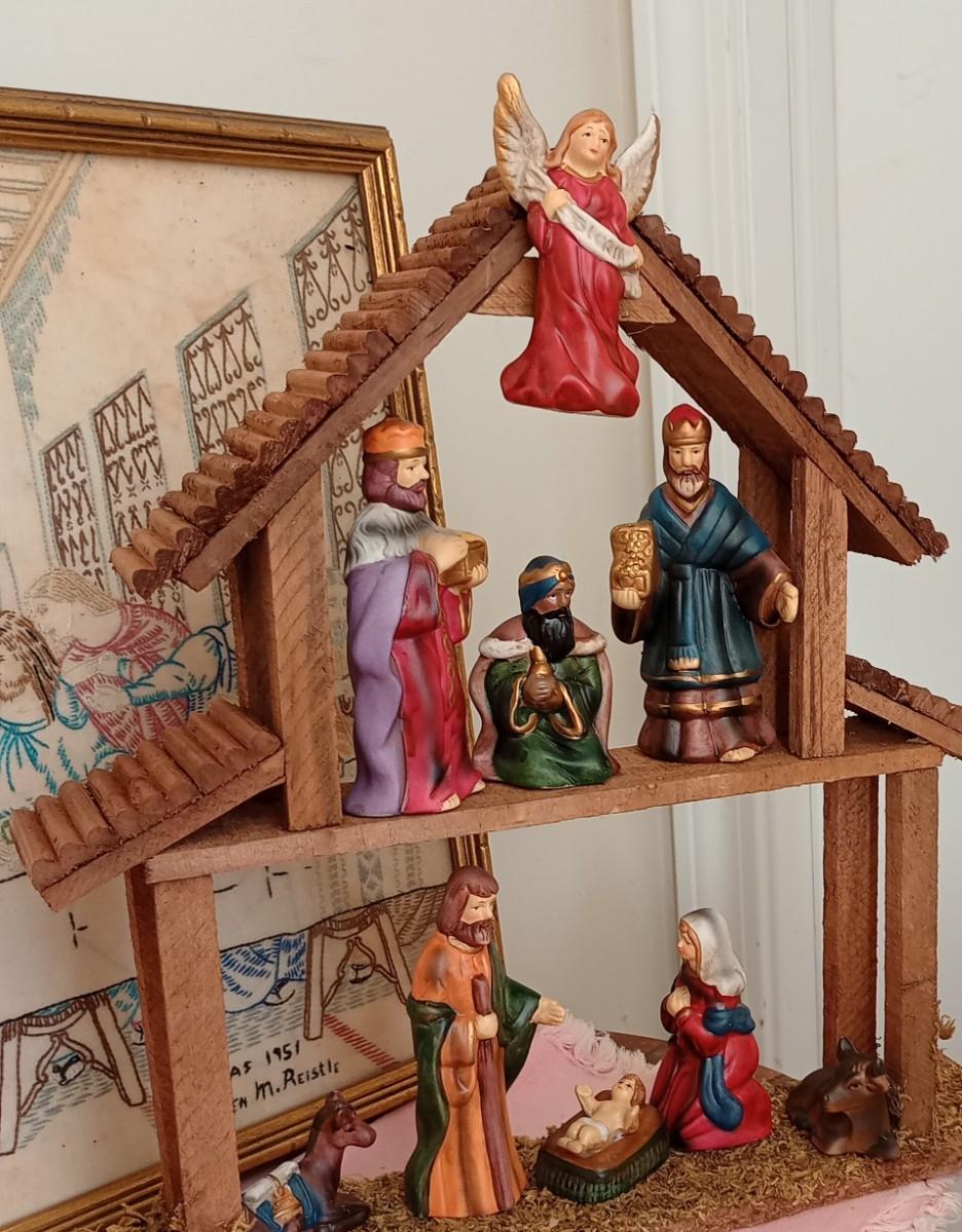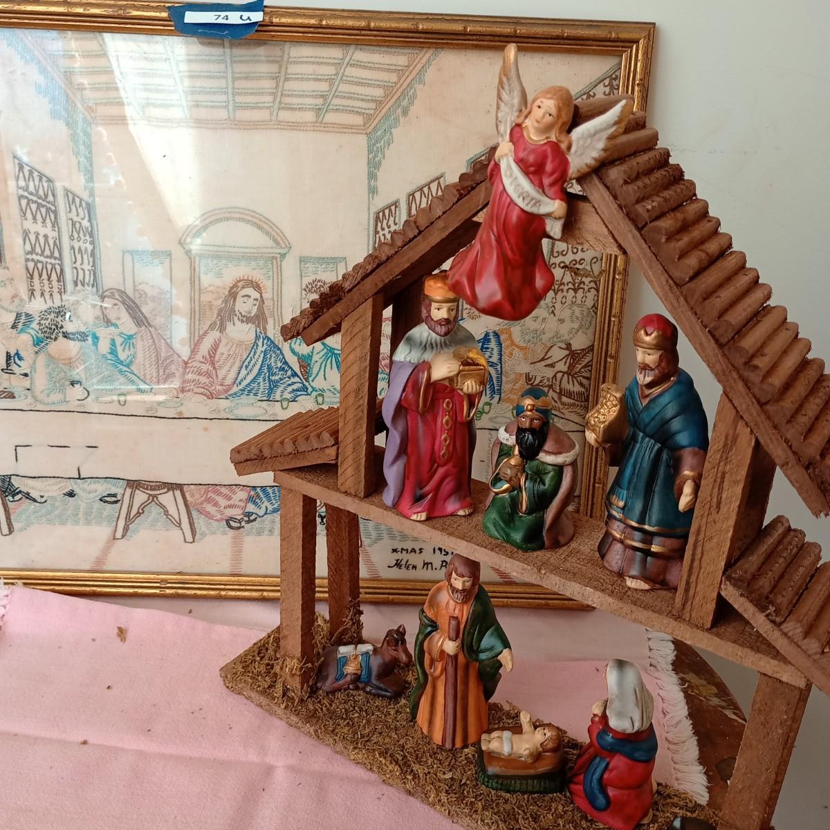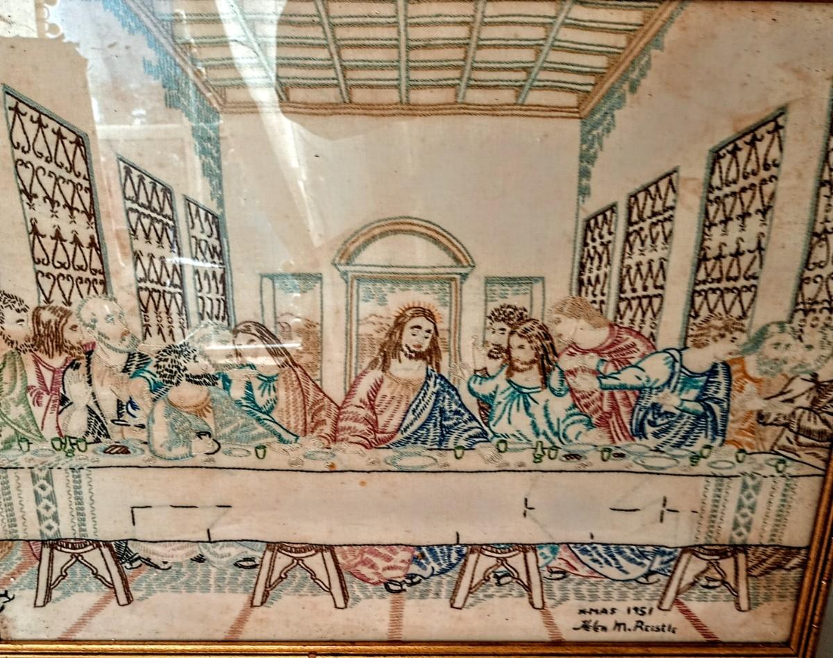 LOT 74U: Embroidered "Last Supper" Picture and Manger Set