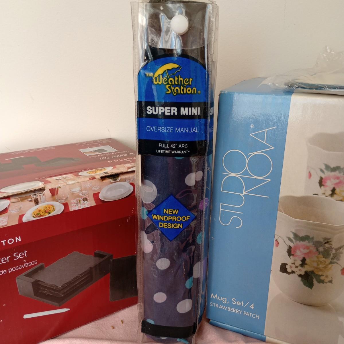 LOT 76U: All New Gift Items- Candle, Coasters, Umbrella, Coffee Cups and More