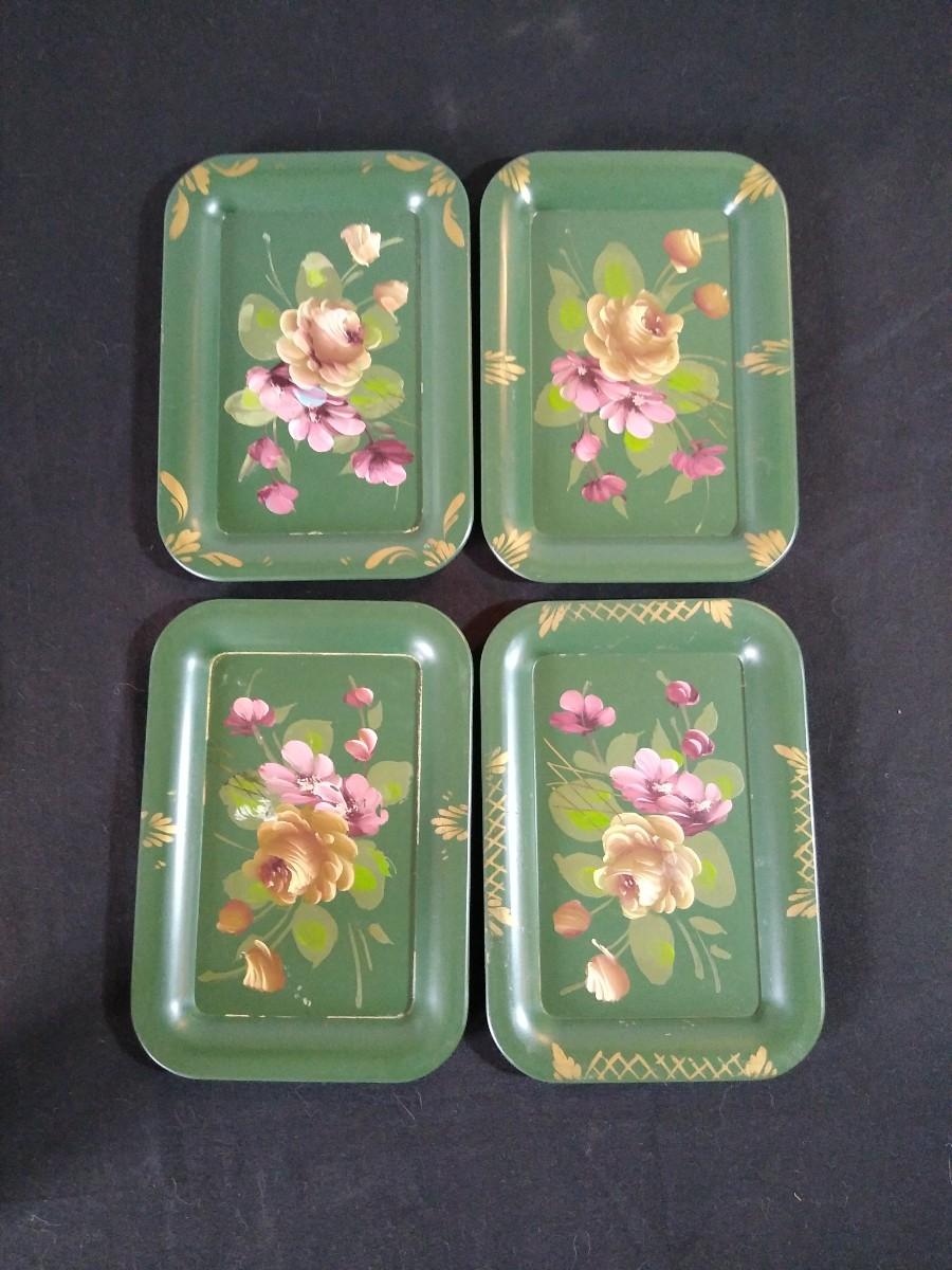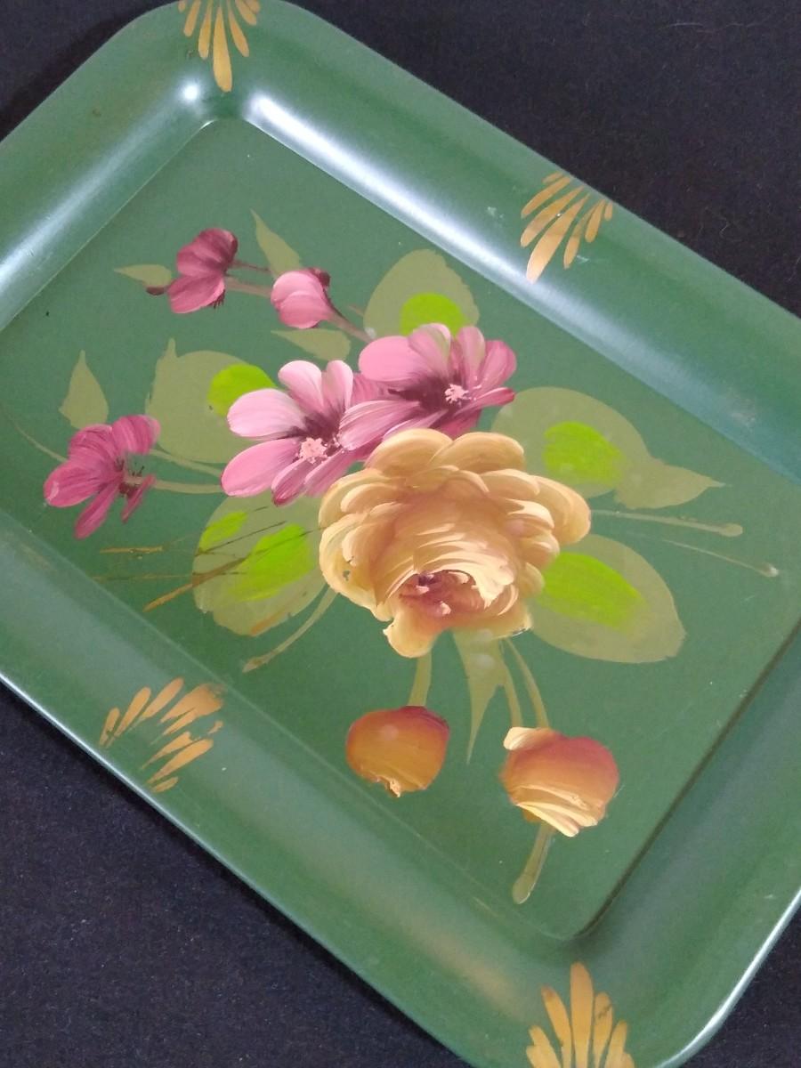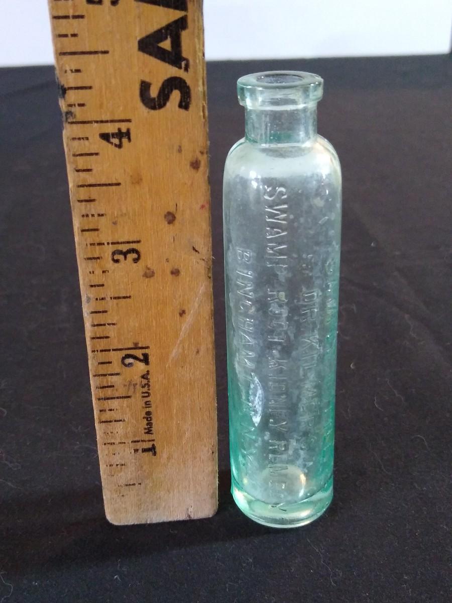 LOT 87L: Dr. Kilmer's Swamp Root Kidney Remedy Glass Bottle, Milk Glass Spice Jar & Hand-Painted Trays