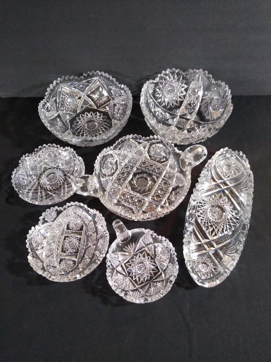 LOT 95L: Vintage Pinwheel & Star Pattern Cut Crystal Serving Dishes, Bowls & More
