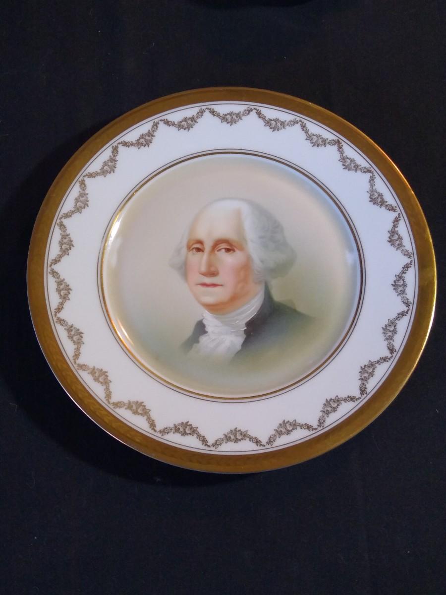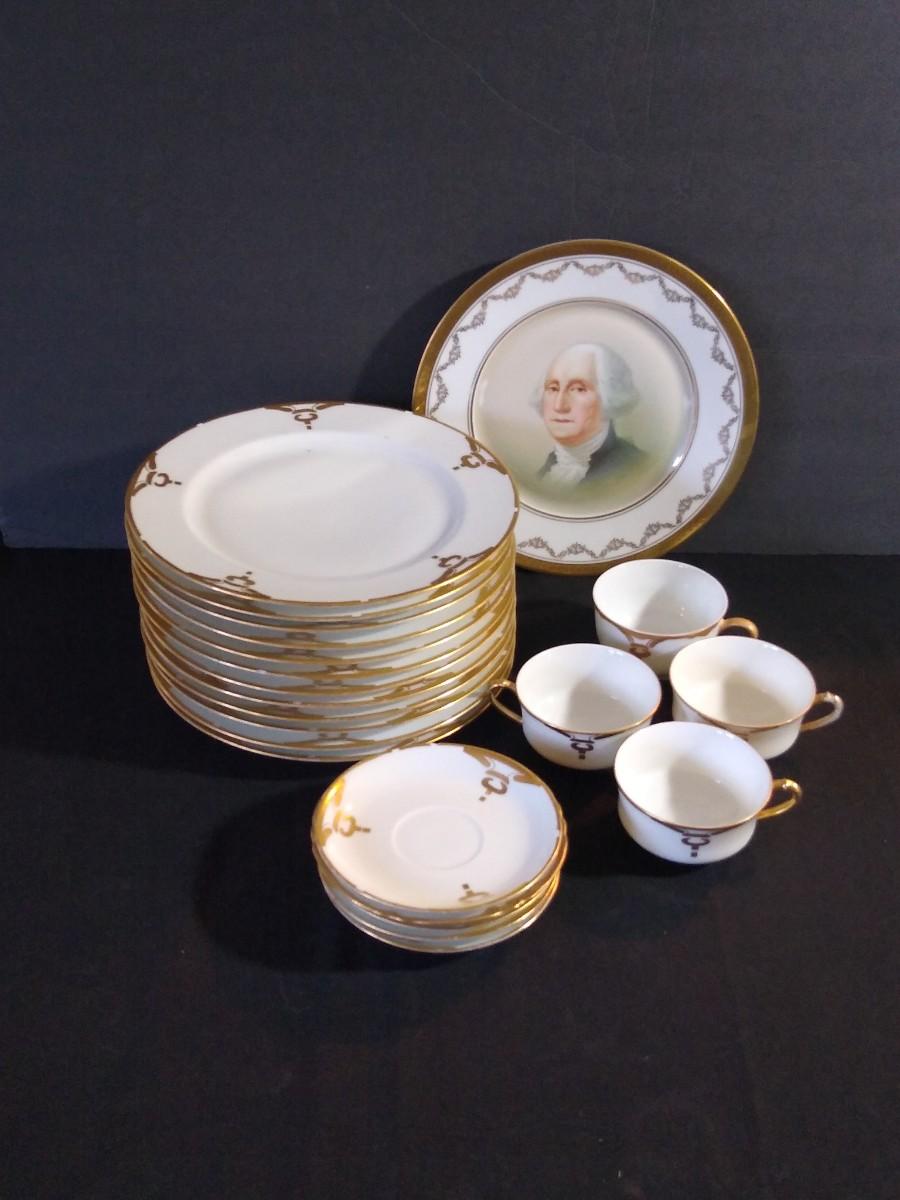 LOT 100L: Tatler Porcelain Portrait Plate of George Washington and Haviland & Lorenz Dishes w/ Hand Painted Trim