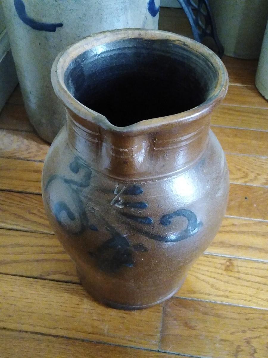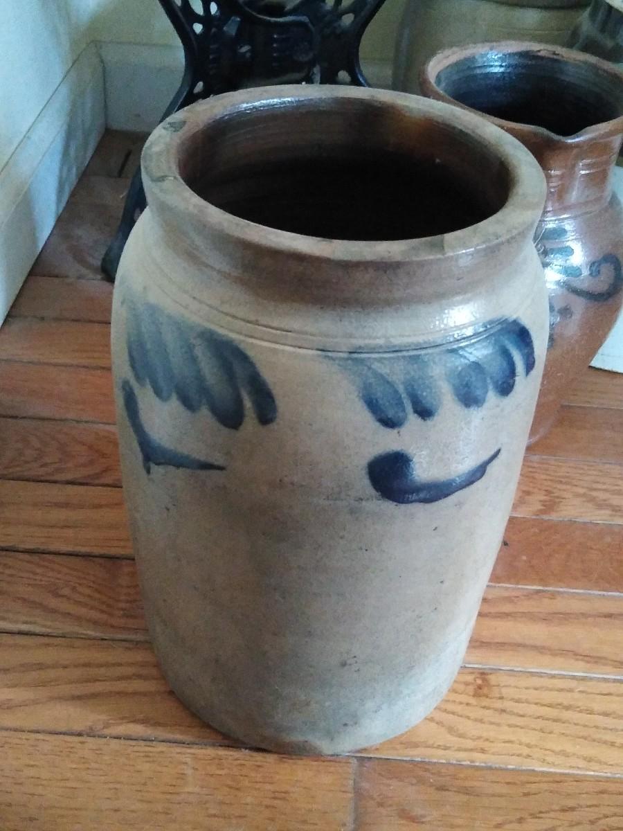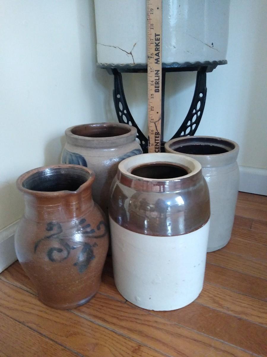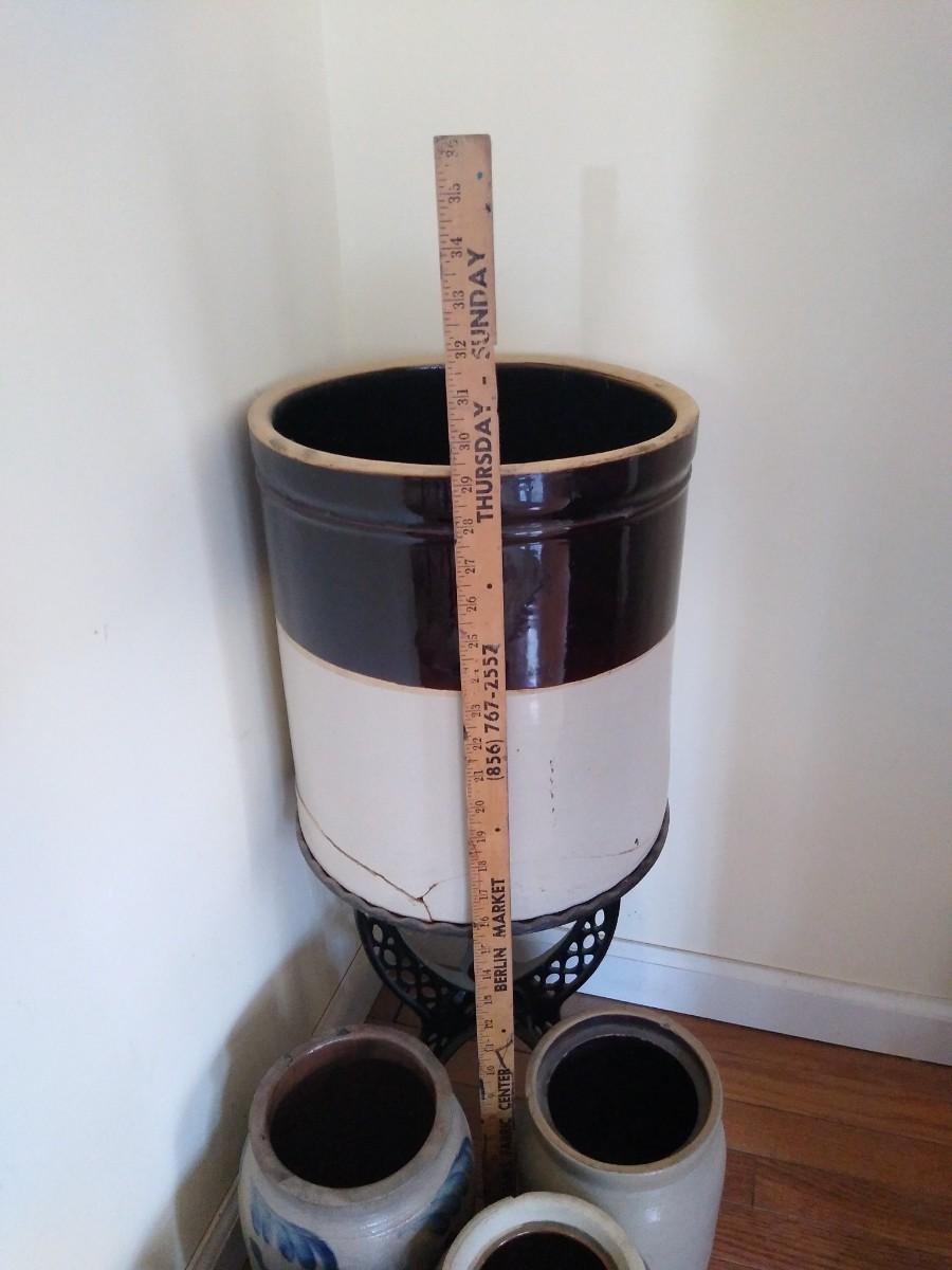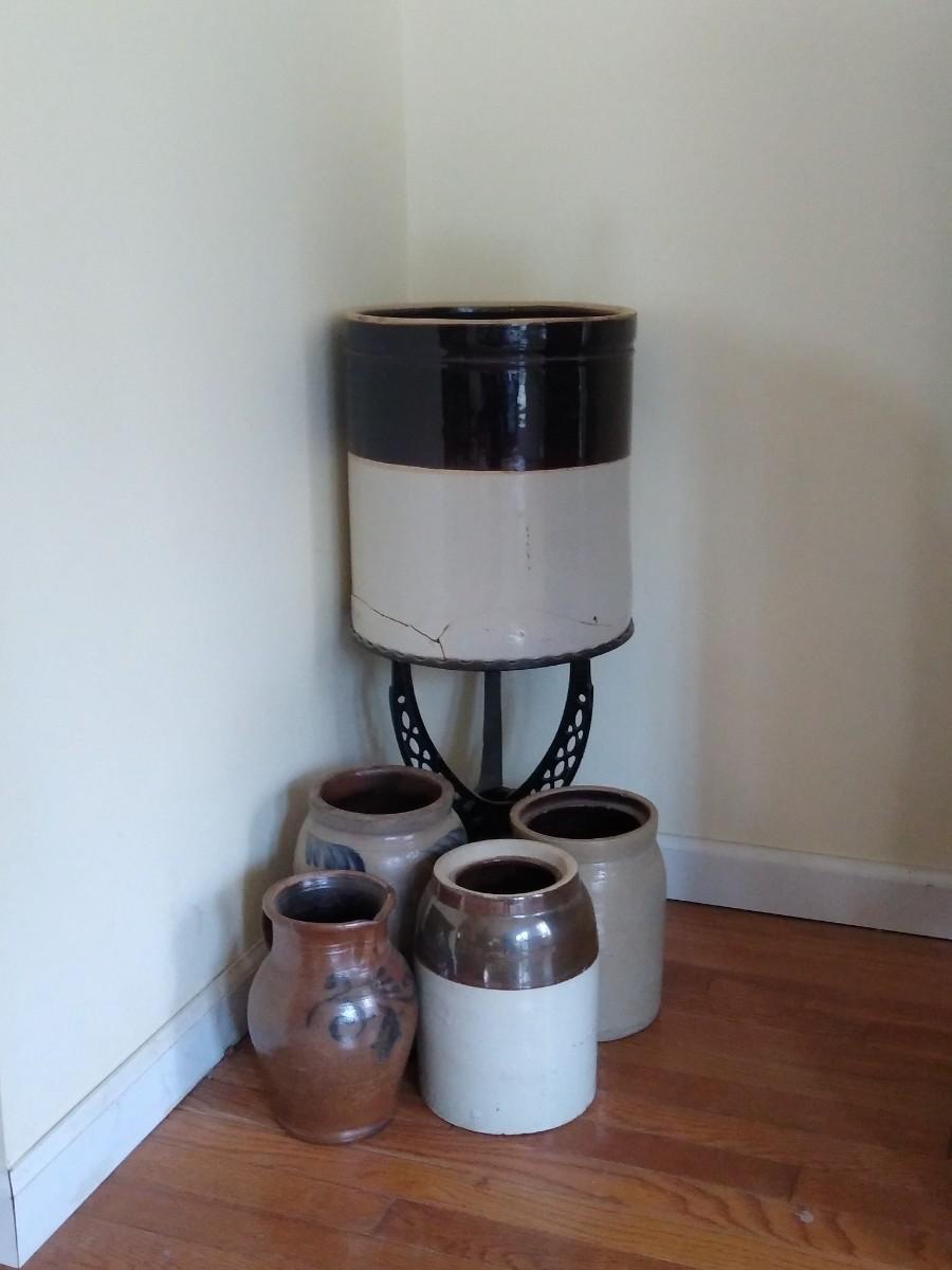 LOT 104L: Vintage Set of 5 Stoneware Crocks with Large Stand