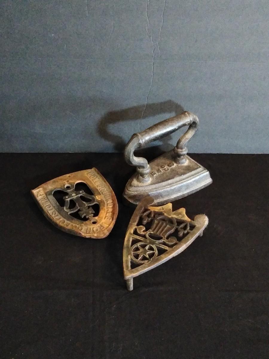 LOT 119L: Antique B & Co. Bless & Drake Sad Iron with Trivets