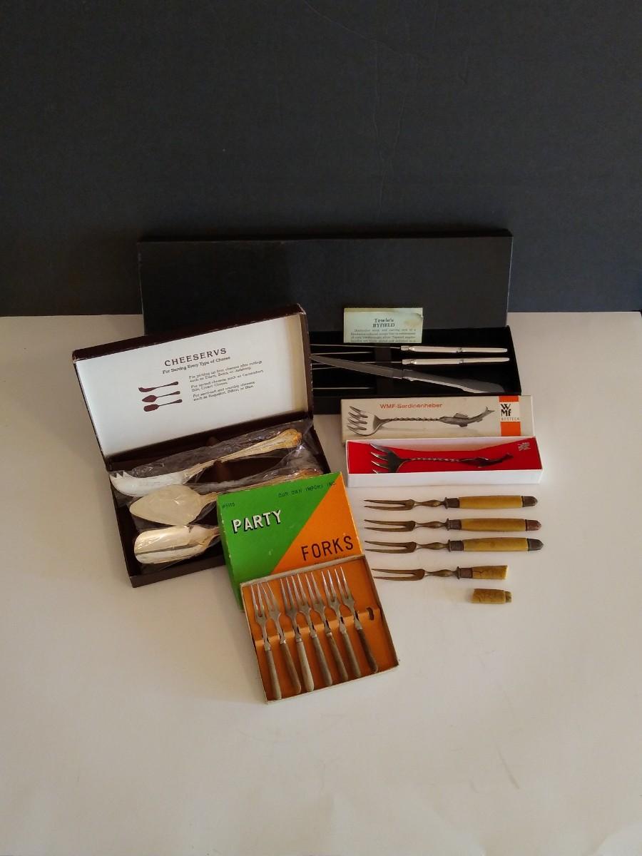 LOT 131D: Vintage Kitchenware Utensil Set- Towles Byfield Cutlery, Plated Sardine Server & More