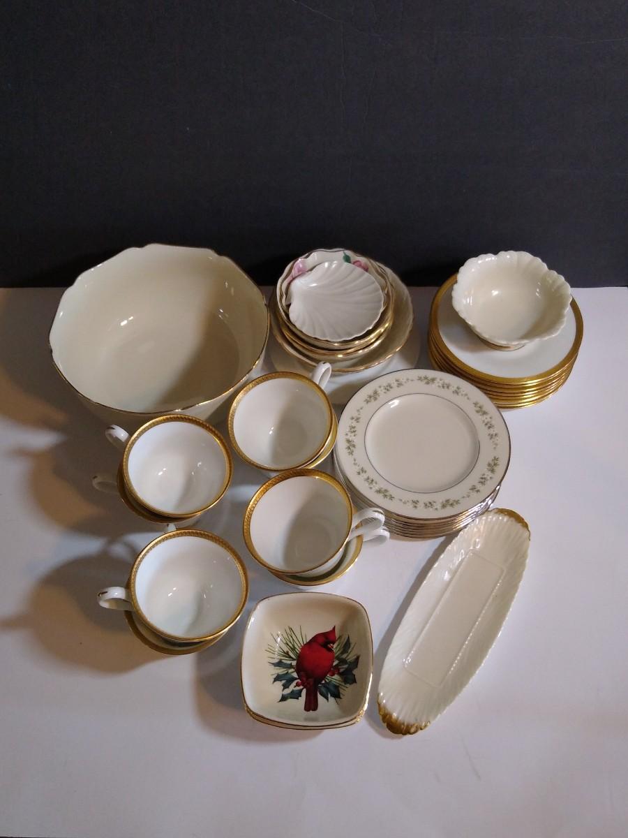 LOT 142D: Lenox Collection- Oxford Bennington Teacups & Saucers, Brookdale Platinum Trim Saucers & More