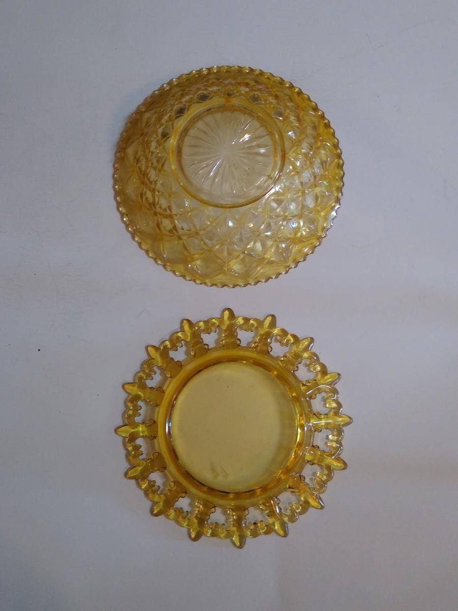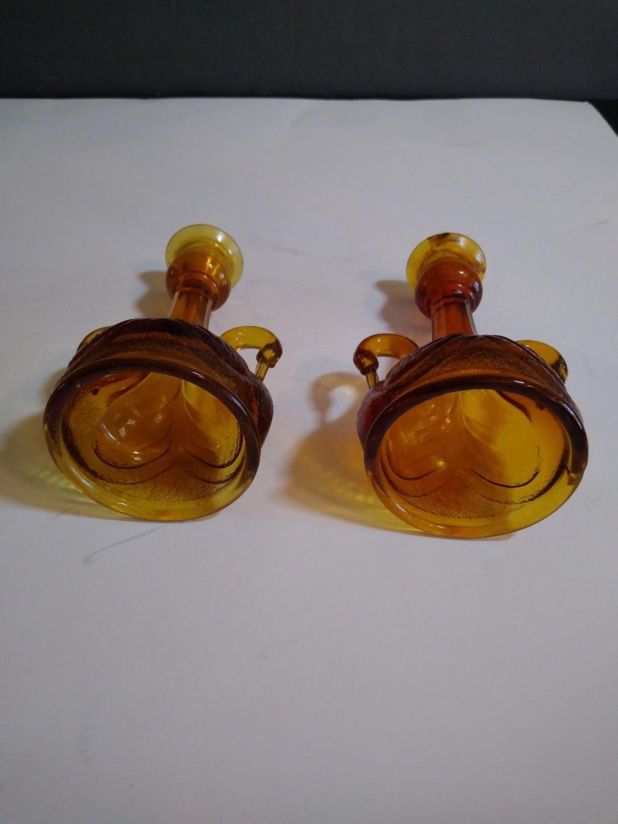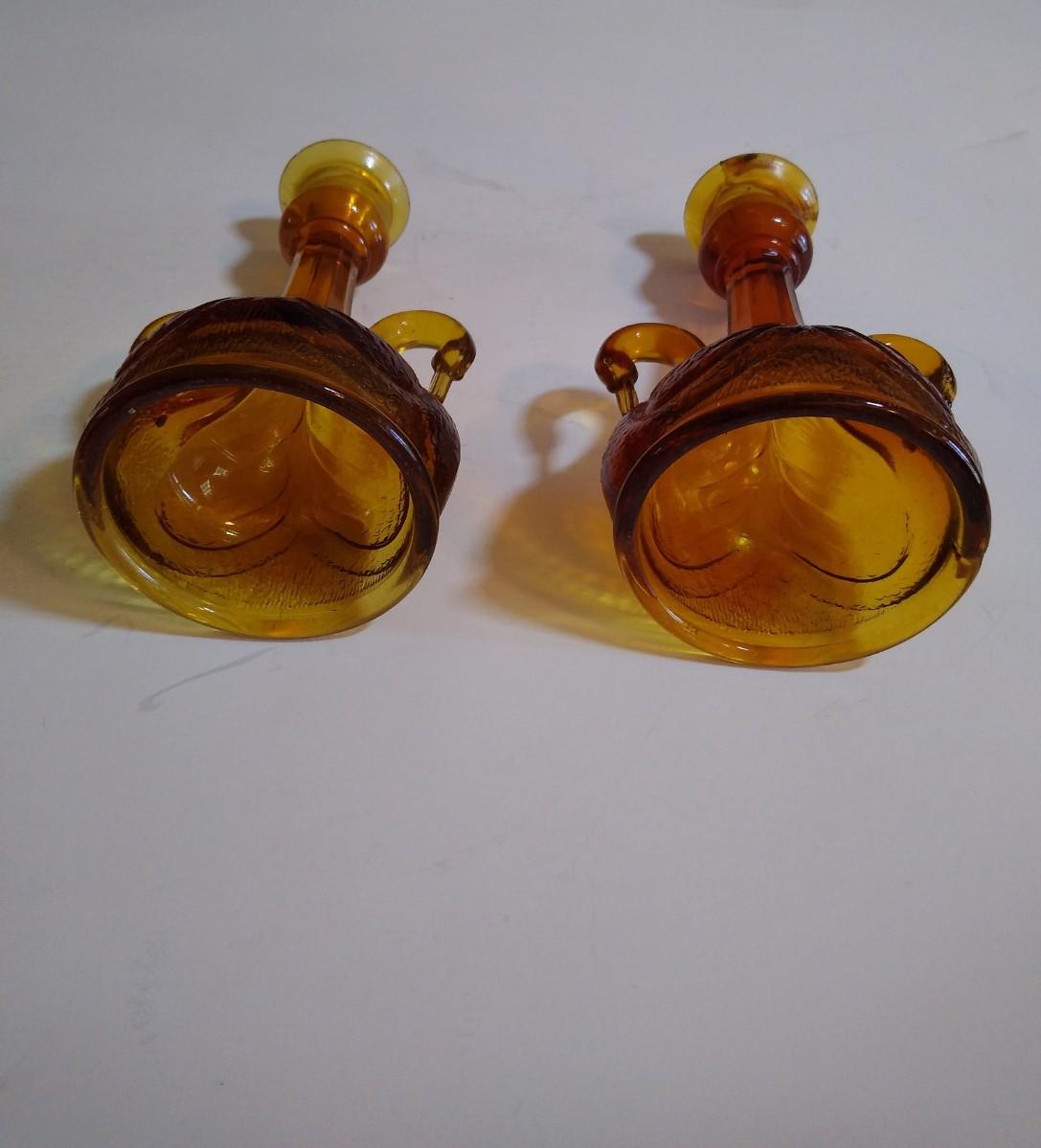 LOT 143D: Amber Glass Collection- Fenton Double-Handled Swan Bowl & Candlestick Holders, Powder Bowls & More
