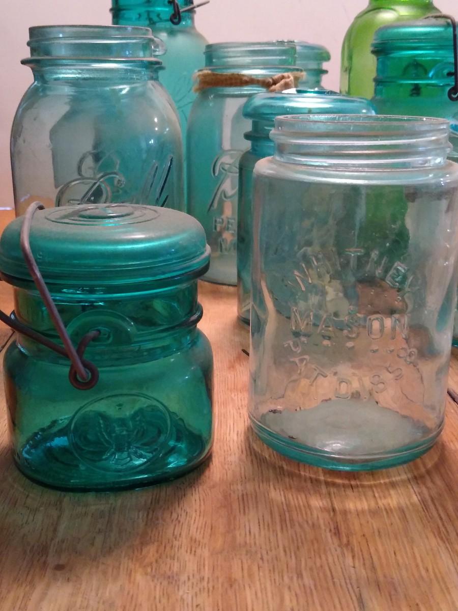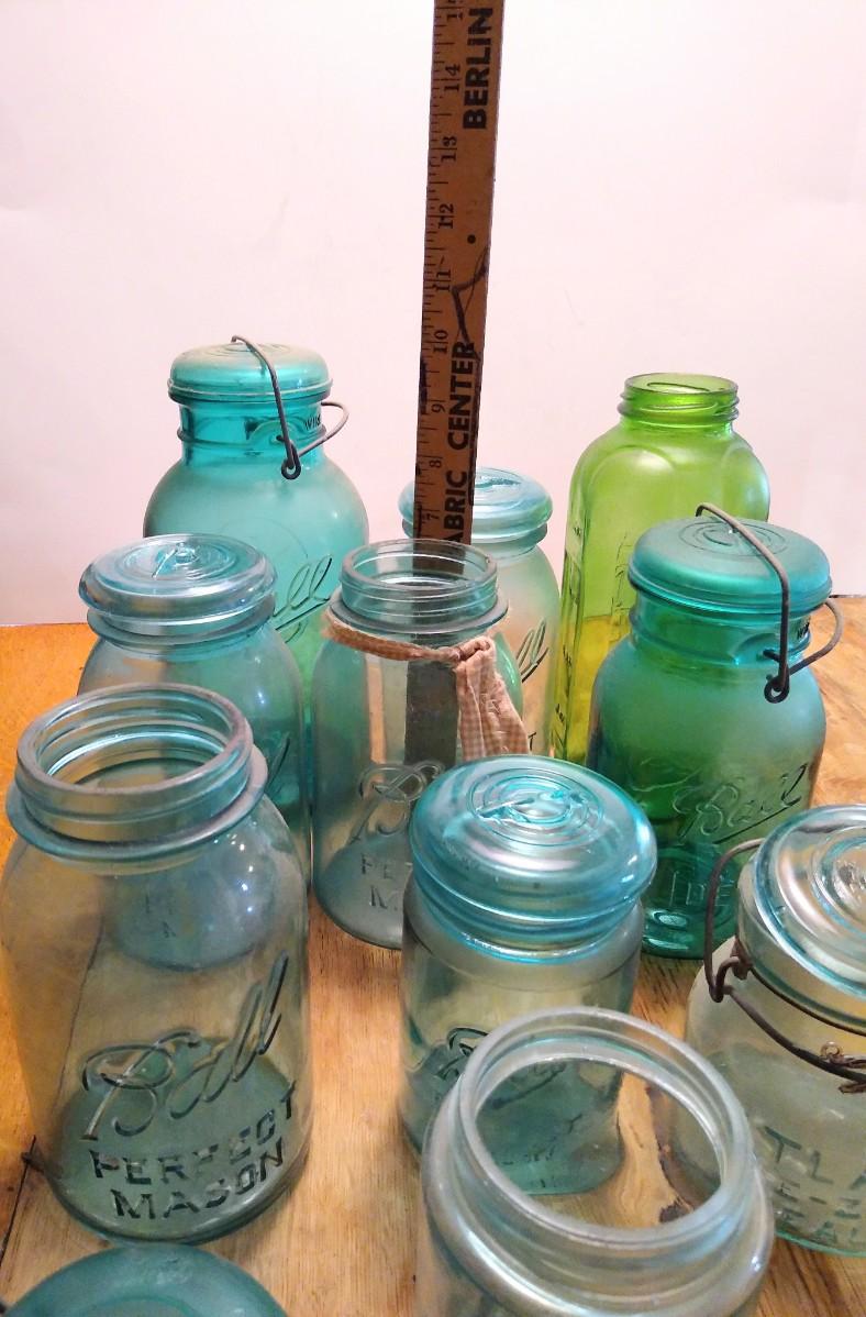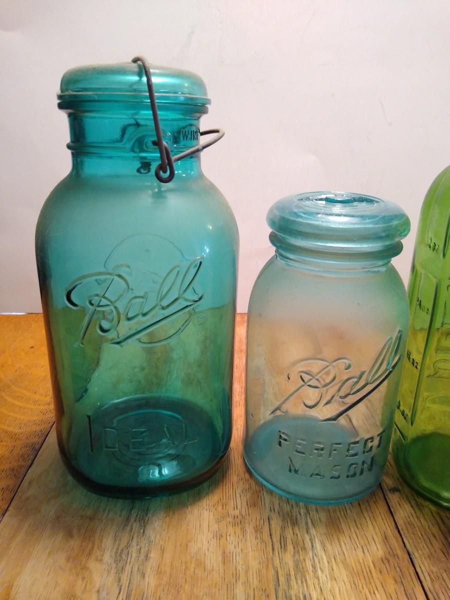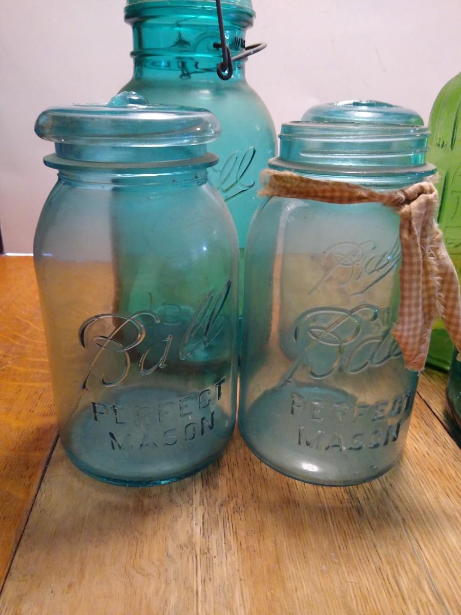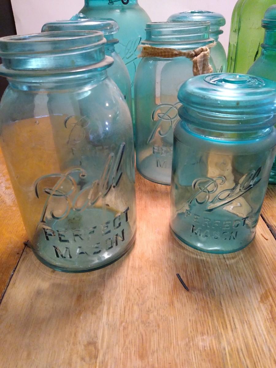 LOT 144D: Vintage Aqua Blue Ball Mason Jars & More
