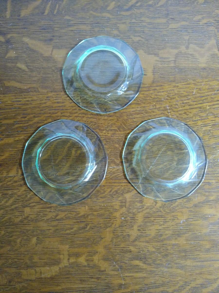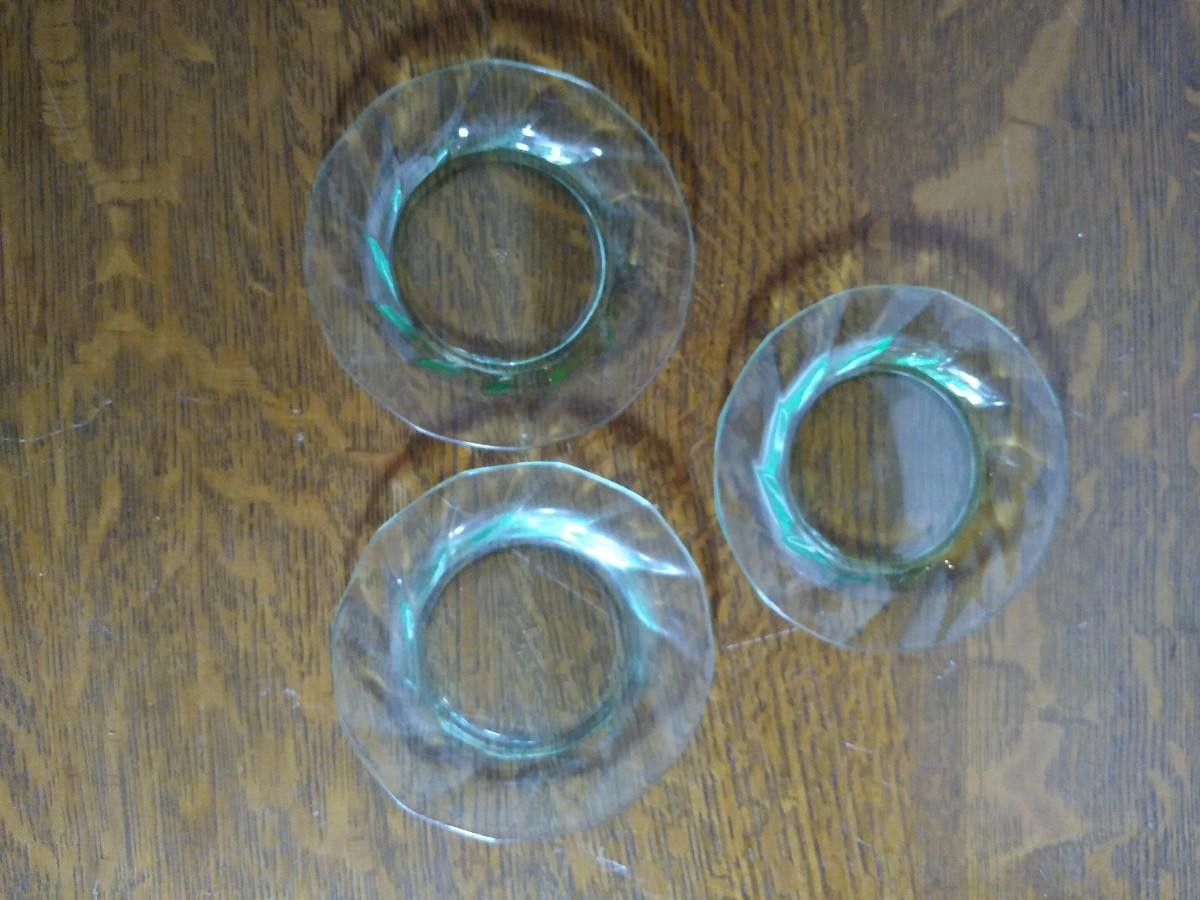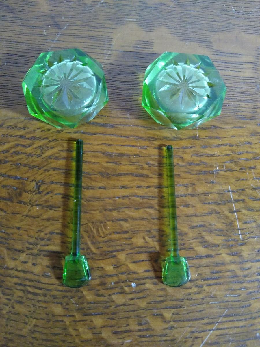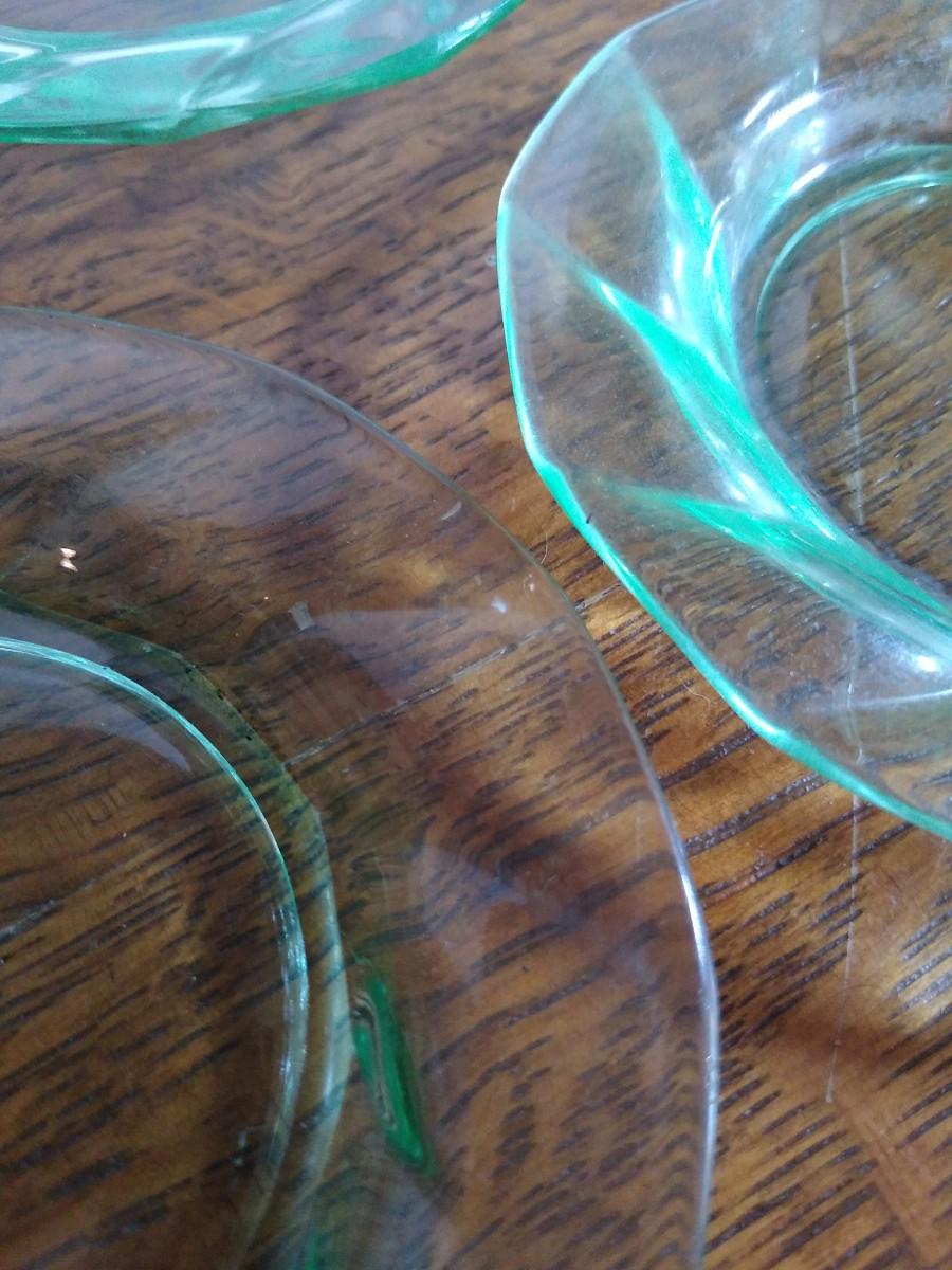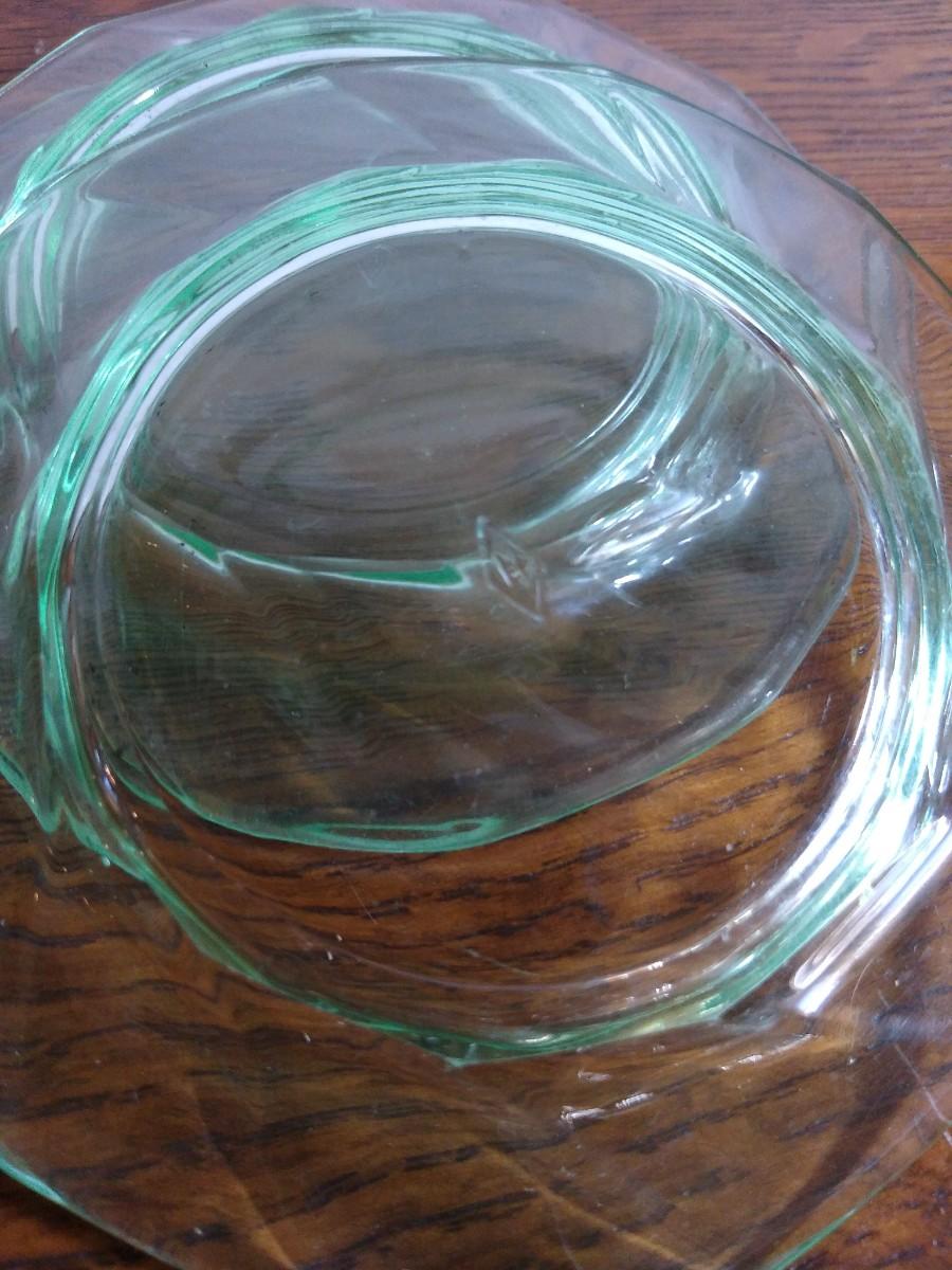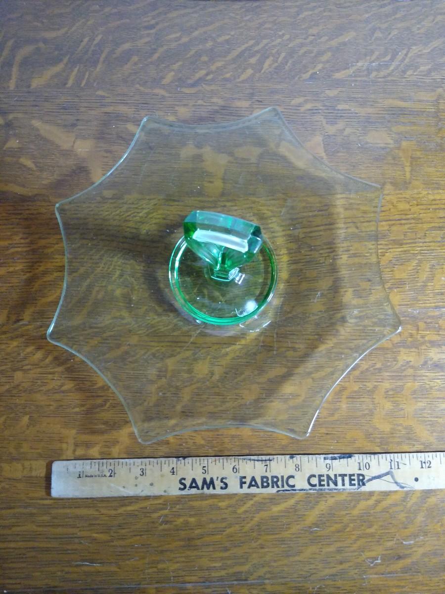 LOT 145D: Green Glass Collection: Depression Glass Serving Platters, Cut Glass Salt Cellars with Measuring Spoons & More