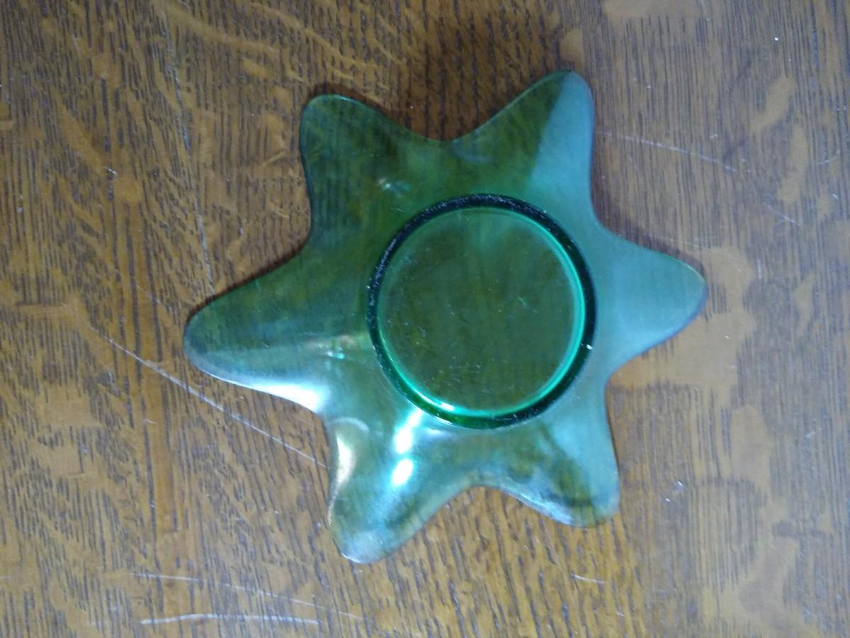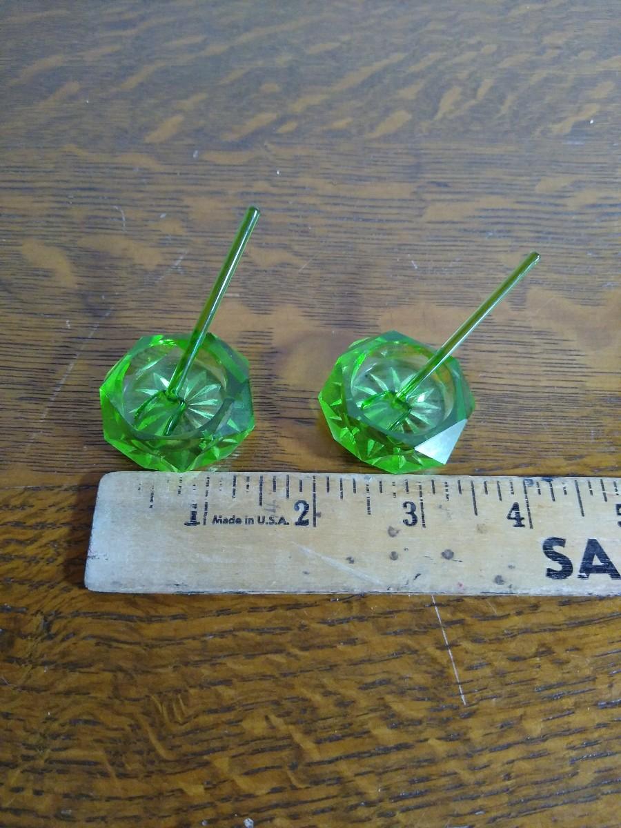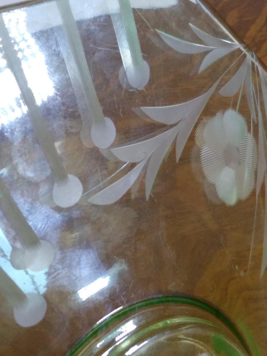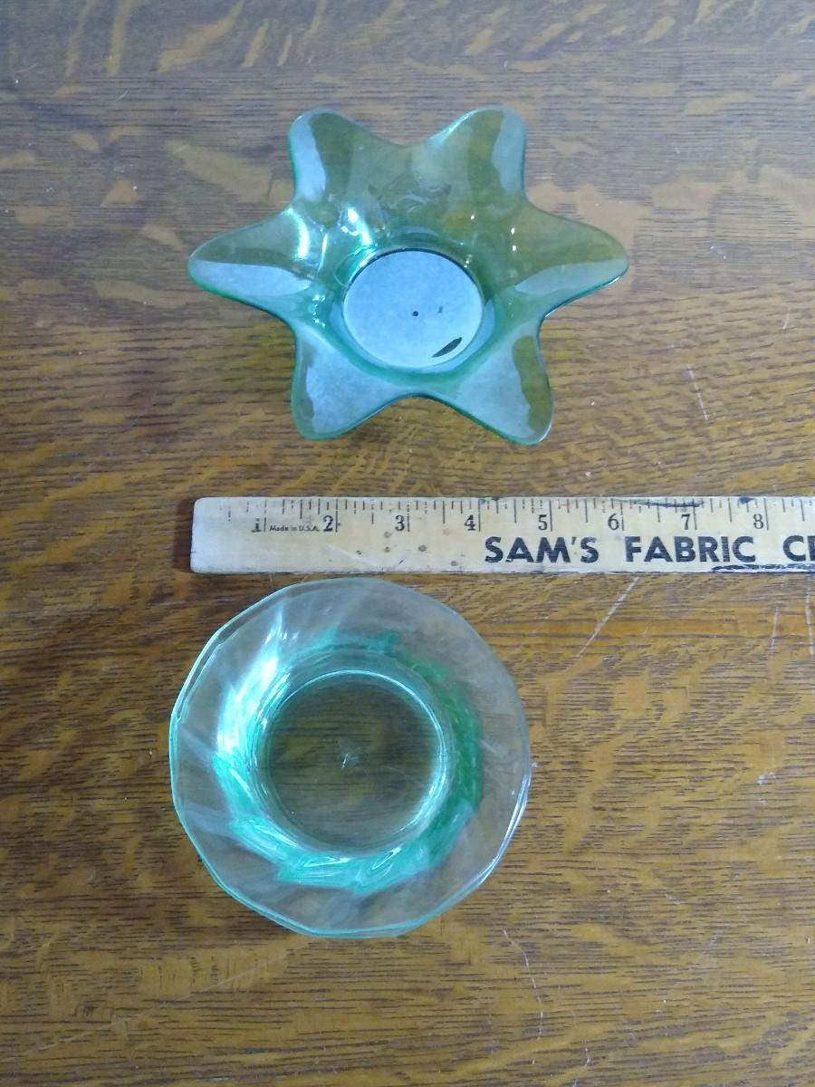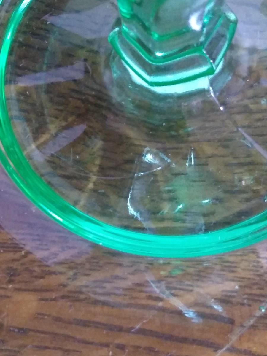 LOT 145D: Green Glass Collection: Depression Glass Serving Platters, Cut Glass Salt Cellars with Measuring Spoons & More