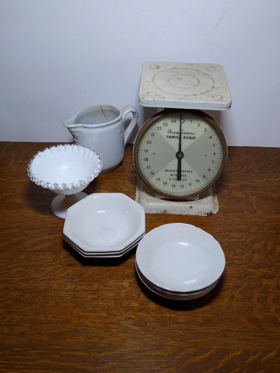 LOT 150D: Vintage American Family Scale, Fenton Milk Glass Sherbert Dish & More