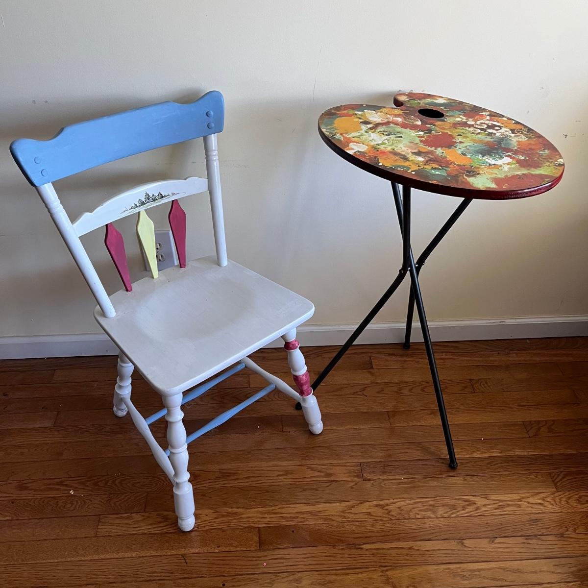 LOT 165U: Hand-Painted Chair and Painter’s Palette Table