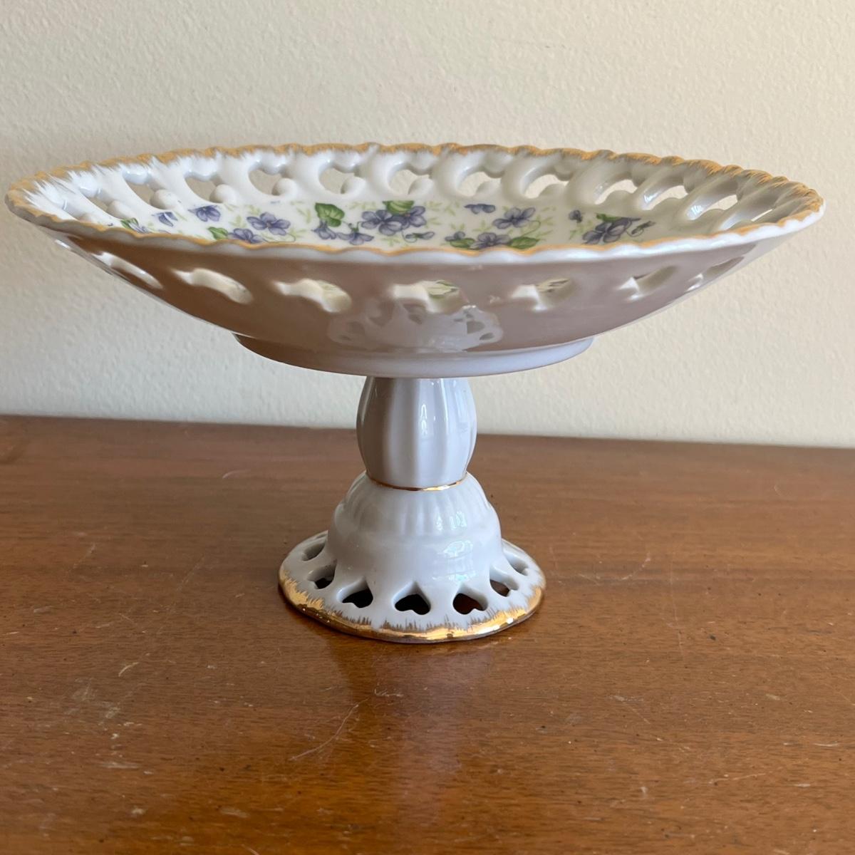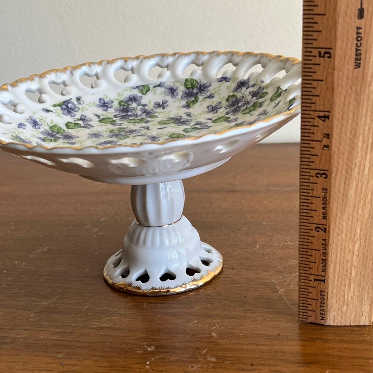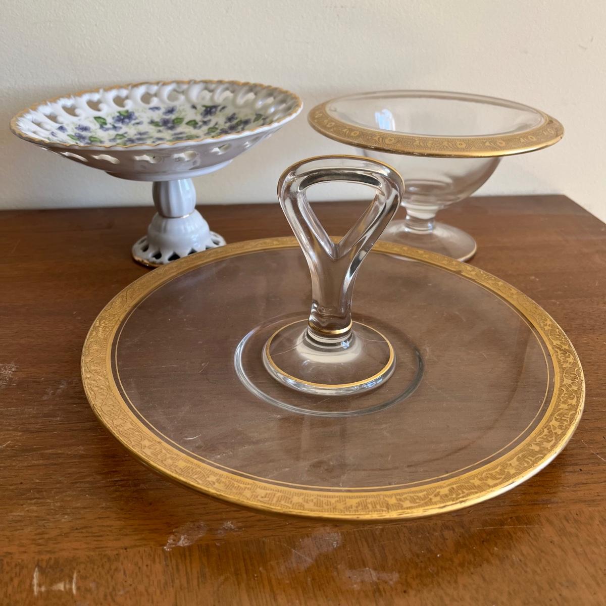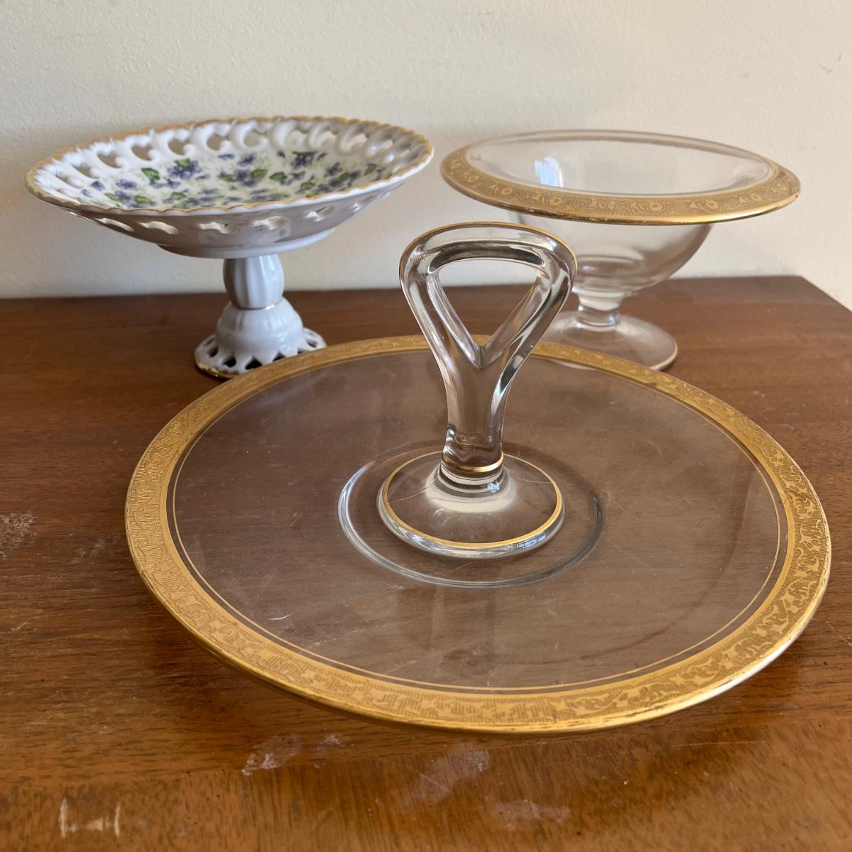 LOT 174U: Vintage Lefton Violet Compote Dish and Gold Trimmed Glass Serving Pieces