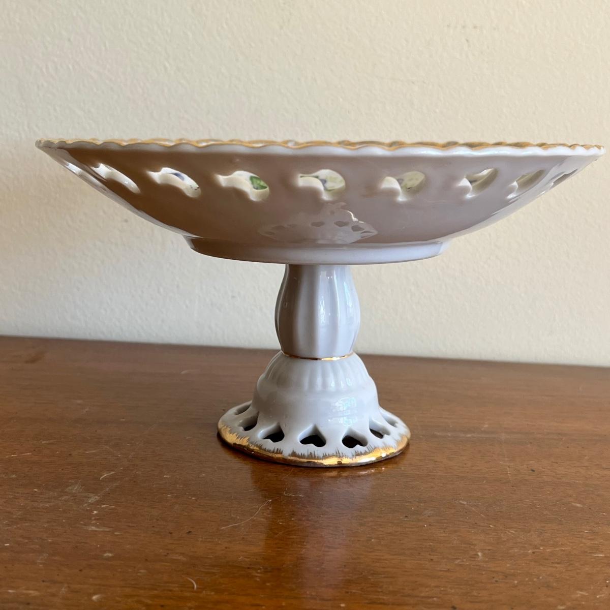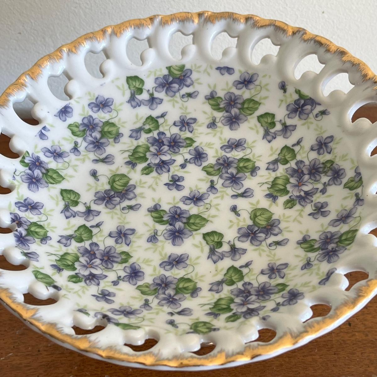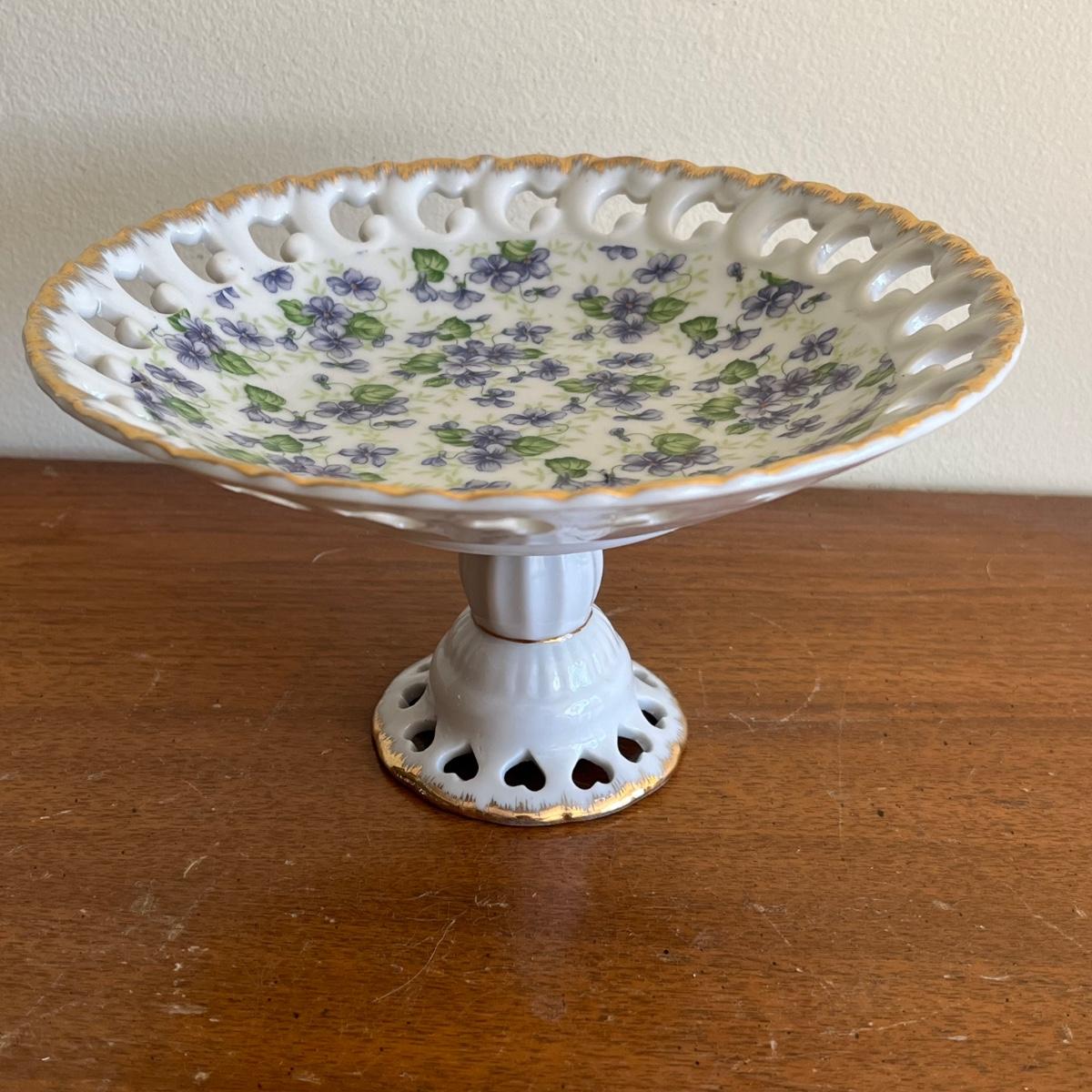 LOT 174U: Vintage Lefton Violet Compote Dish and Gold Trimmed Glass Serving Pieces