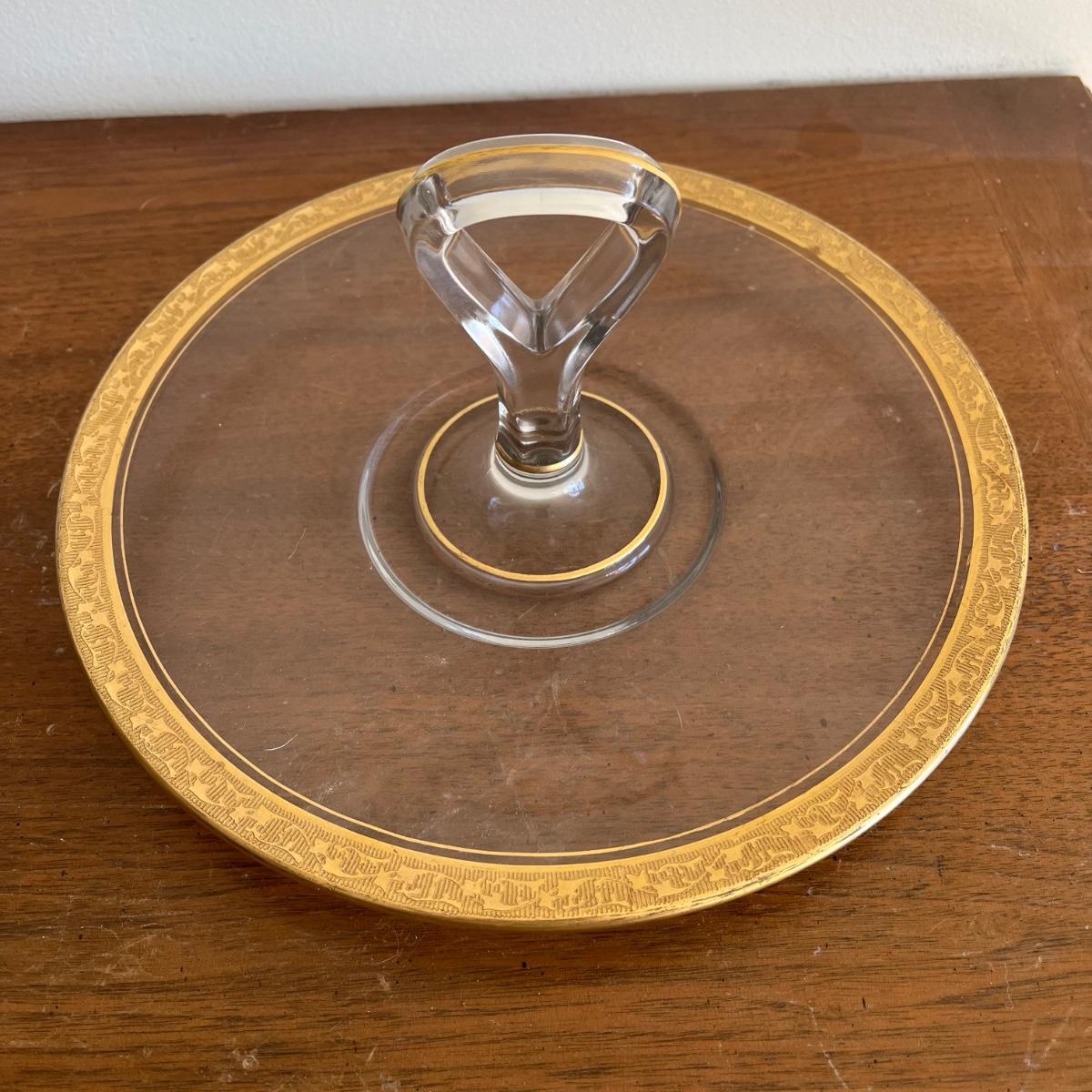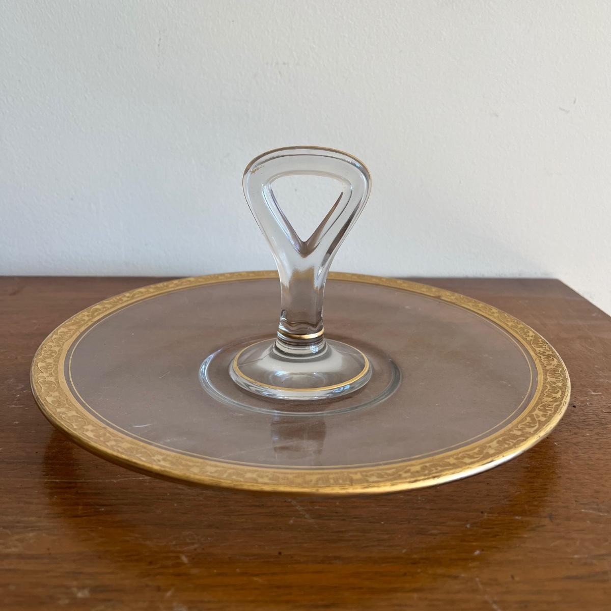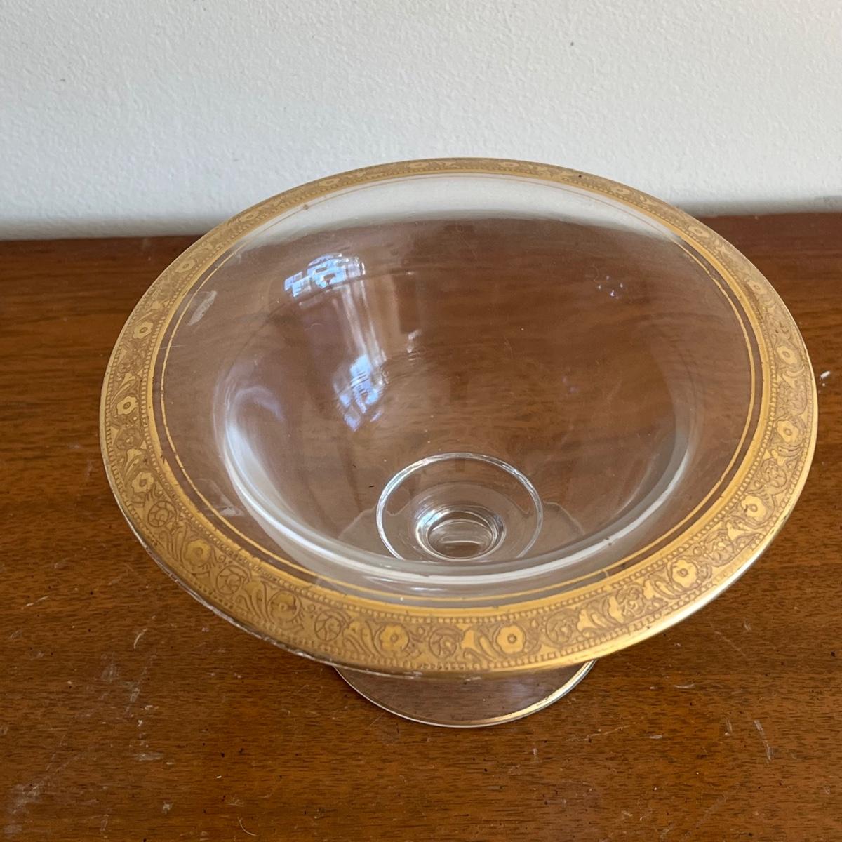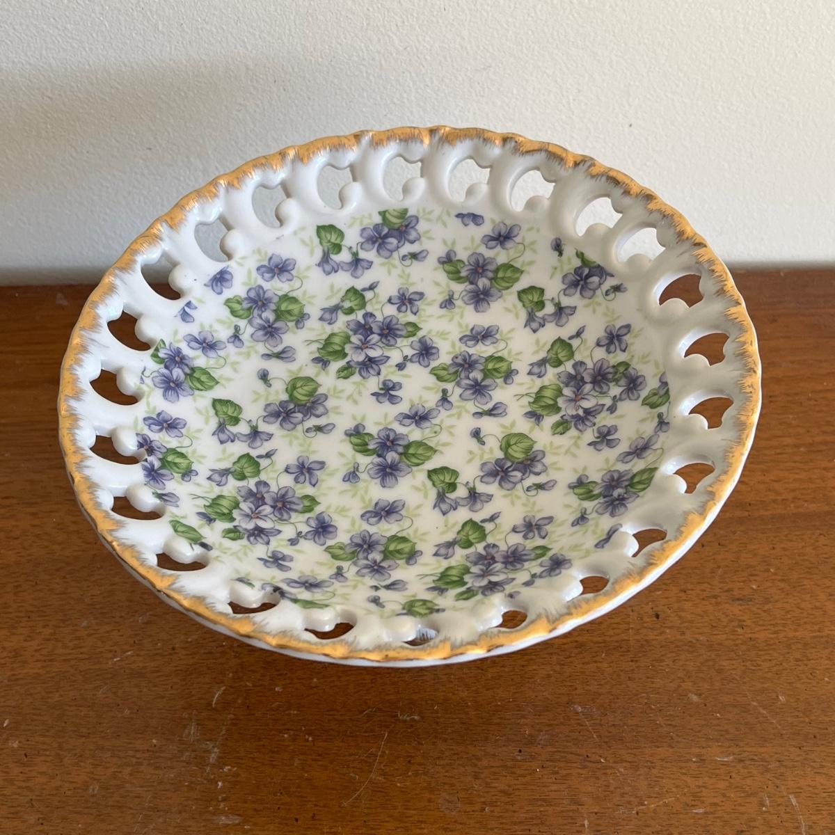 LOT 174U: Vintage Lefton Violet Compote Dish and Gold Trimmed Glass Serving Pieces