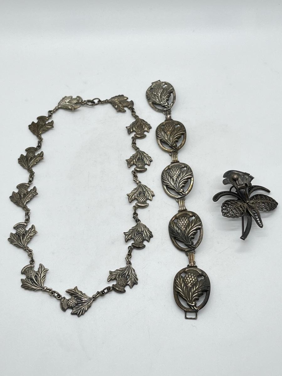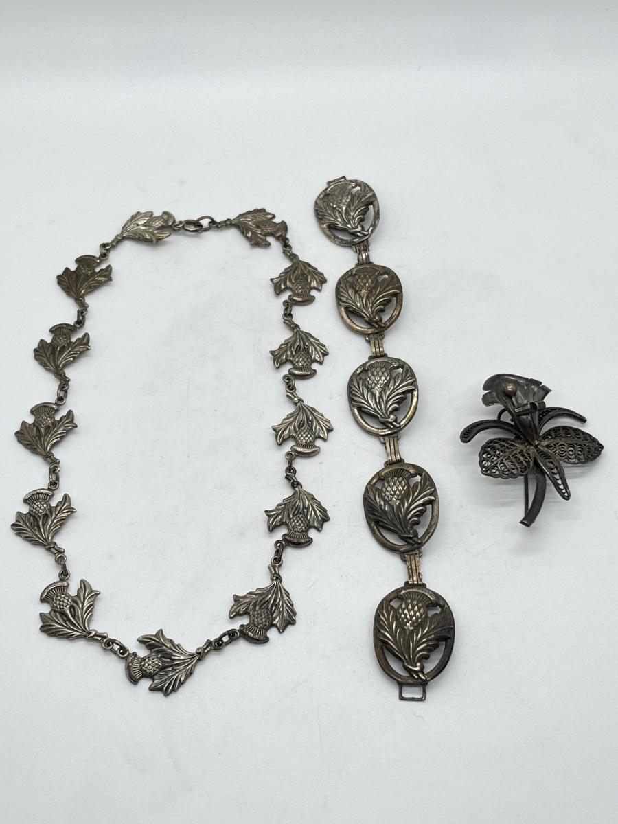 LOT 195: Danecraft Sterling Choker Necklace and Bracelet and Sterling Brooch - 54.8 grams