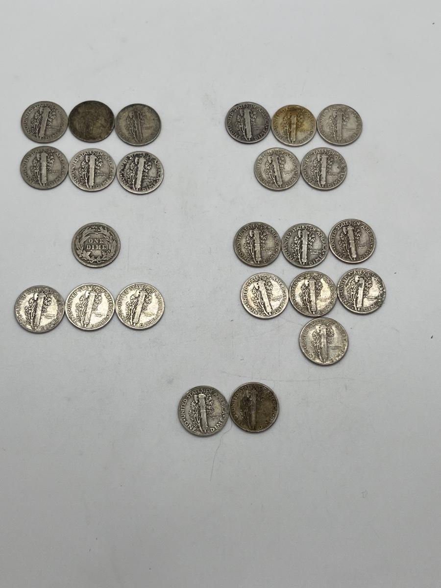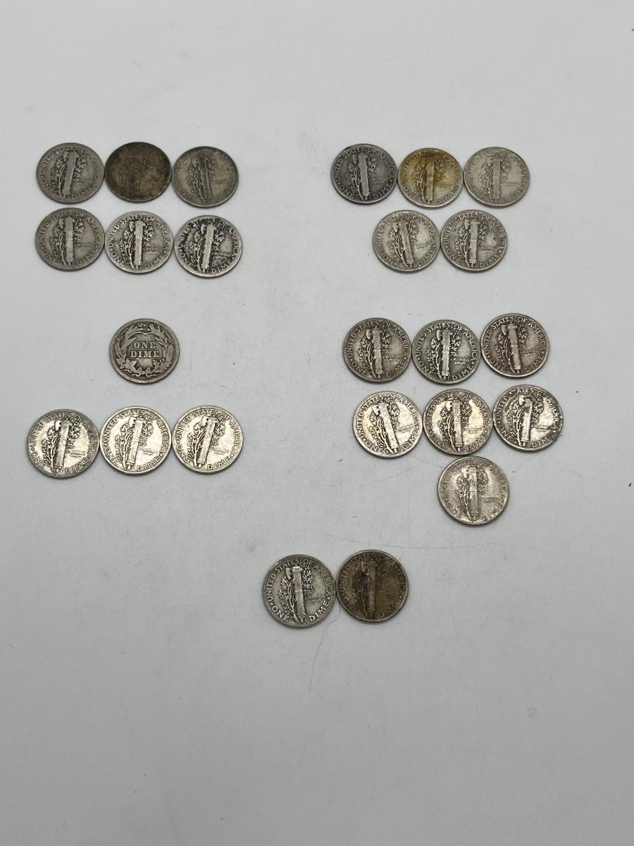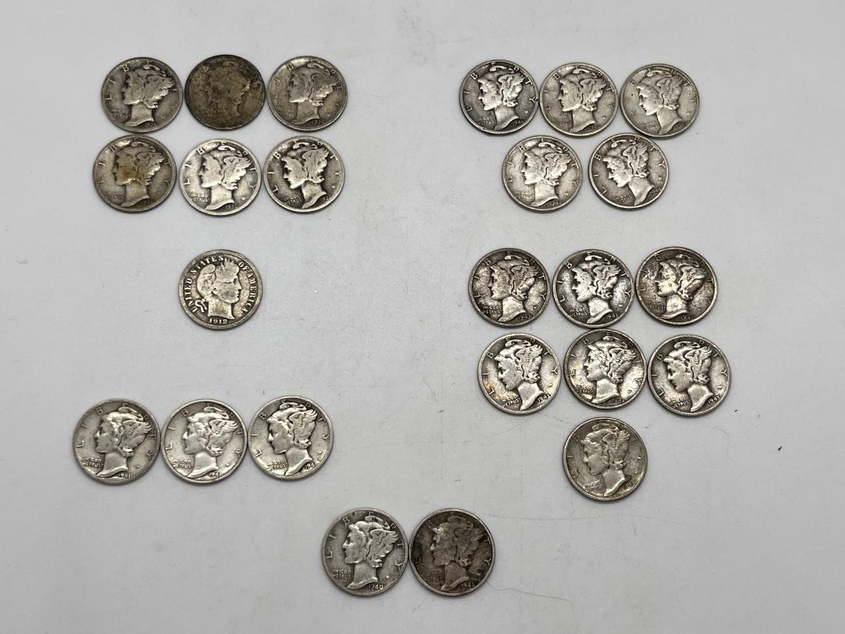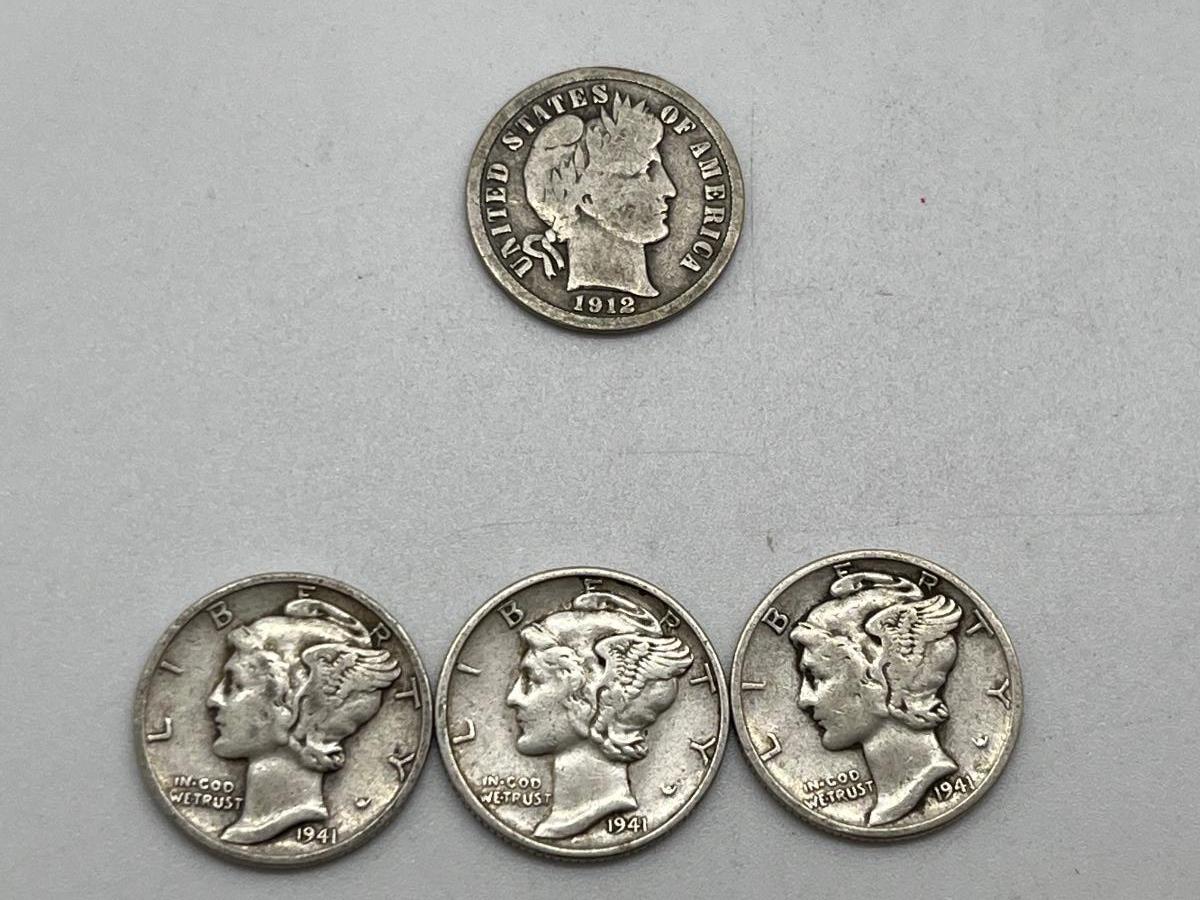 LOT 196: Various Years Silver Mercury Head Dimes + 1912 Barber Dime