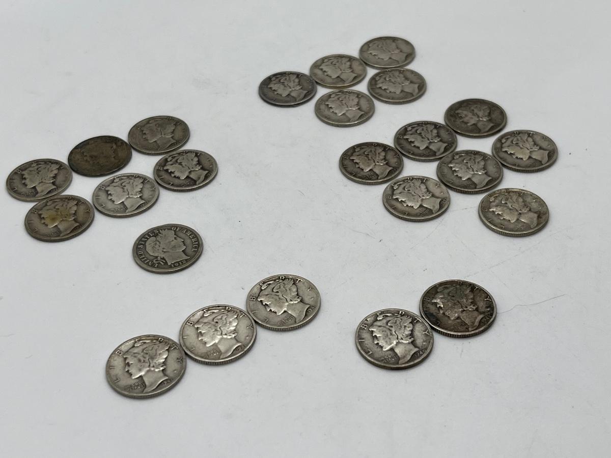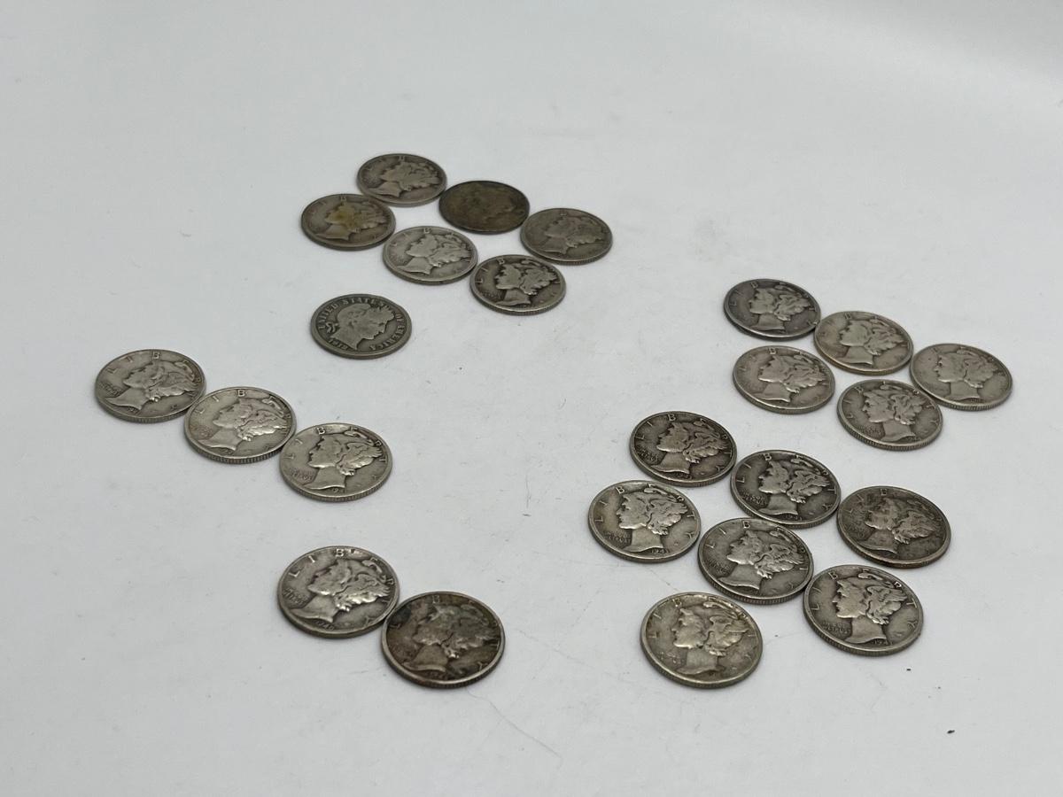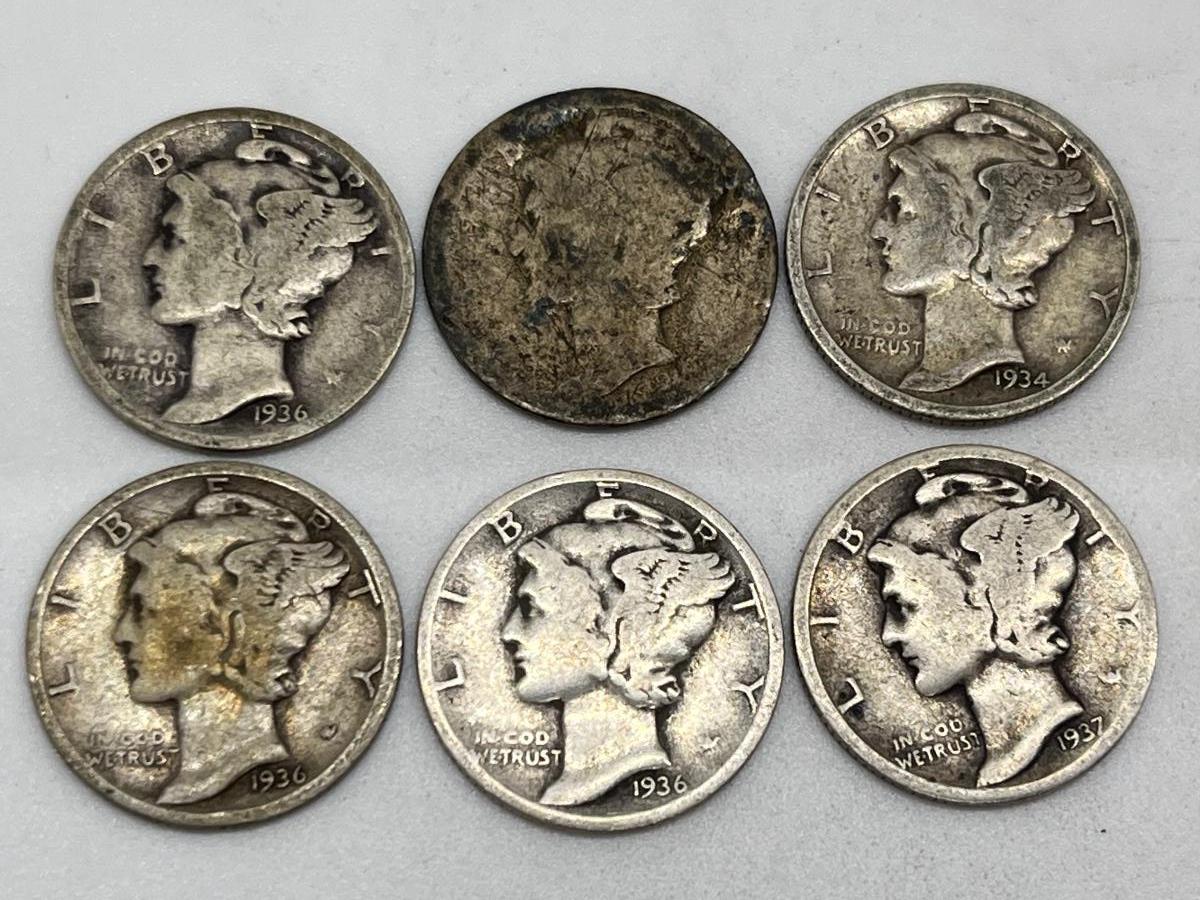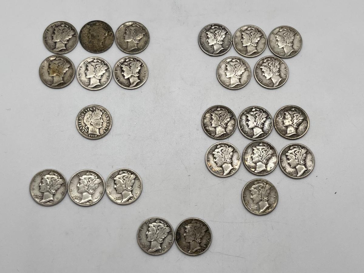 LOT 196: Various Years Silver Mercury Head Dimes + 1912 Barber Dime
