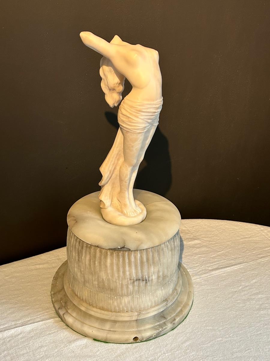Marble women statue is 21” tall. Statue comes apart into three pieces.
