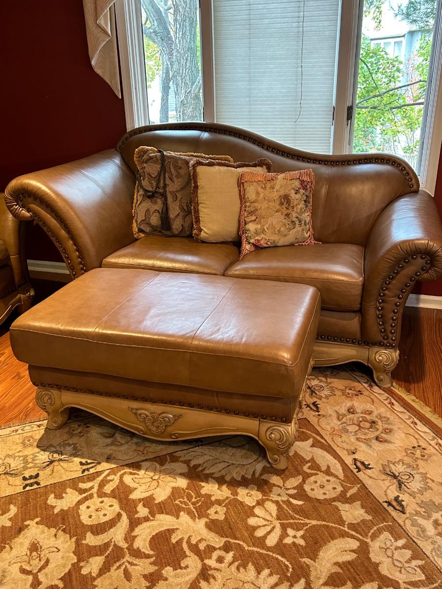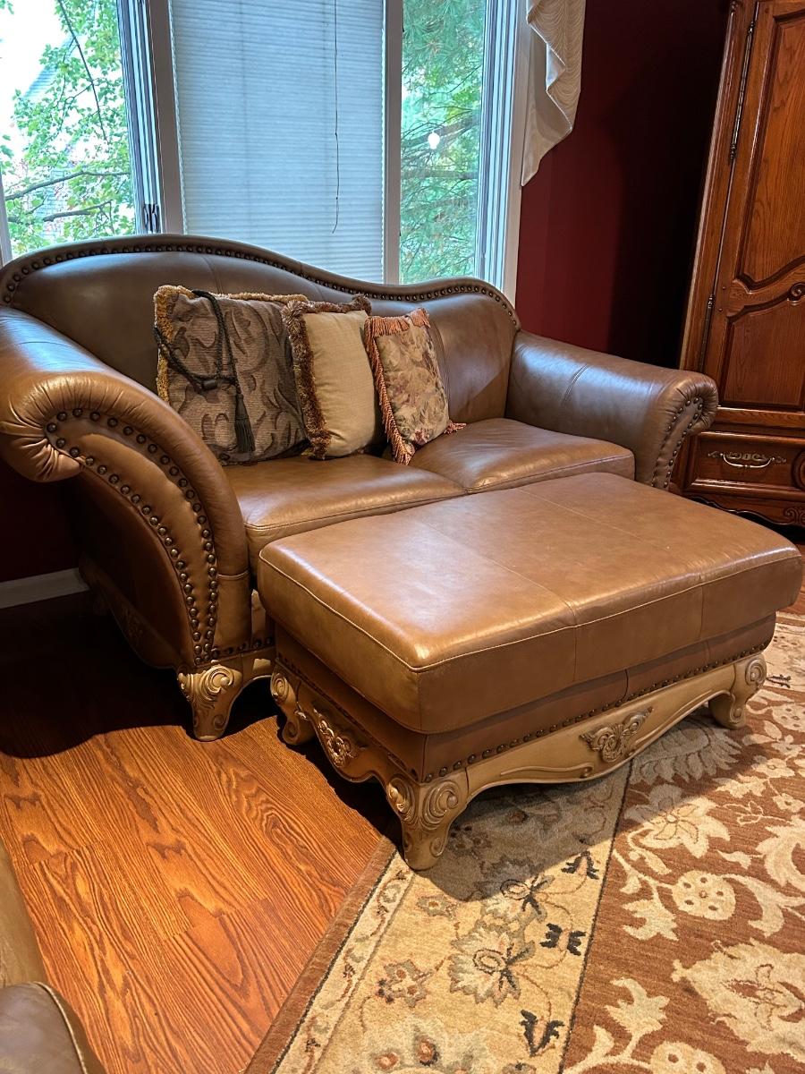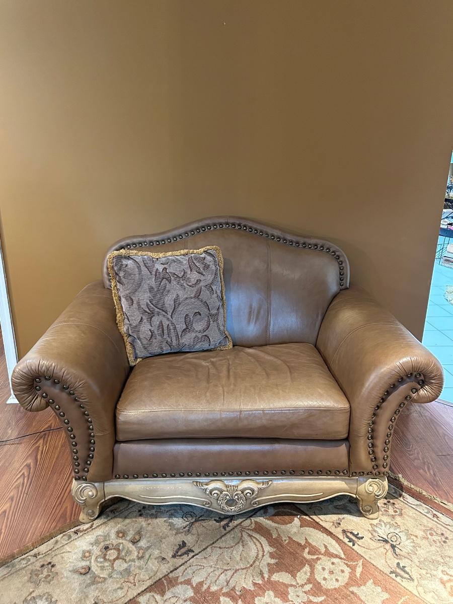 Large Leather sofa, loveseat, oversized chair and ottoman.