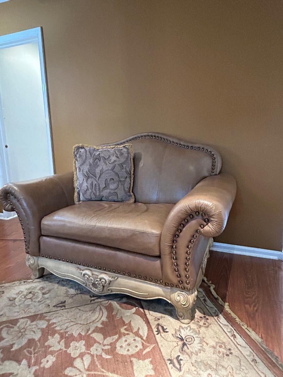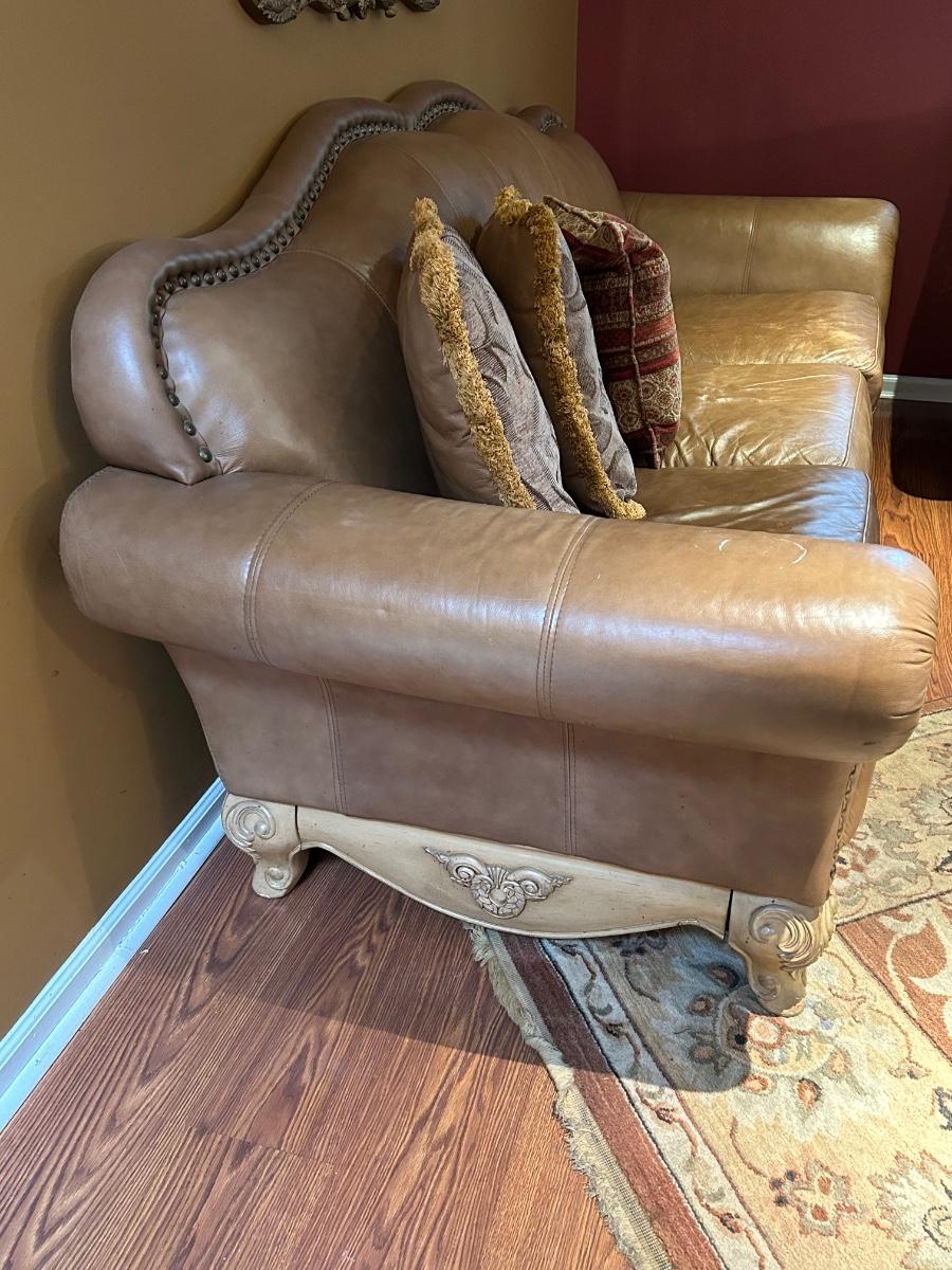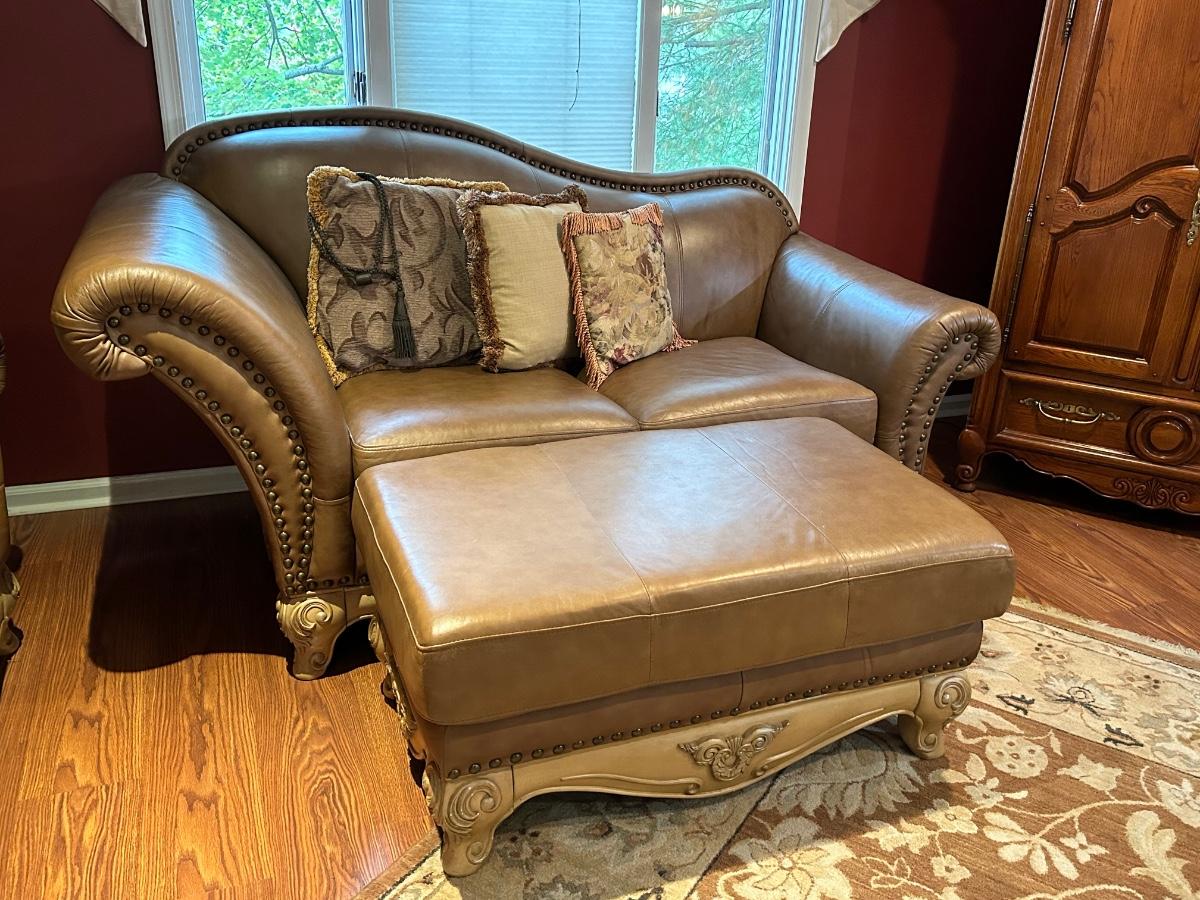 Large Leather sofa, loveseat, oversized chair and ottoman.