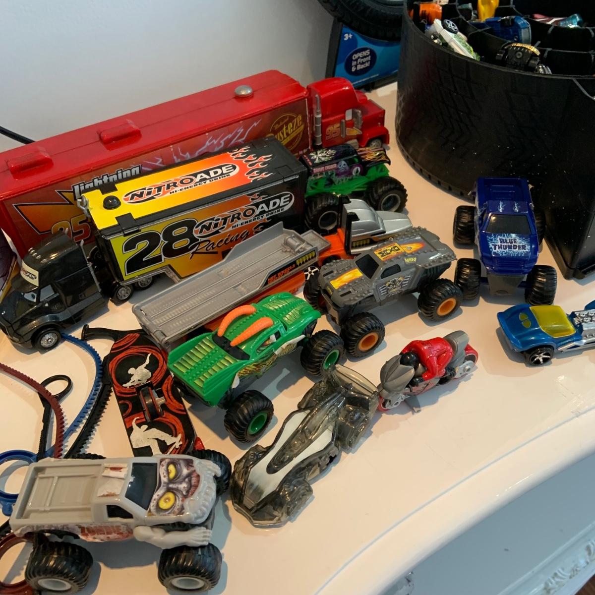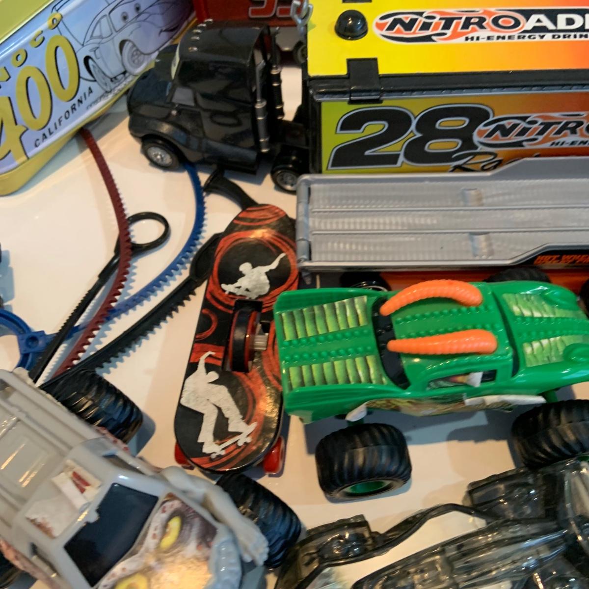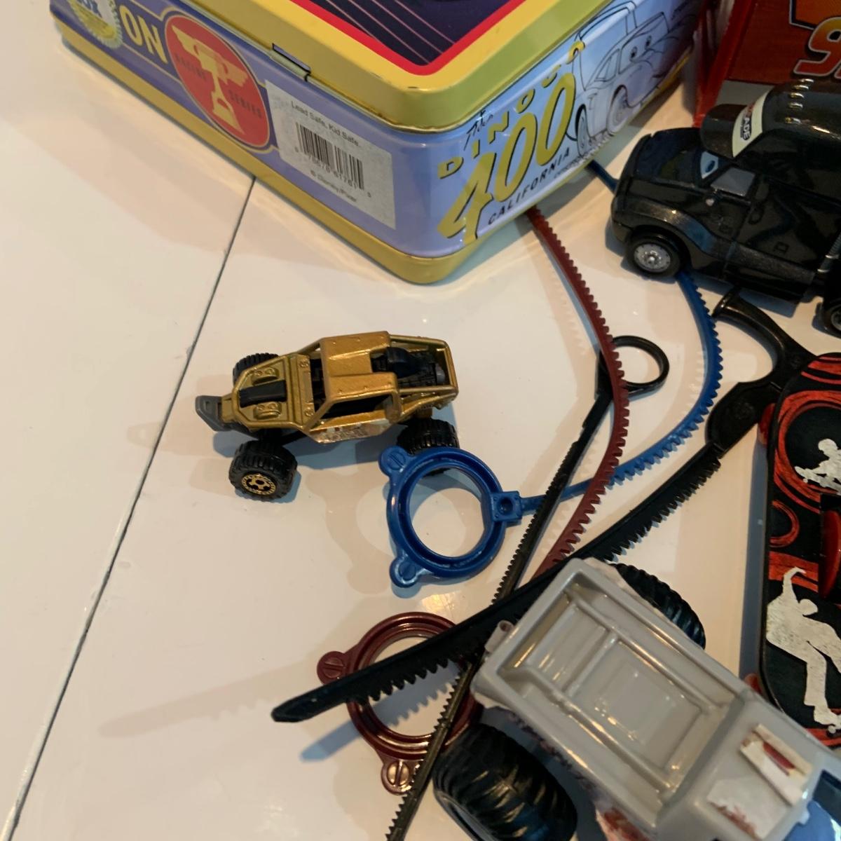 LOT:33G: Large Collection of Diecast Hotwheels and Other Toy Cars. and Carrying Case and Tin