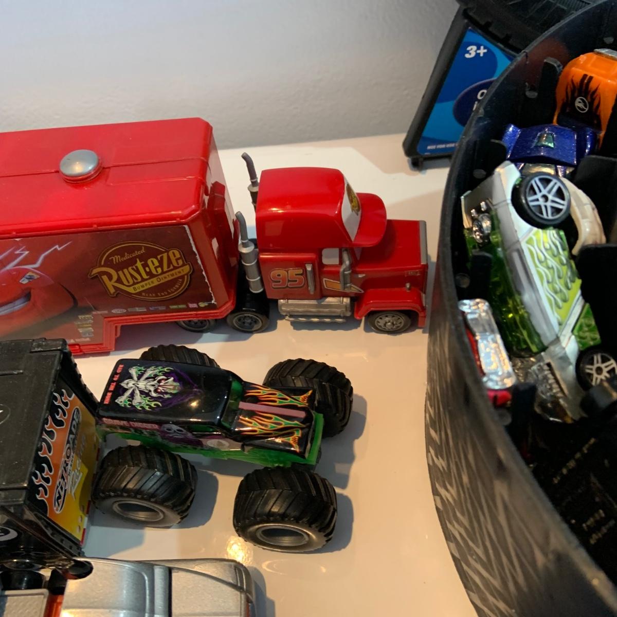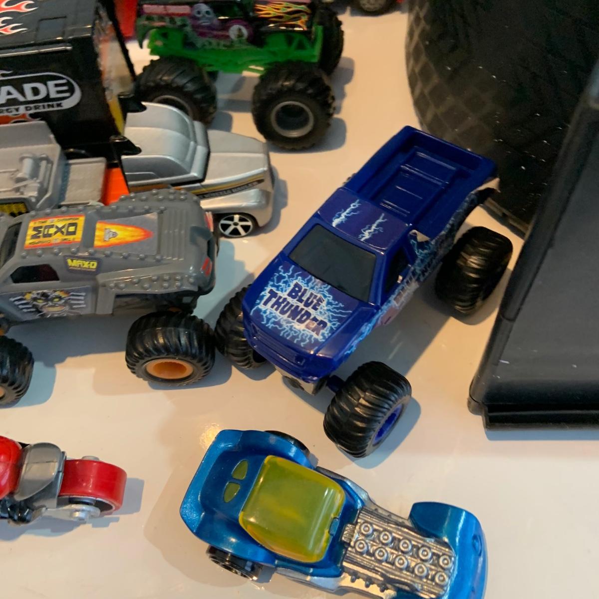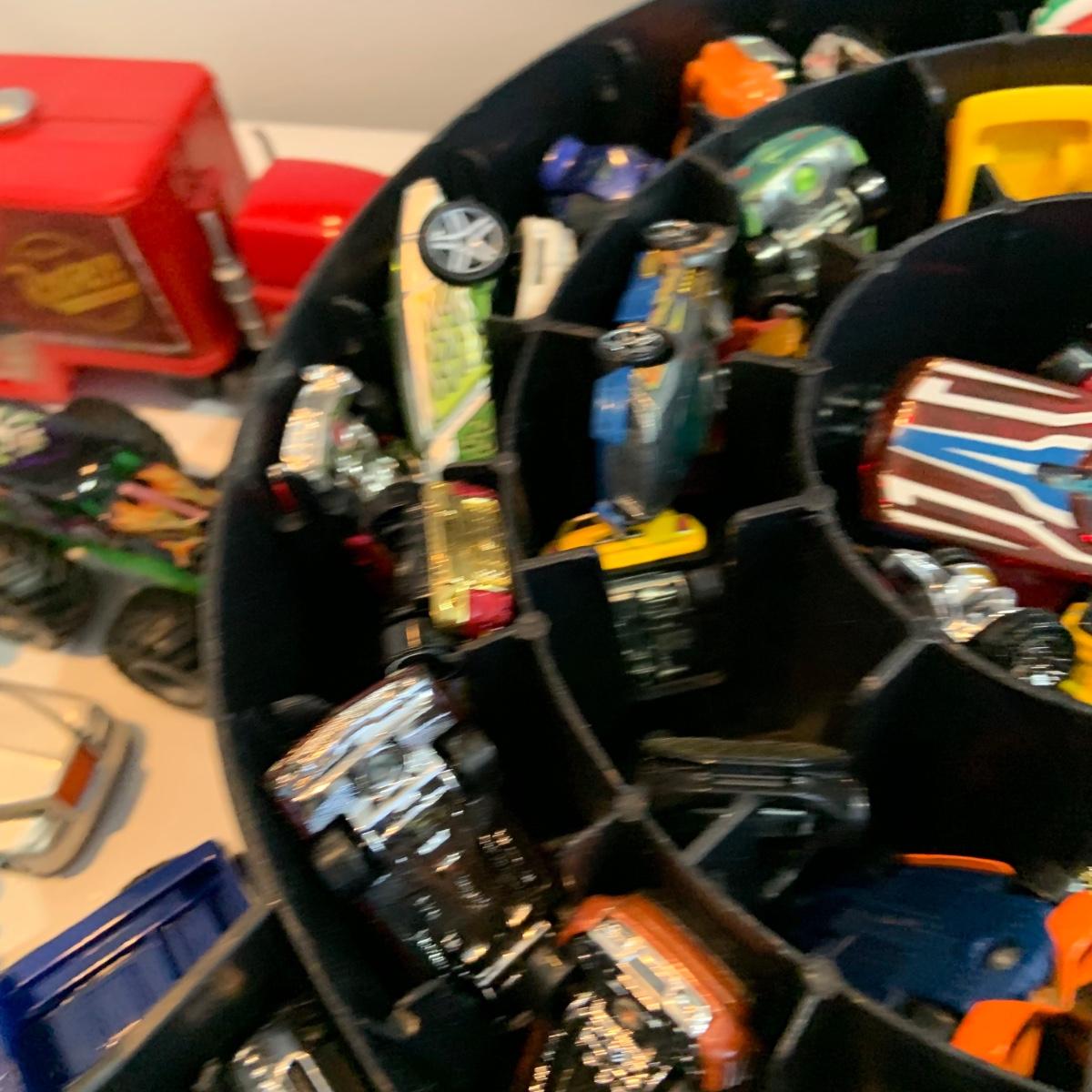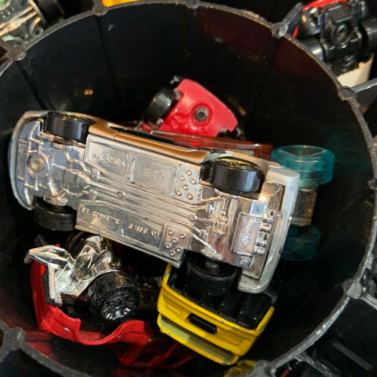 LOT:33G: Large Collection of Diecast Hotwheels and Other Toy Cars. and Carrying Case and Tin