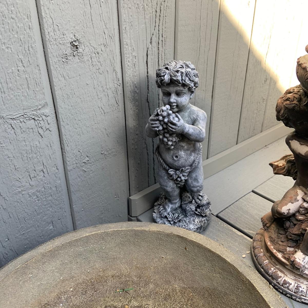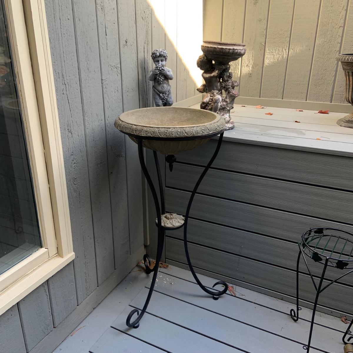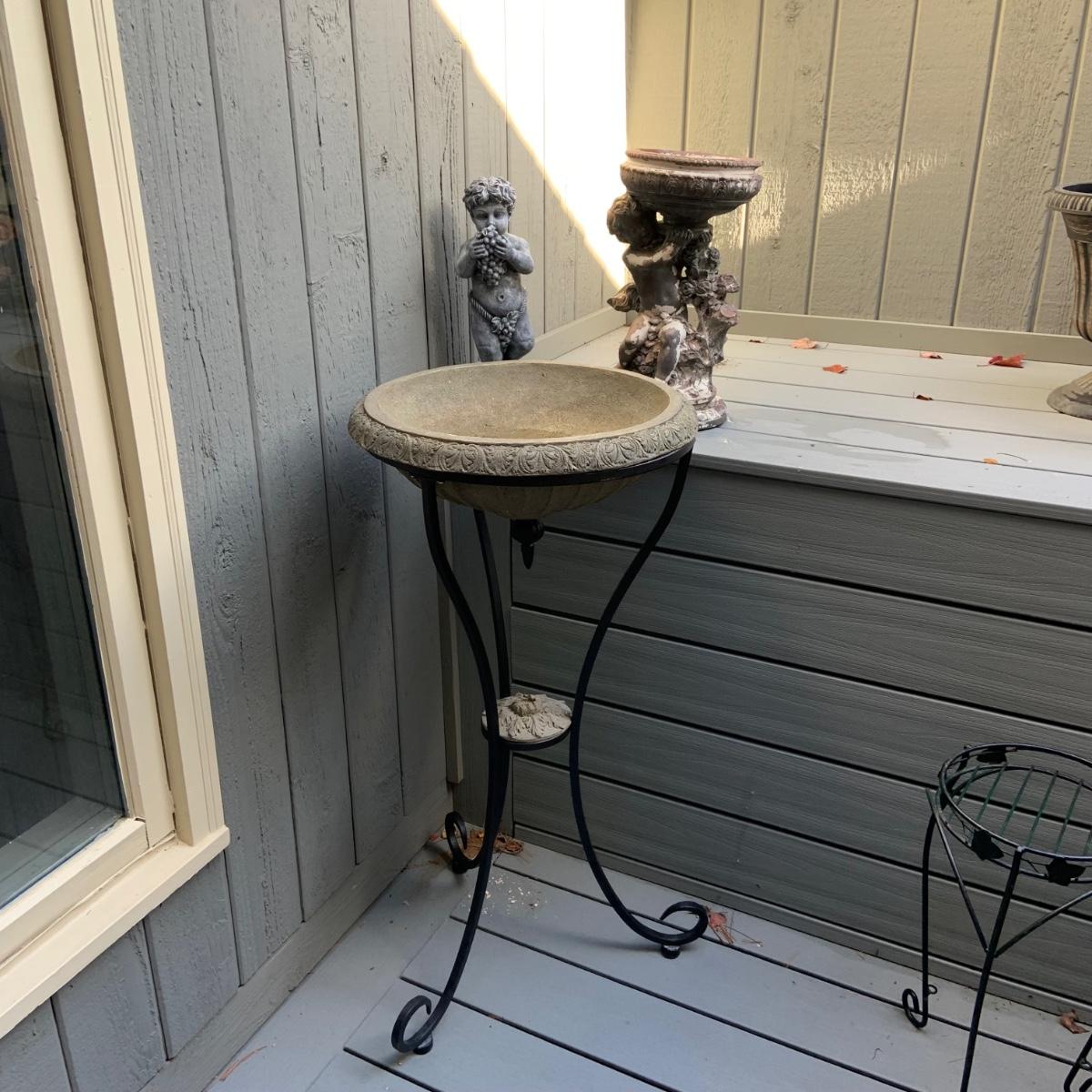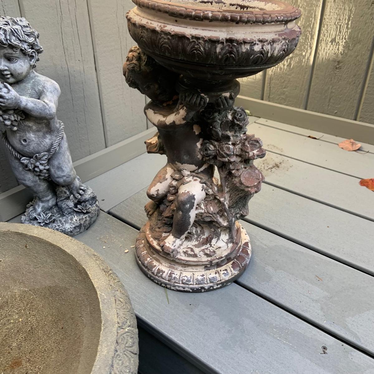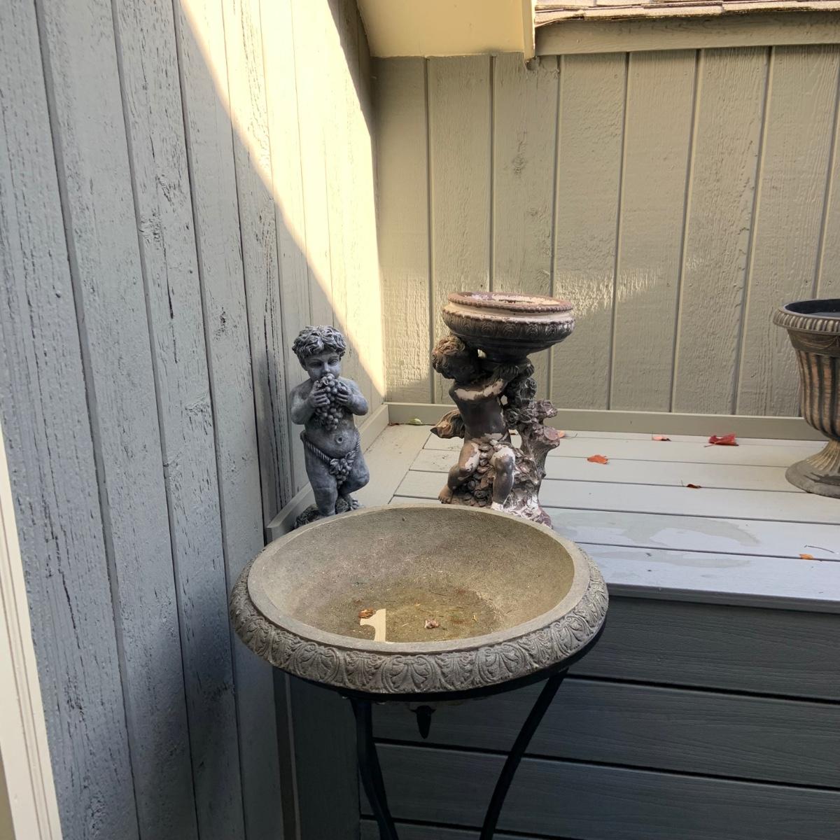 The birdbath is 17 x 35" and the cherub bird bath is 17 x 35" Please see all pictures as they are the best representation of the items. The pictures show condition, measurements if taken, and what is included in the lot. Due to the large amount that we photograph and the time frame, we are not always able to take measurements. All items unless noted, are pre-owned and have been used. If you purchased furniture, you must bring help. We do not allow one person to carry large furniture out on their own. Bring help, tools and a truck for the safety of our client’s homes, and your personal safety. Any damages that result to the property including walls, and floors due to moving of the furniture will be charged to the buyer. Company policy. Thank you.
