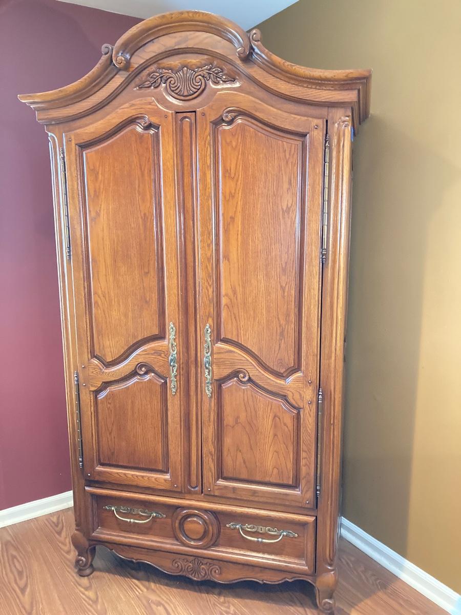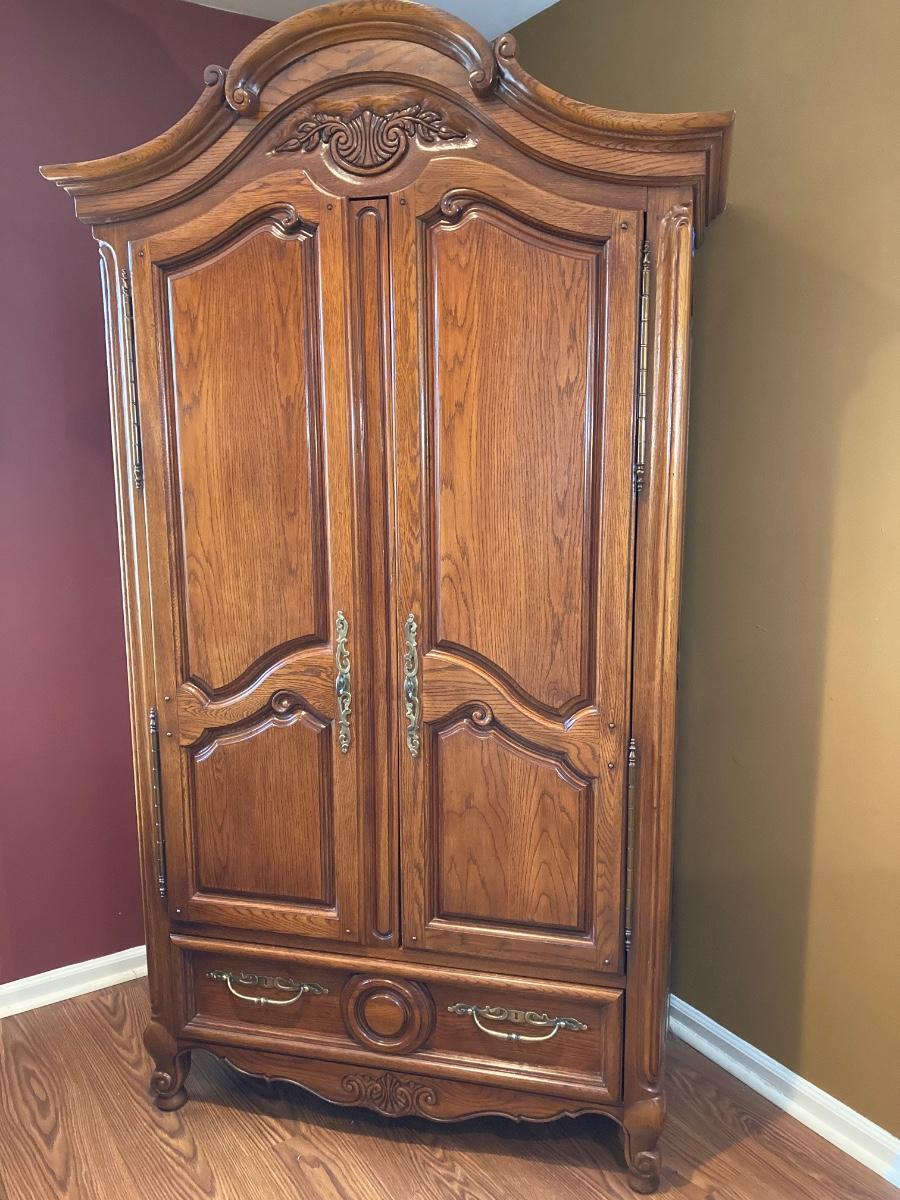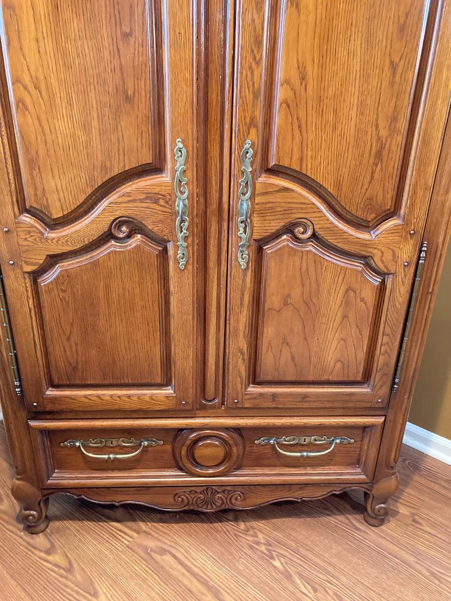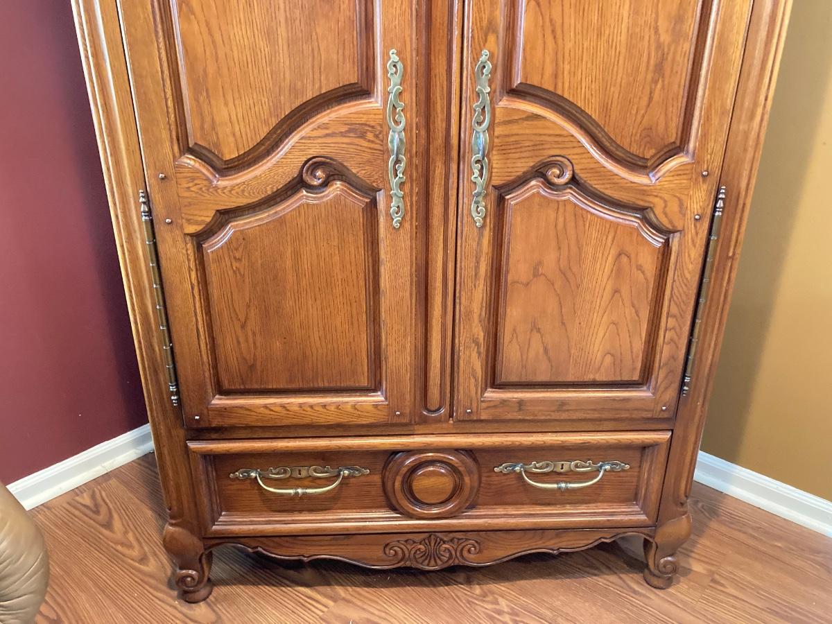 LOT 43J: Country French Provincial Wardrobe/Media Cabinet WITH CONTENTS