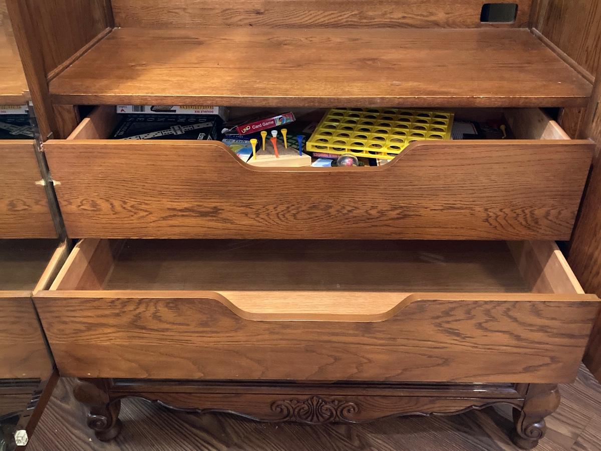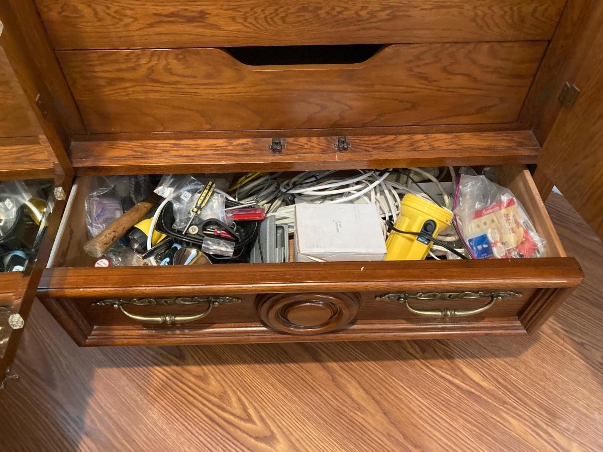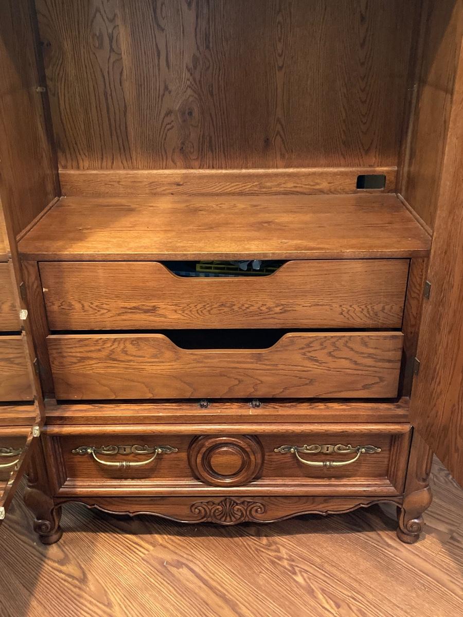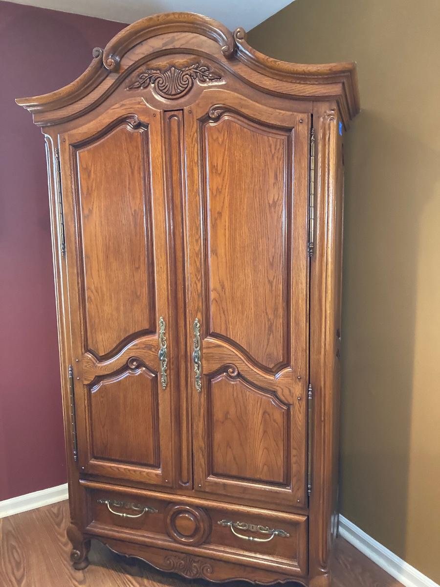 LOT 43J: Country French Provincial Wardrobe/Media Cabinet WITH CONTENTS