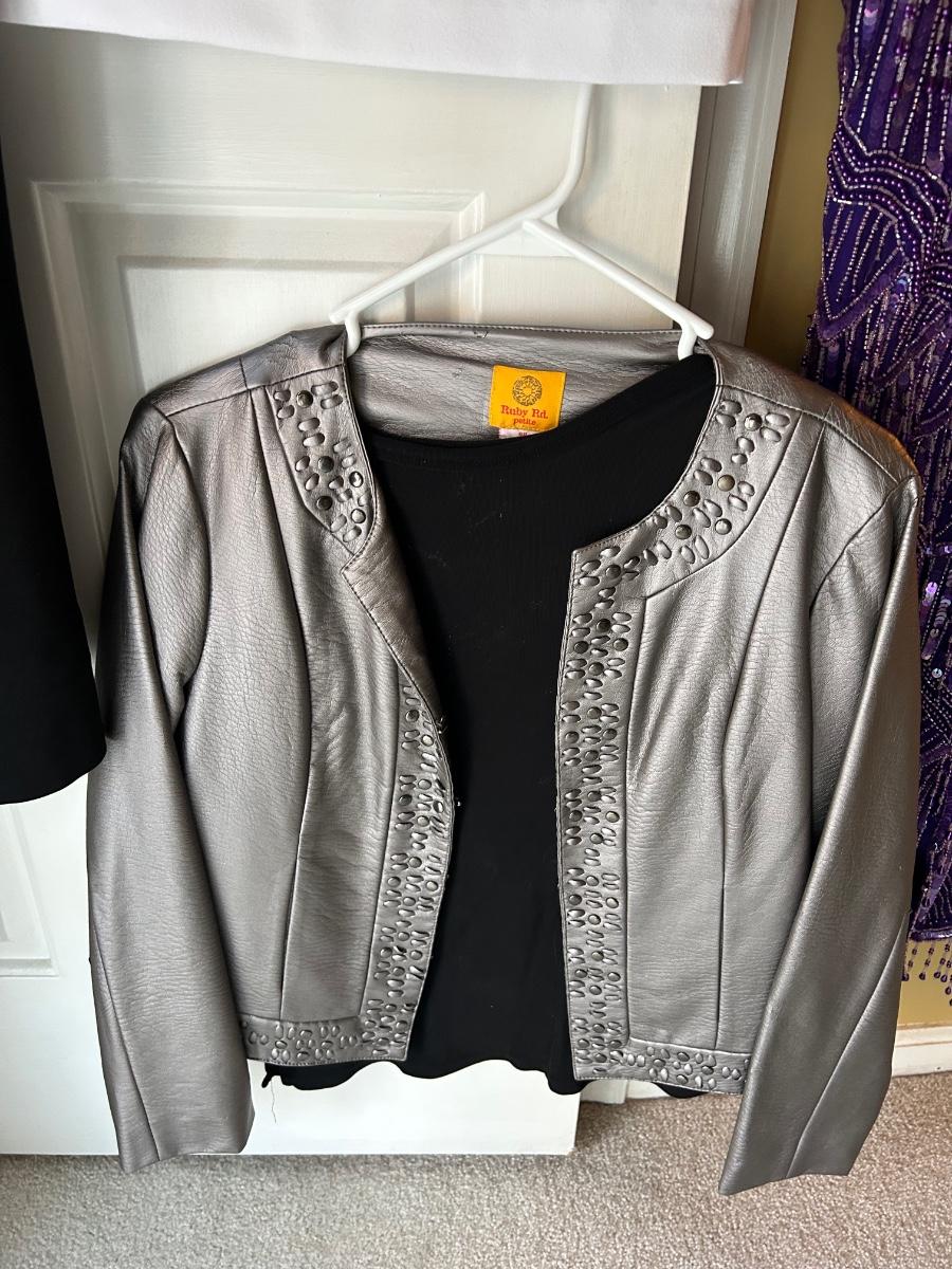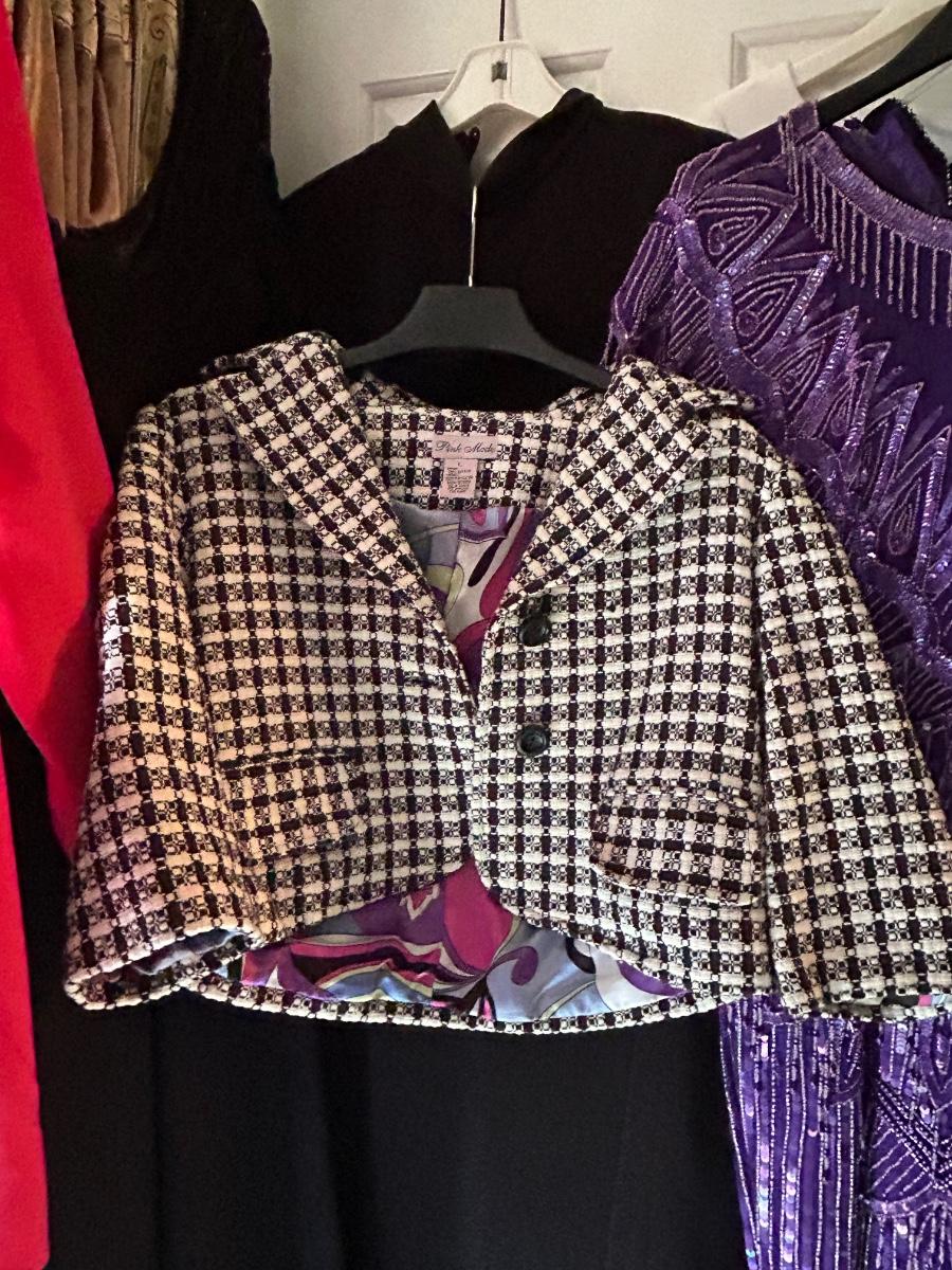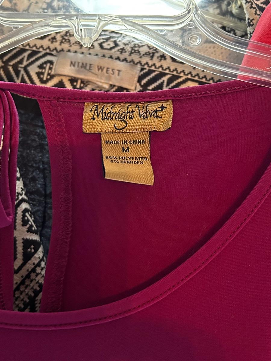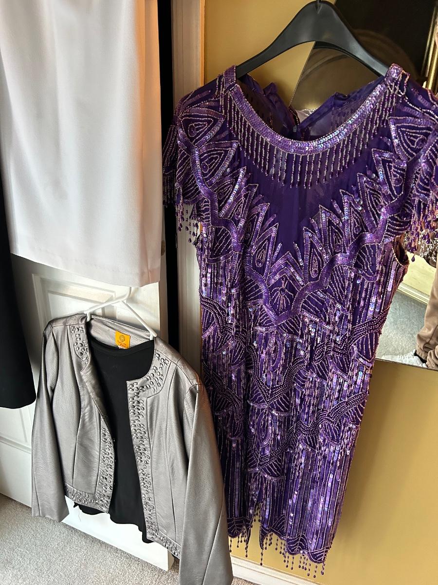 Large walk in closet filled with clothes, shoes, handbags and accessories. Photos show samples of the clothing inside. Various sizes from M-L 10-14.