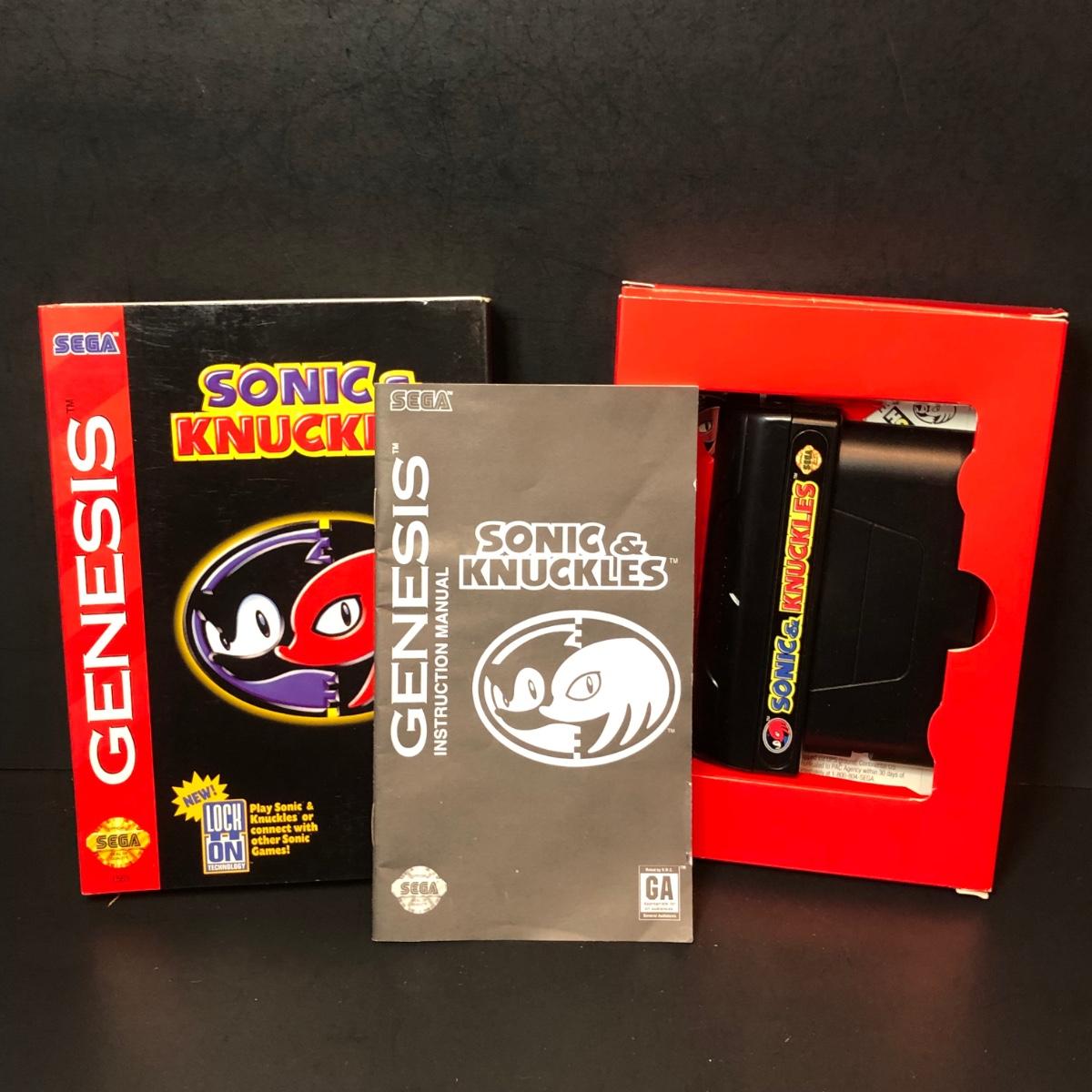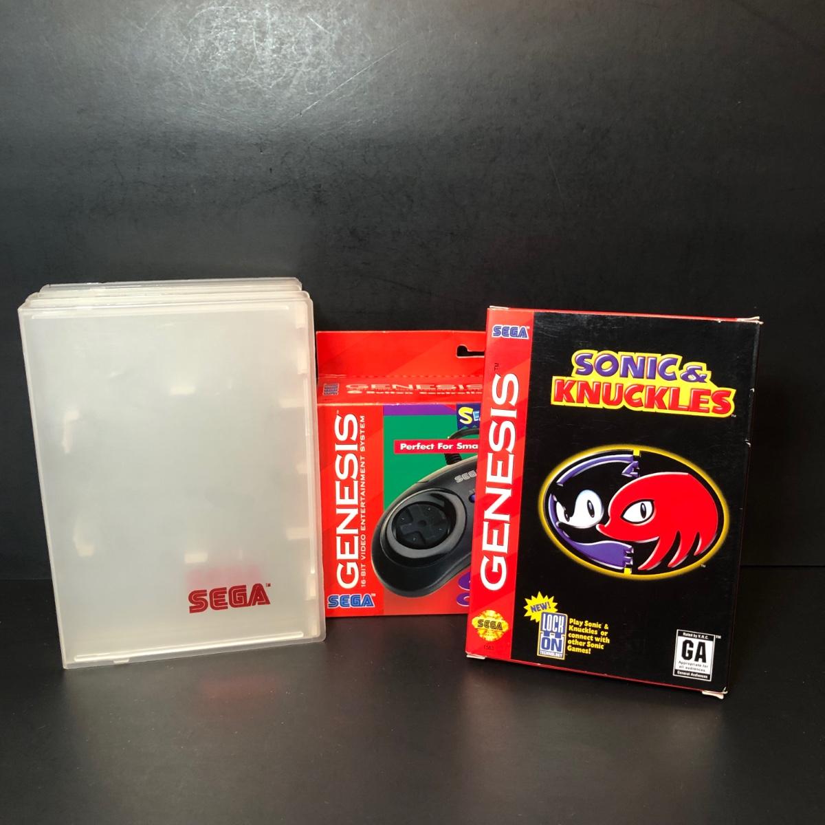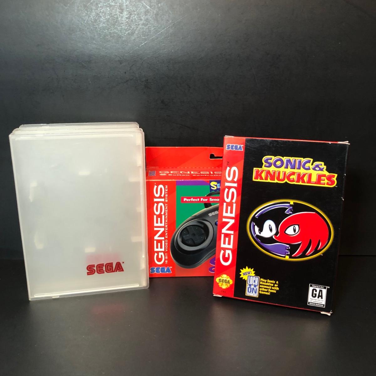 LOT 11M: Sega Genesis Collection - Sonic & Knuckles Game w/ Box & Instructions, Sega Club 6-Button Controller in Box & Plastic Sega Cartridge Cases (3)