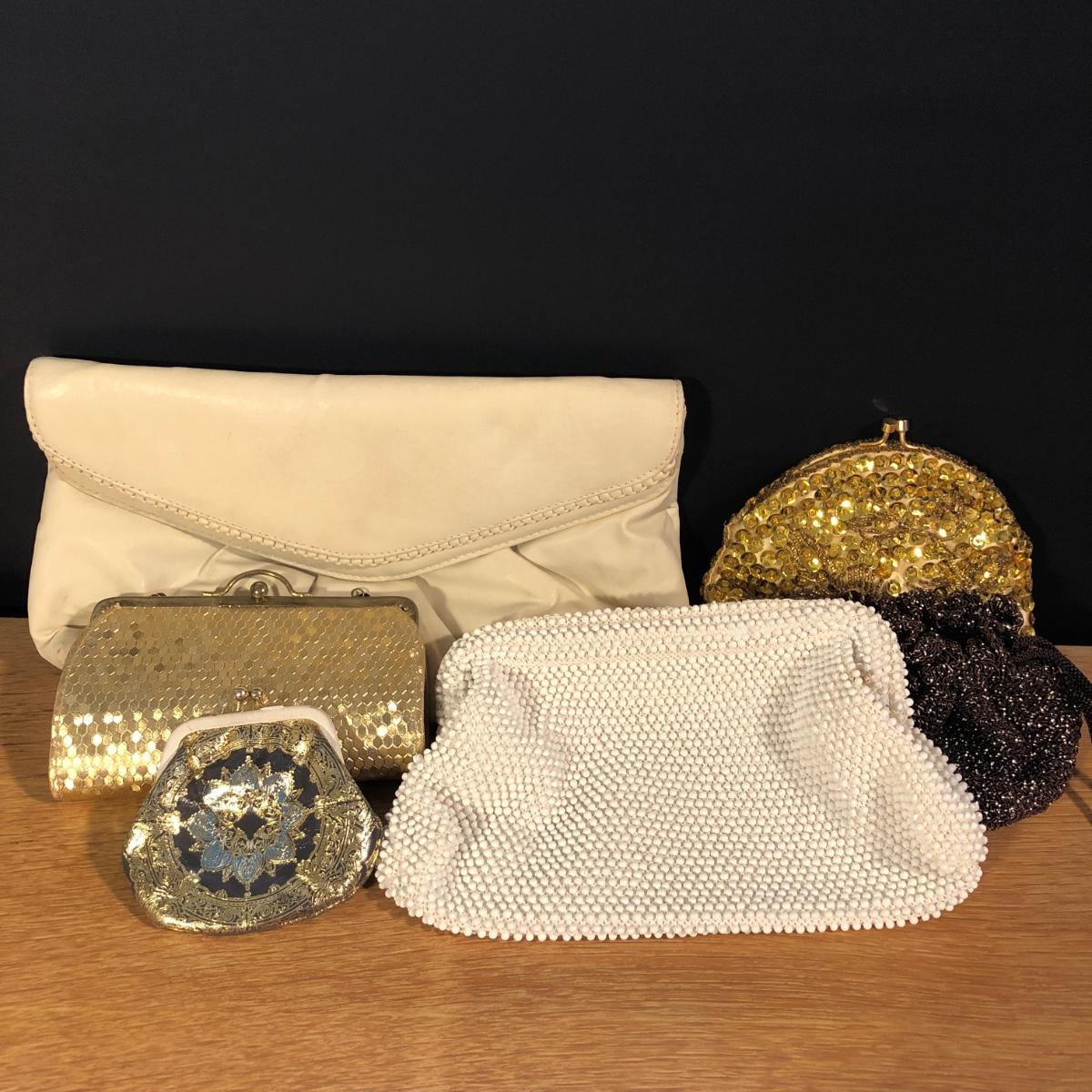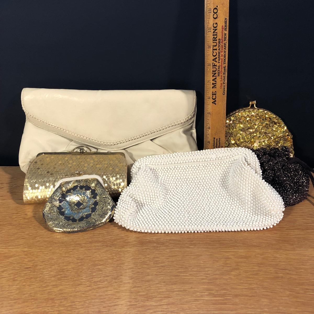 LOT 21M: Cream Clutch, Vintage Beaded Clutch, Gold Tone Evening Bag & More