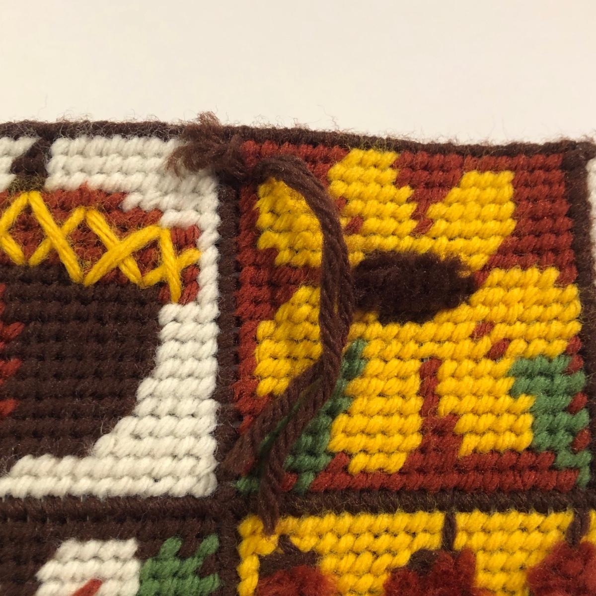 Woven bag needs handle repair.