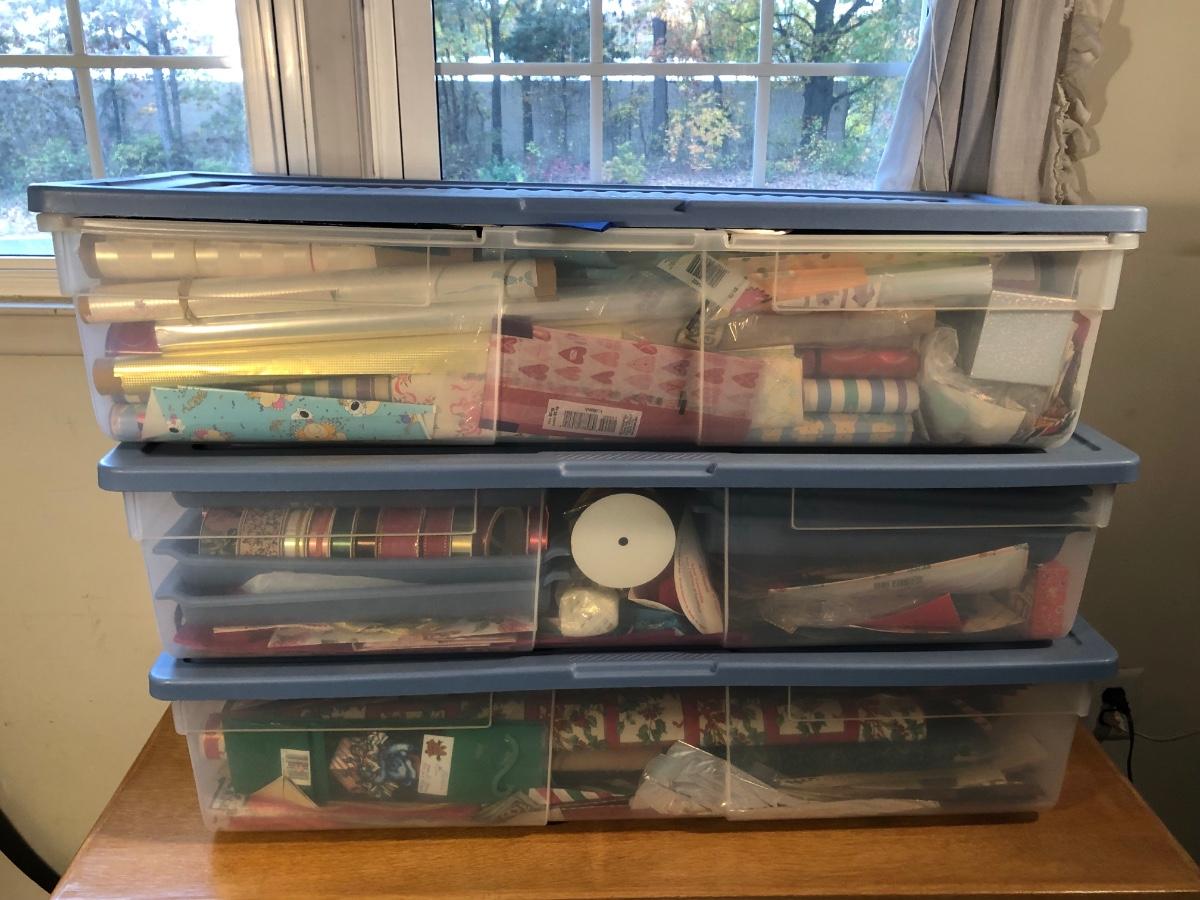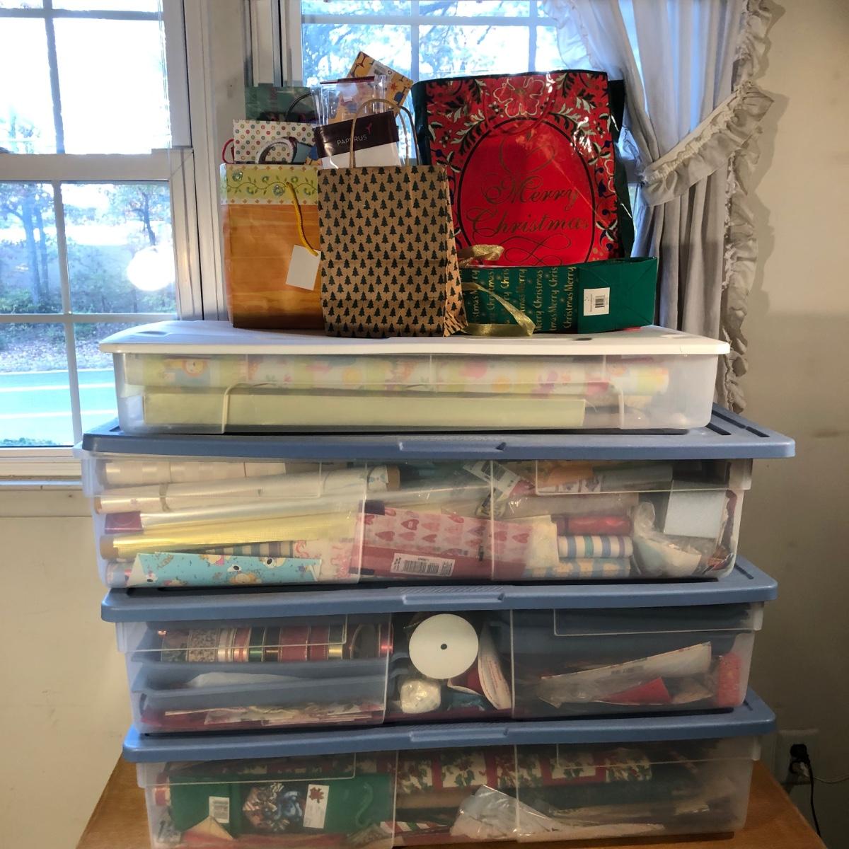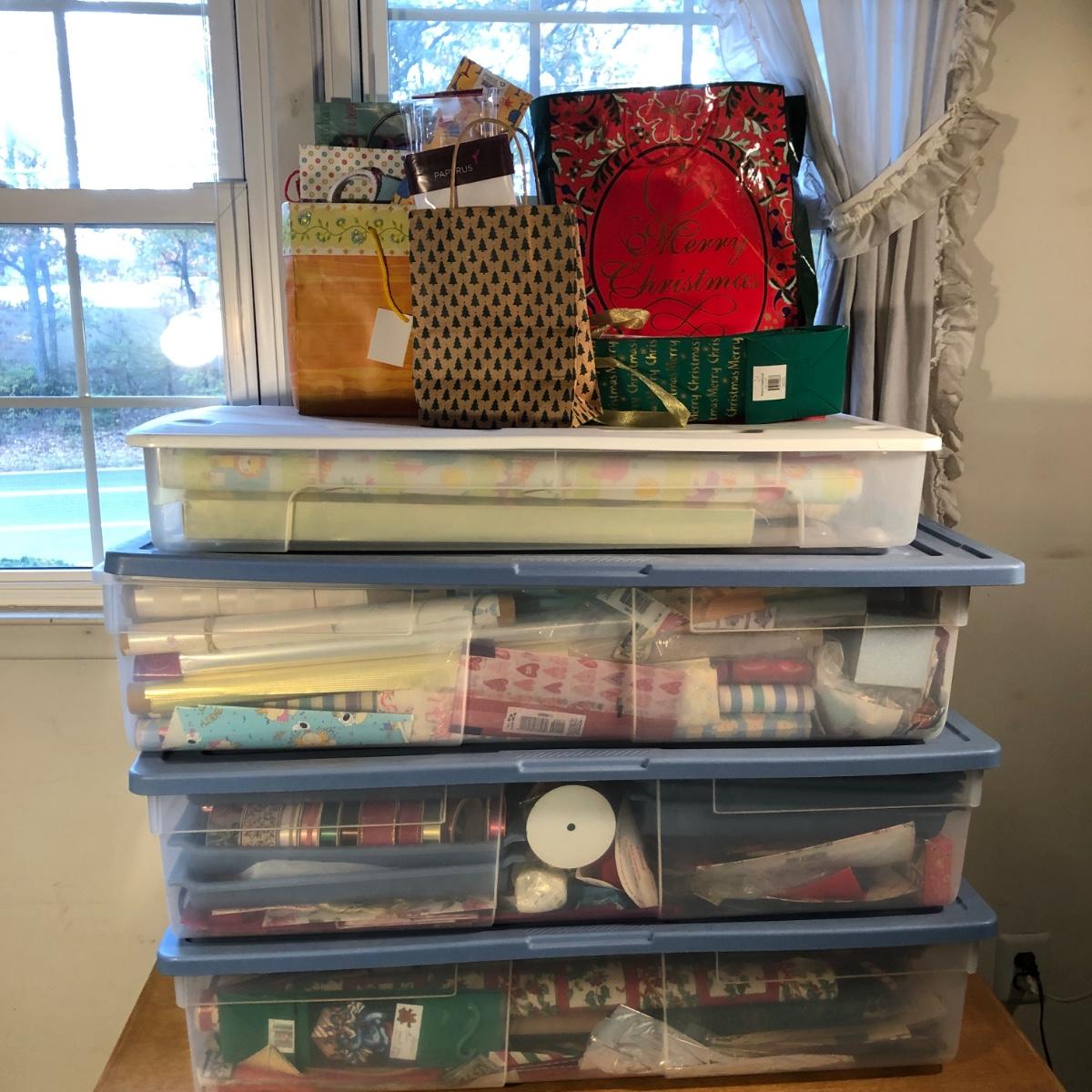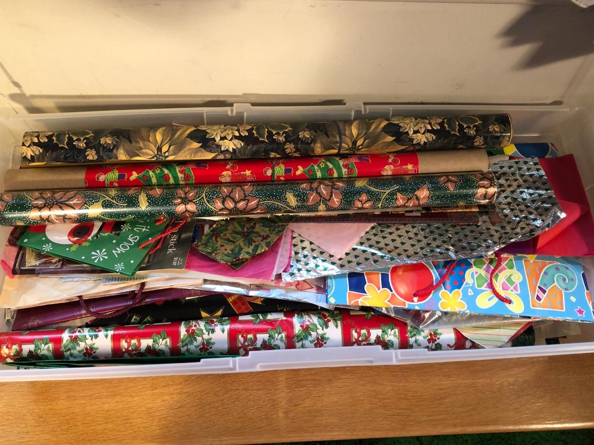 LOT 25M: Large Collection of Gift Wrap, Gift Bags & Ribbon w/ Totes