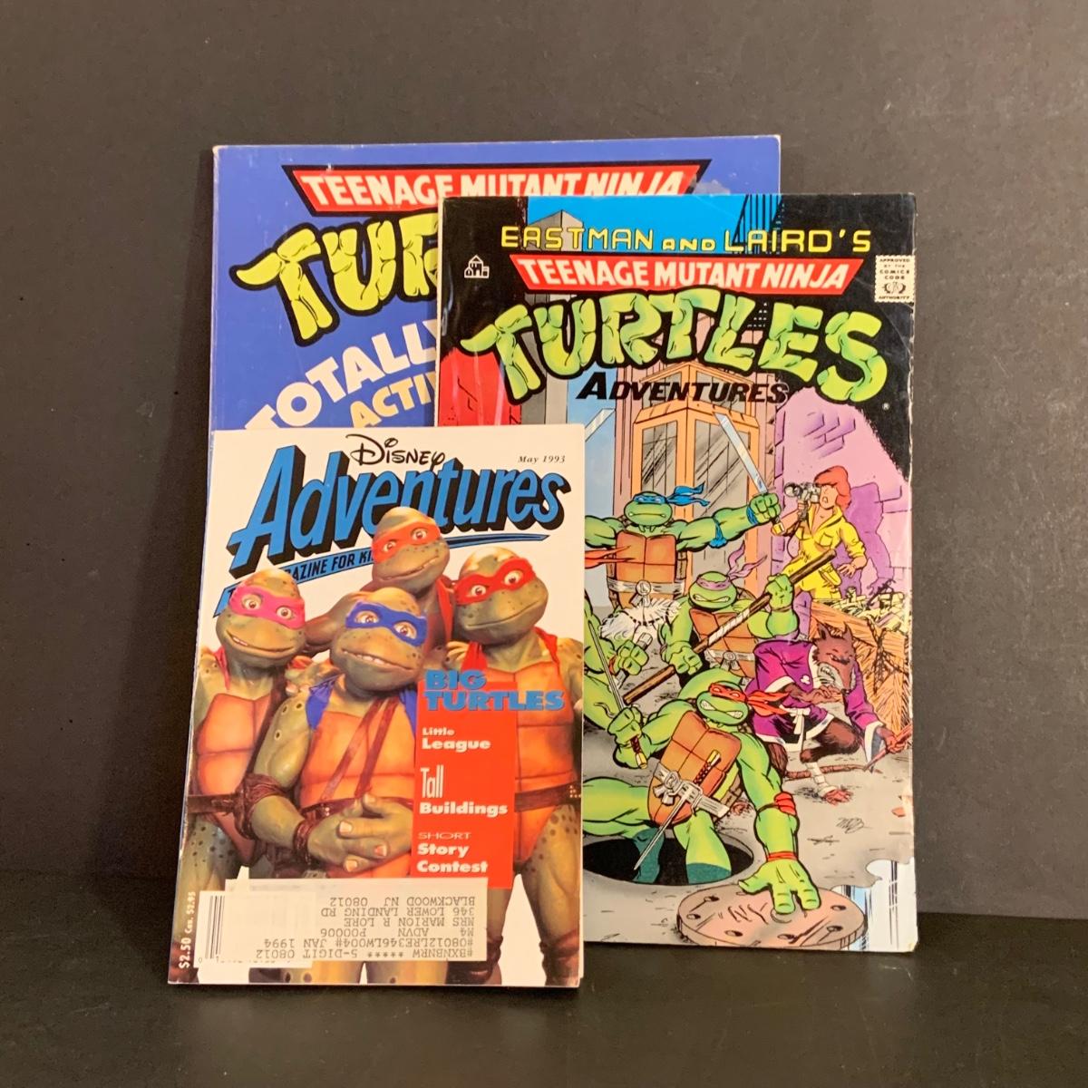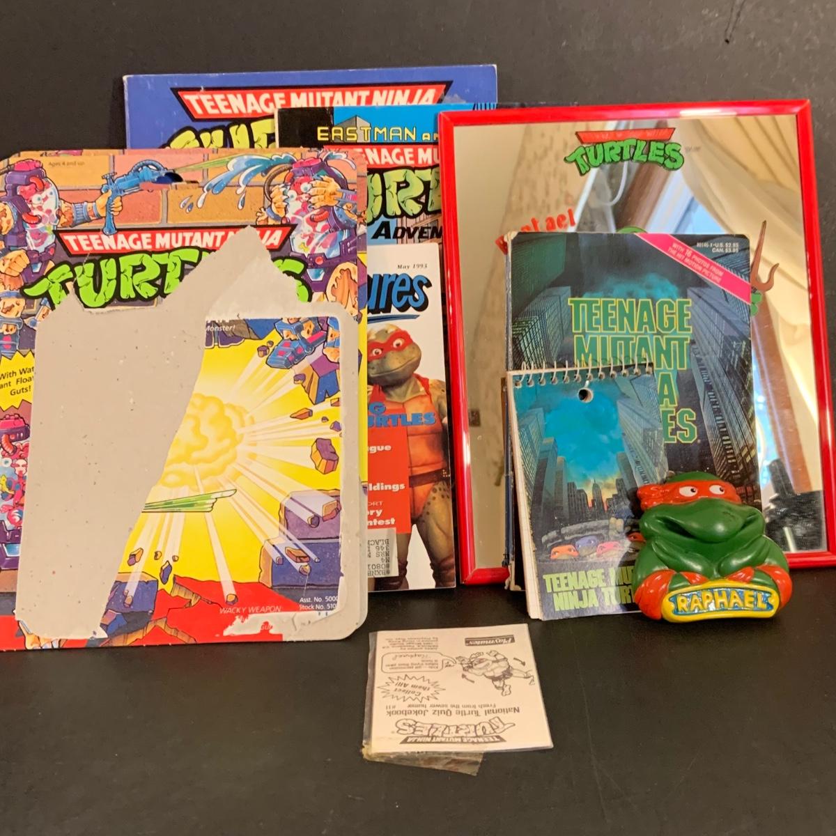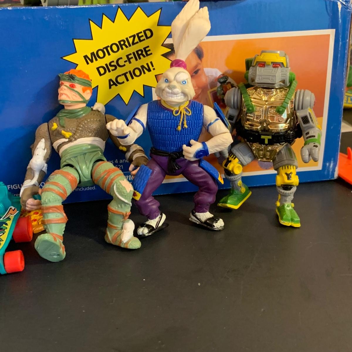 LOT:44G: Teenage Mutan Ninja Turtles - Villians and Other Action Figures, Pizza Thrower Vehicle with Original Box Card Backs, Books and More