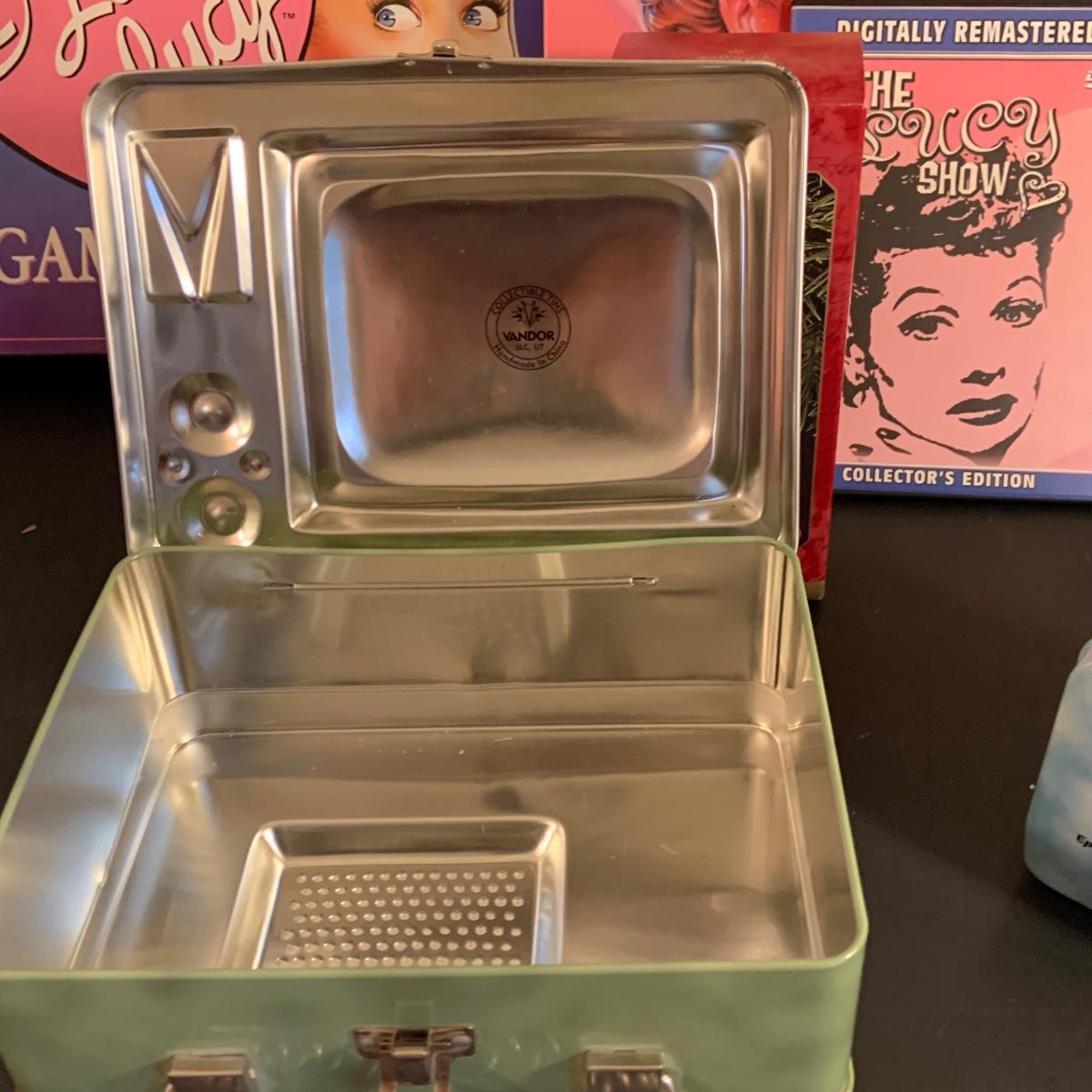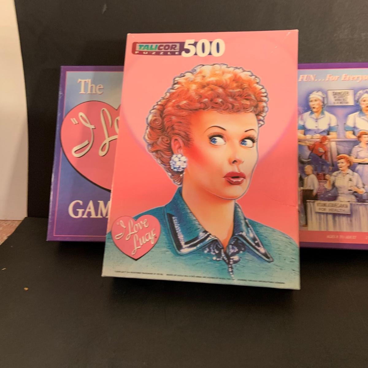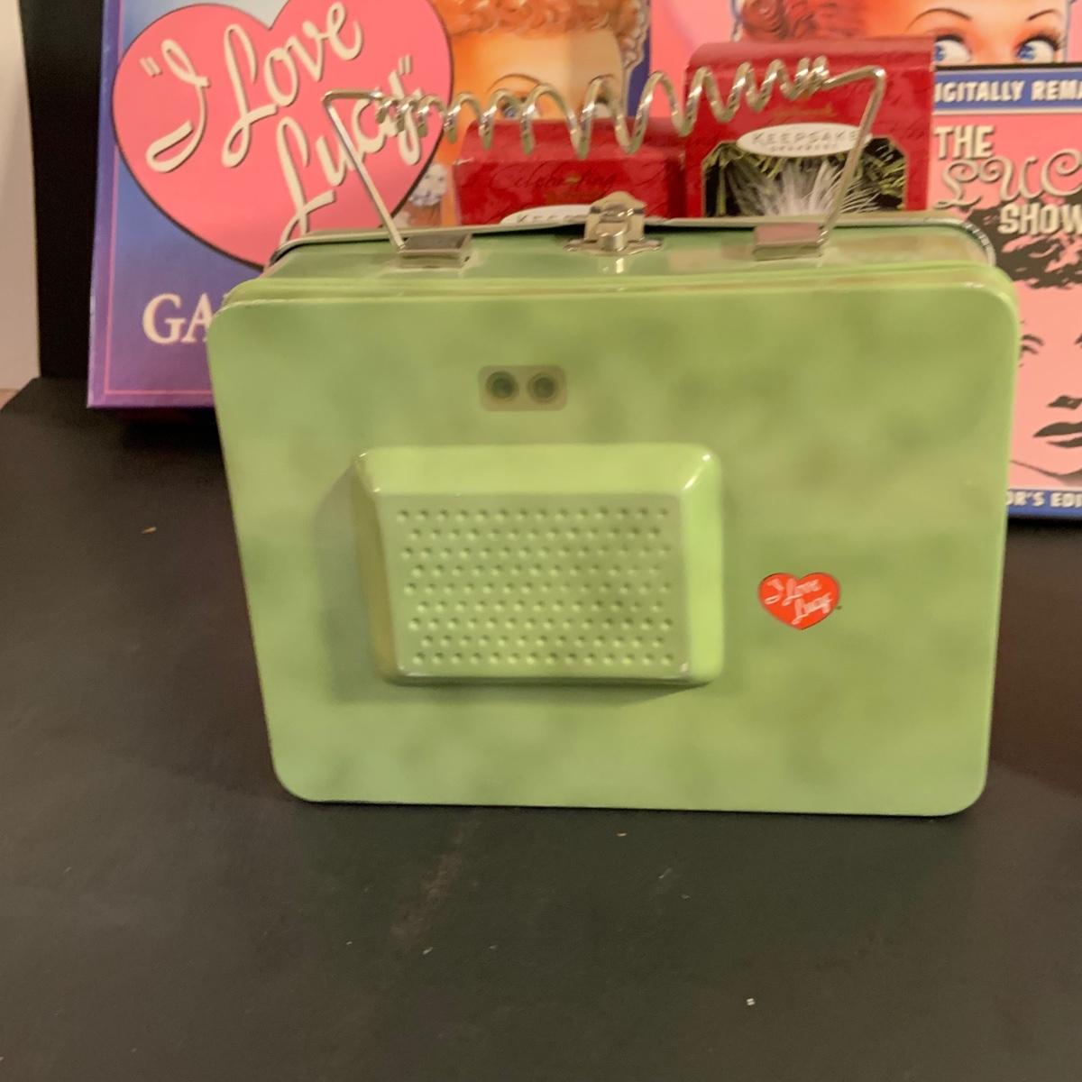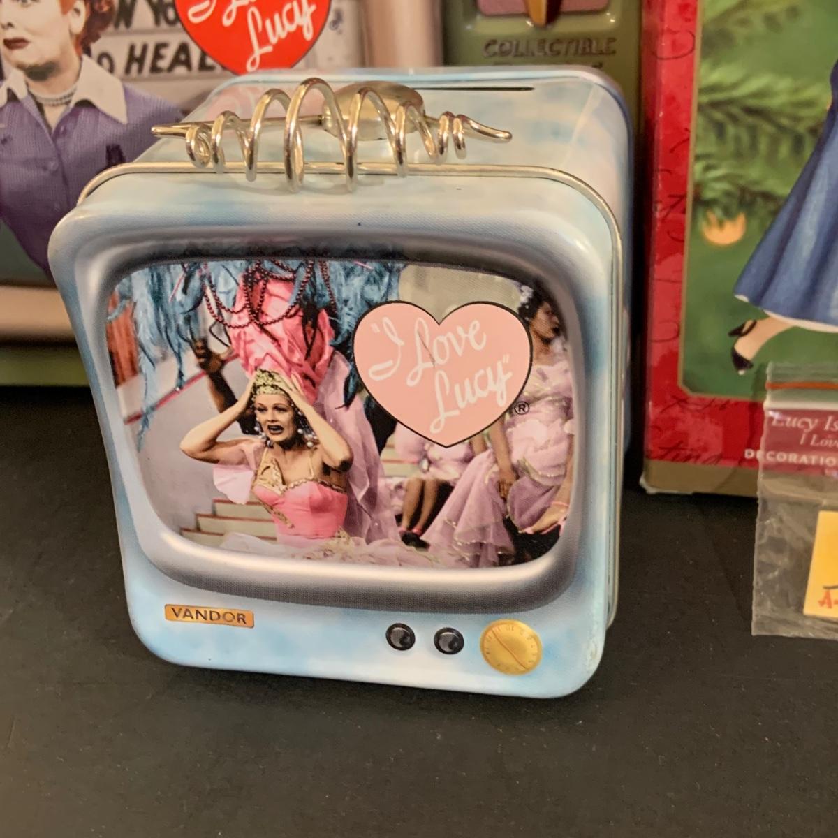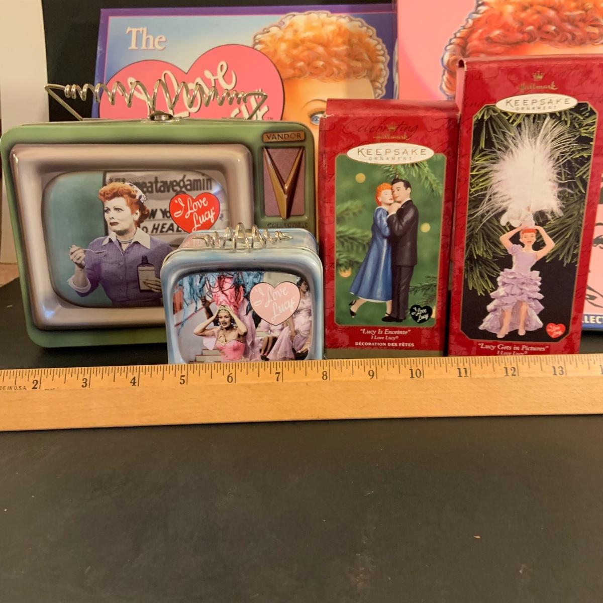LOT:50G: Collection of "I Love Lucy" Memobellia Including Tins, Ornaments, Puzzle, Game and DVD.