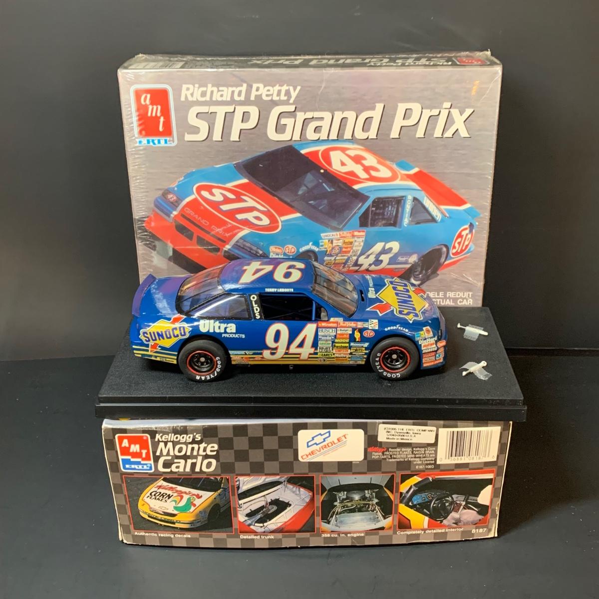 LOT 51R: AMI/Ertl STP Grand Prix Model (NIP), AMI/Ertl Kellog's Monte Carlo Model & Sunoco Model Car in w/Display Case