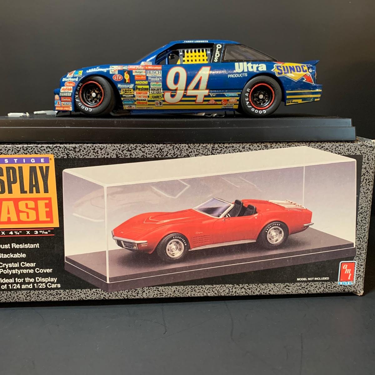 LOT 51R: AMI/Ertl STP Grand Prix Model (NIP), AMI/Ertl Kellog's Monte Carlo Model & Sunoco Model Car in  w/Display Case