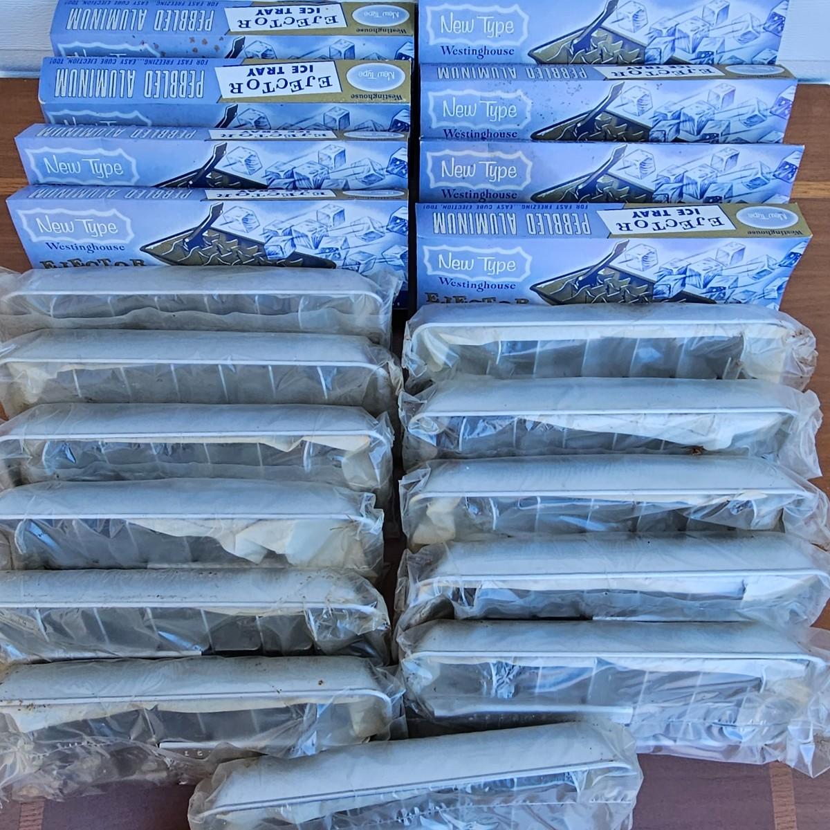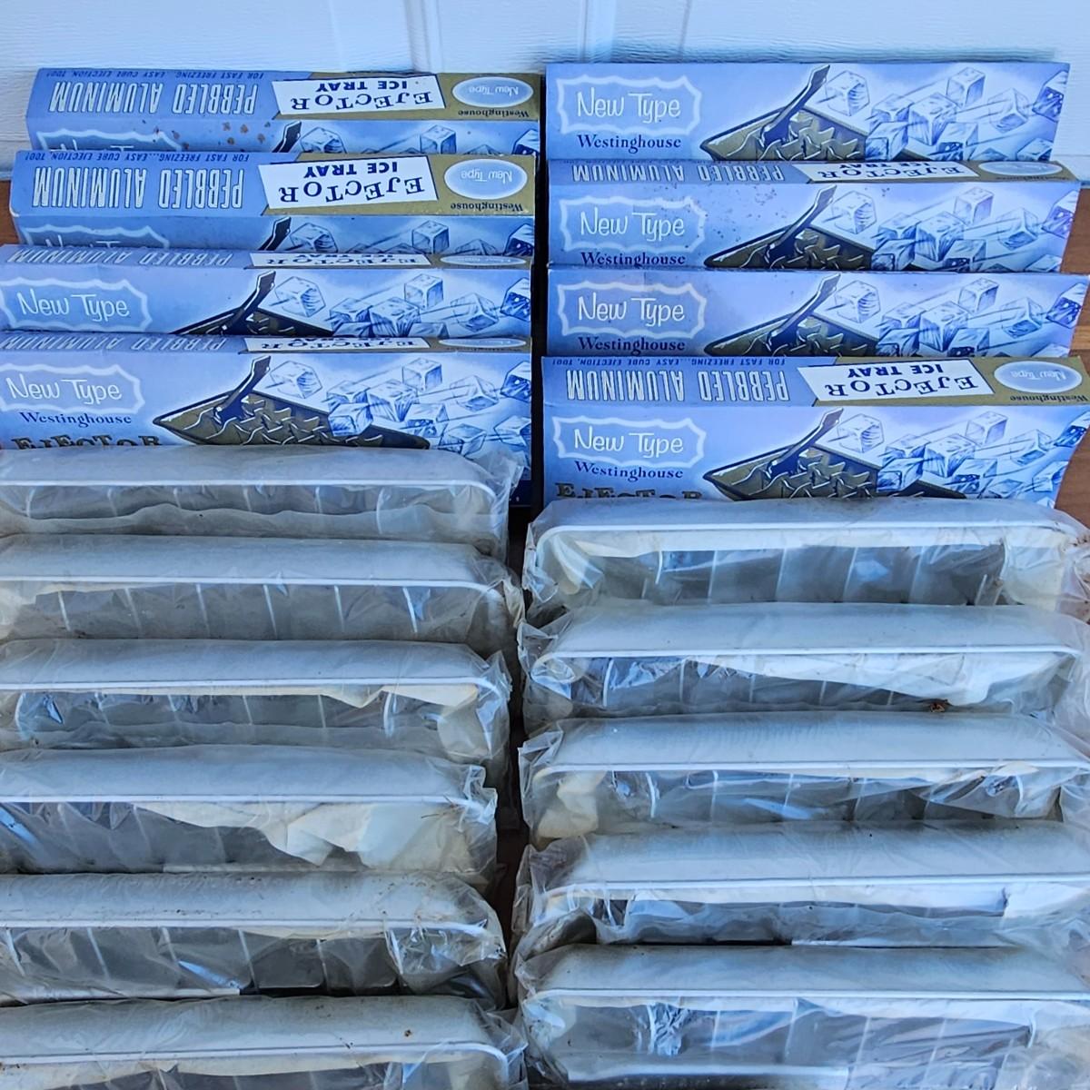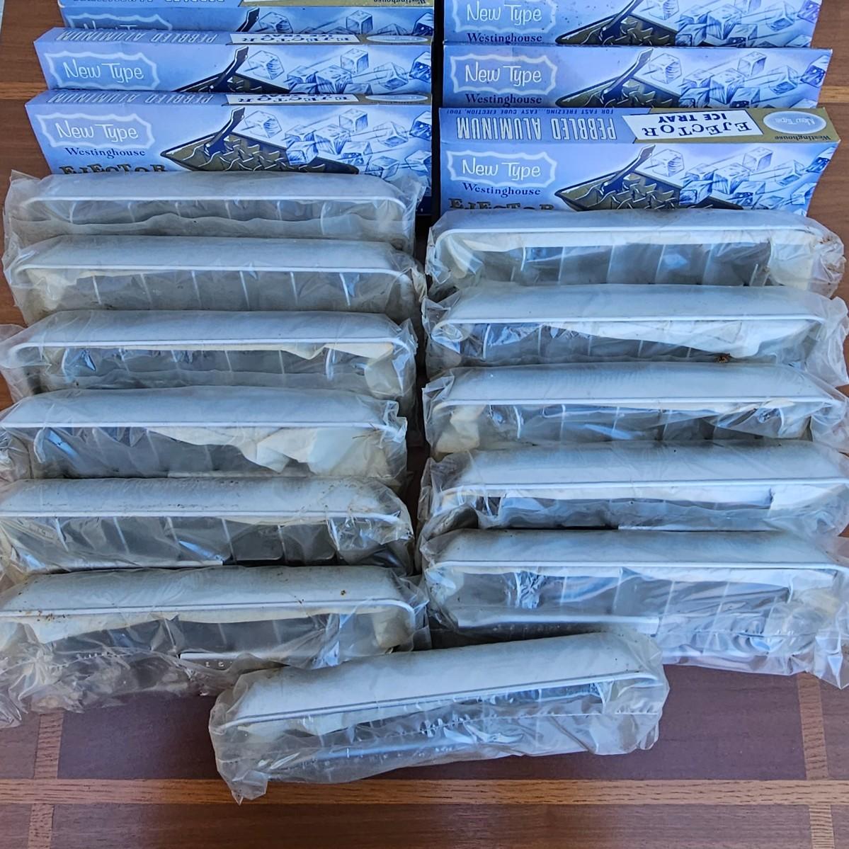 LOT 61S: Large Resellers Lot of Vintage Westinghouse Pebbled Aluminum Ice Cube Trays