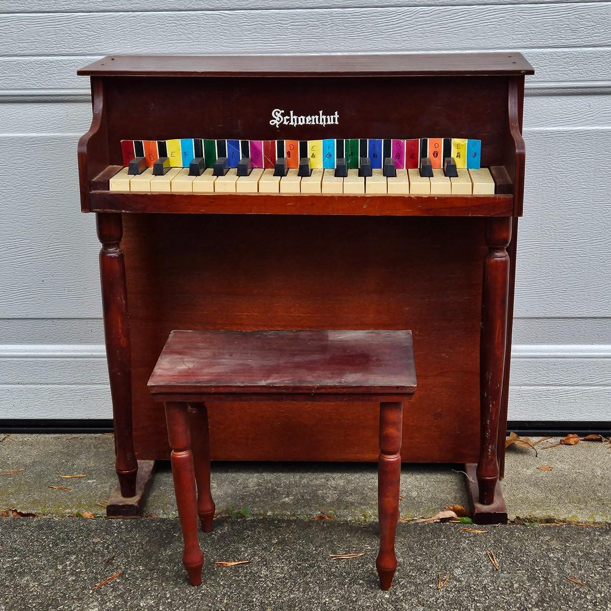 LOT 65S: Vintage Schoenhut Childrens Upright Piano & Bench