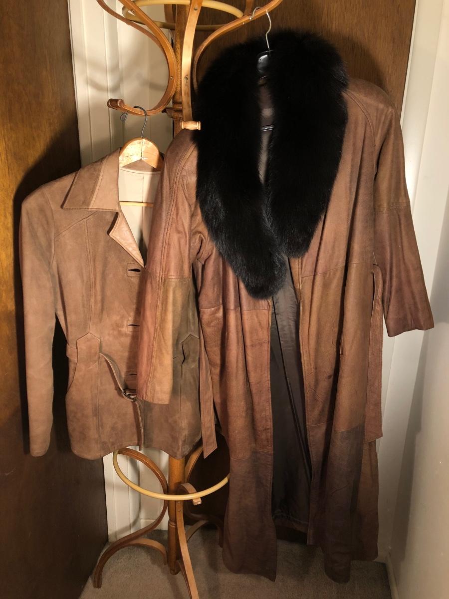 LOT 82M: Vintage Ladies Jackets incl. Long Leather Coat w/ Black Fur Collar