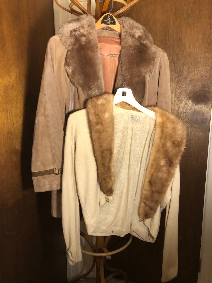 LOT 89M: Vintage Clothing w/ Faux Fur Collars - Cashmere Sweater & Leather/Suede Jacket