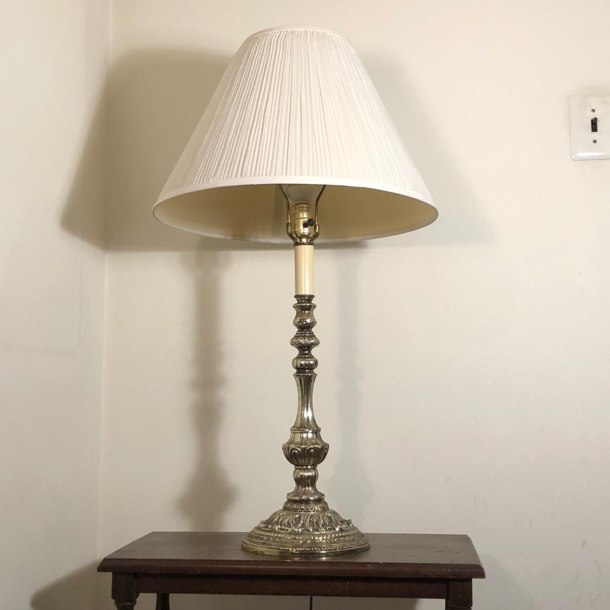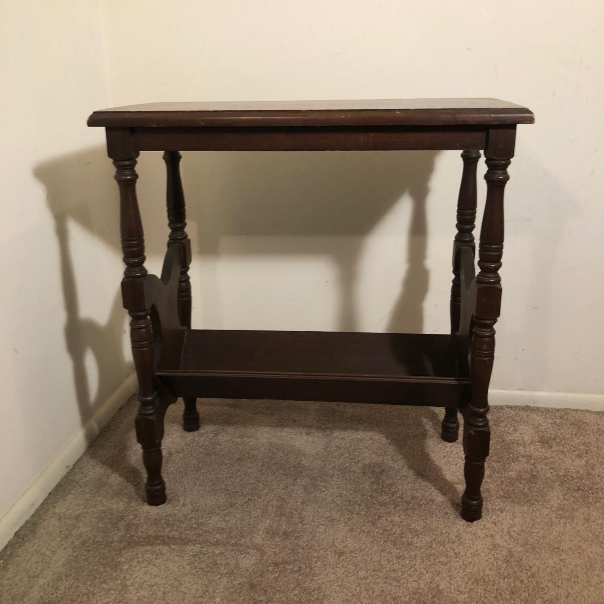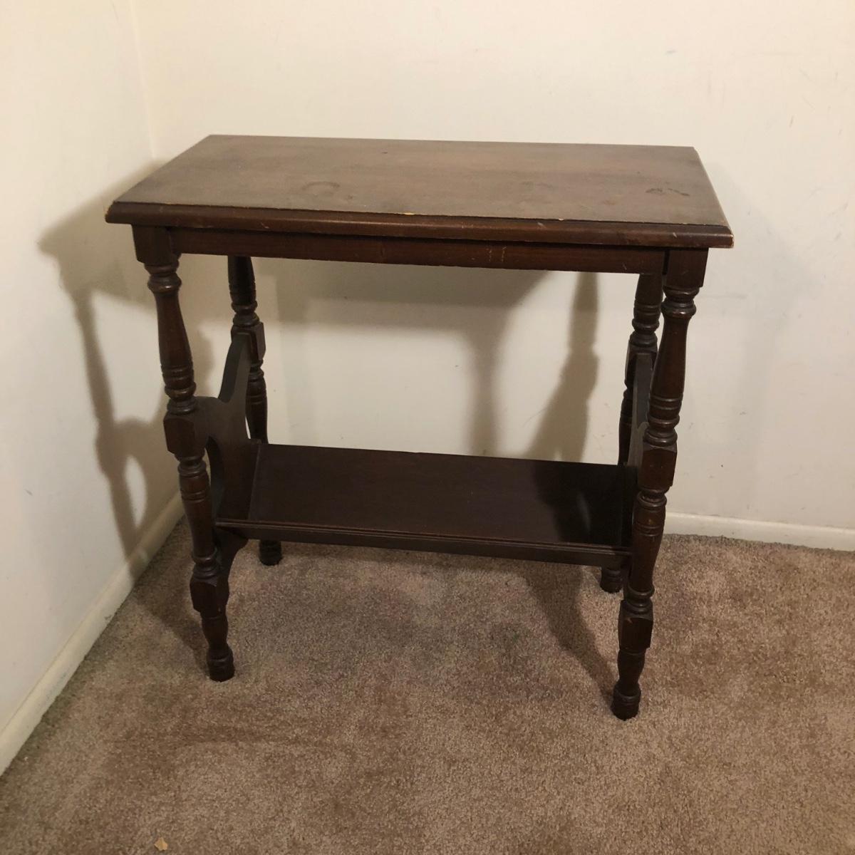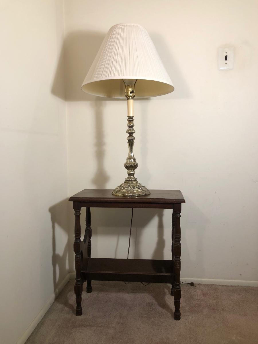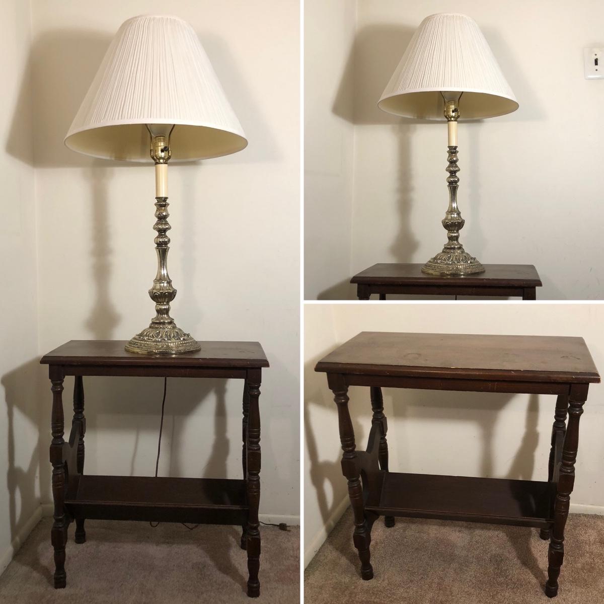 LOT 93M: Vintage Wooden Side Table w/ 33" Tall Lamp