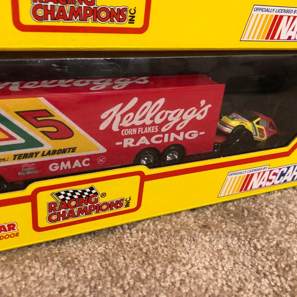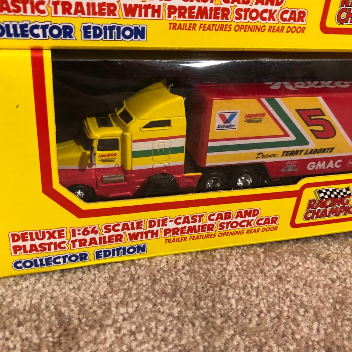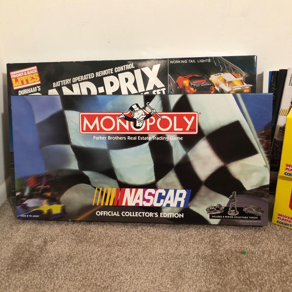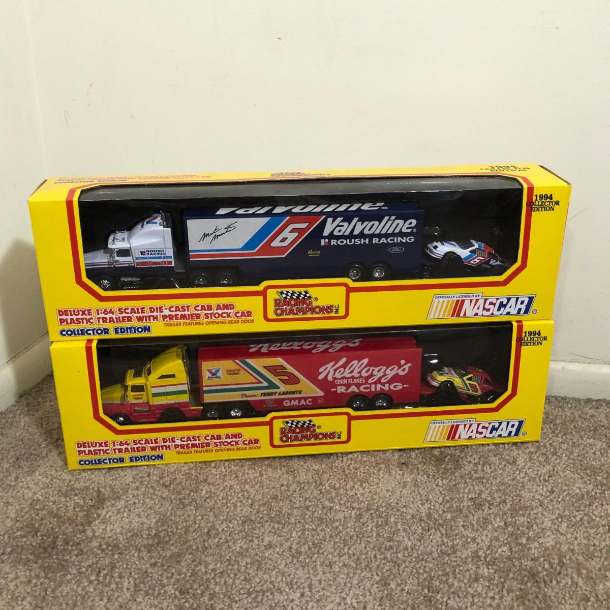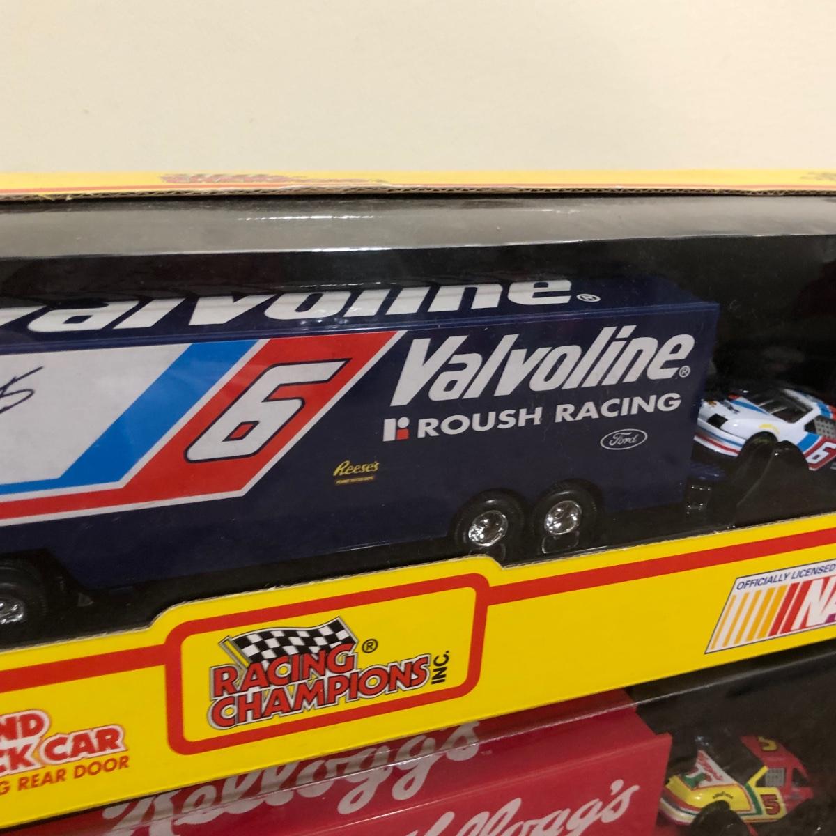 LOT 95M: NASCAR & Racing Collection - Duffel Bag, Monopoly, 1:64 Scale Die Cast Trailers in Boxes (Valvoline & Kellogg's) & More