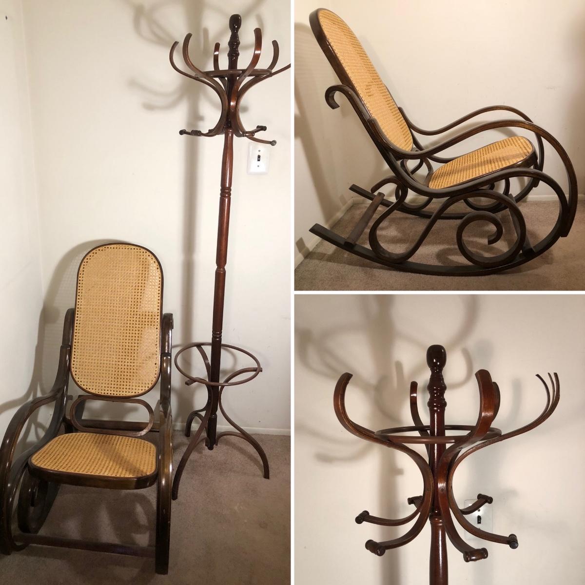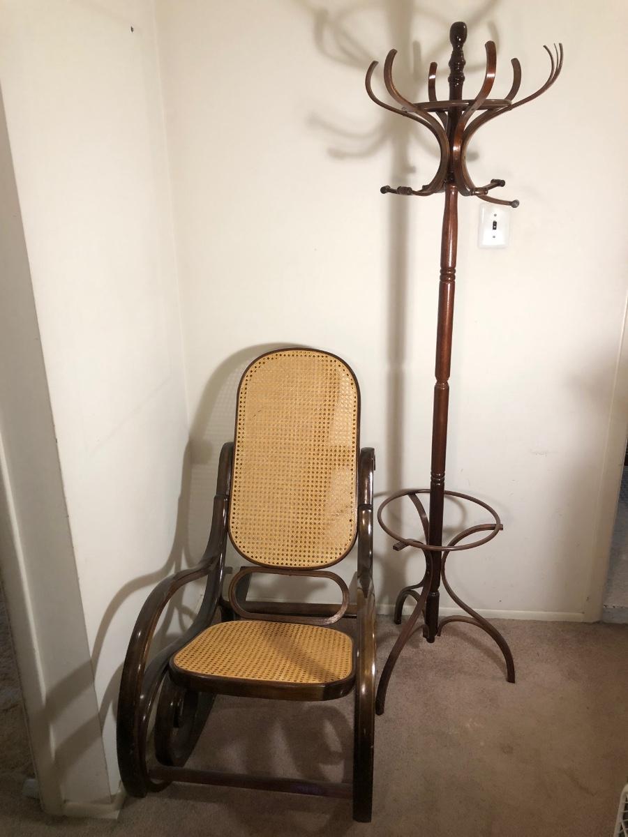 LOT 96M: Vintage Bentwood Rocking Chair & Coat Rack