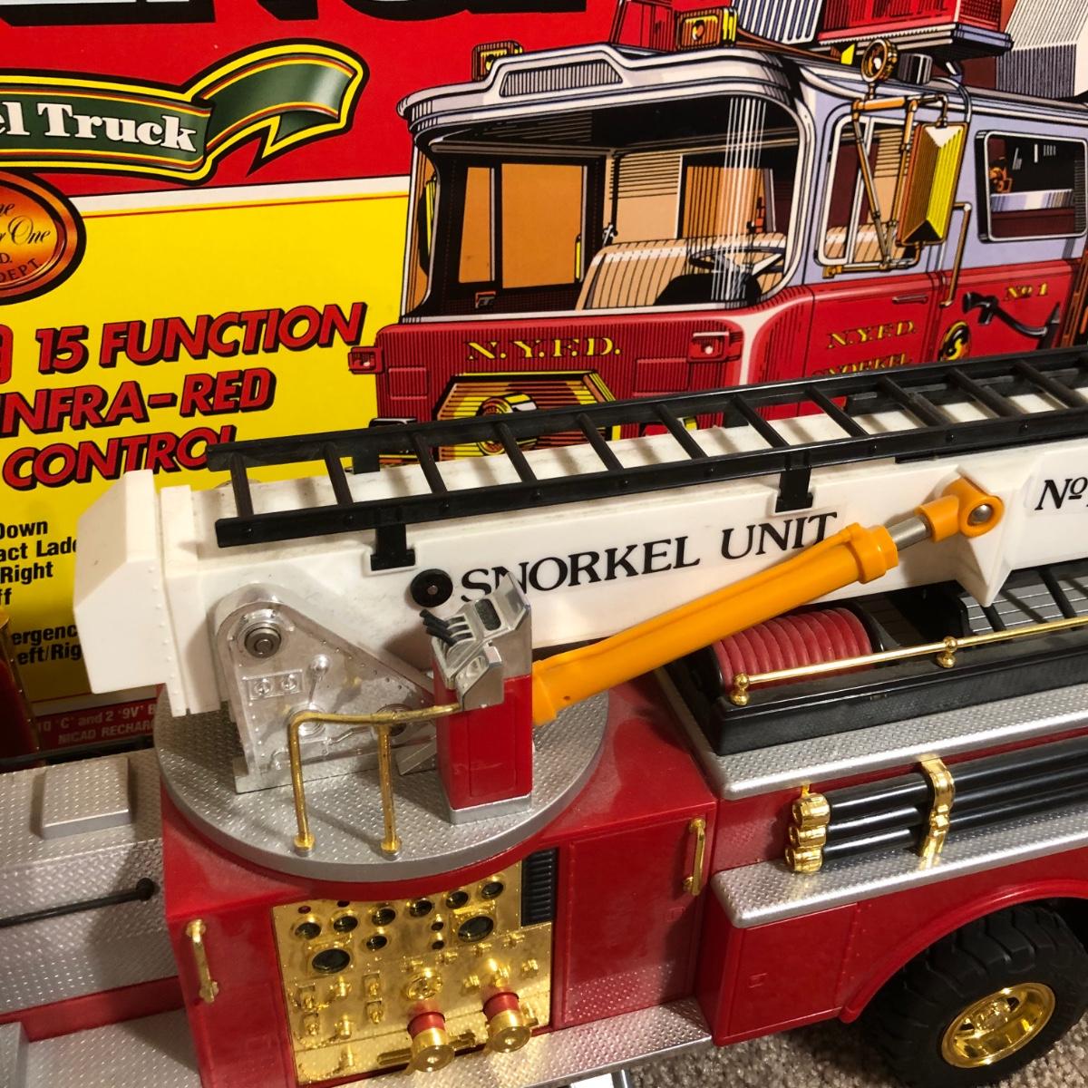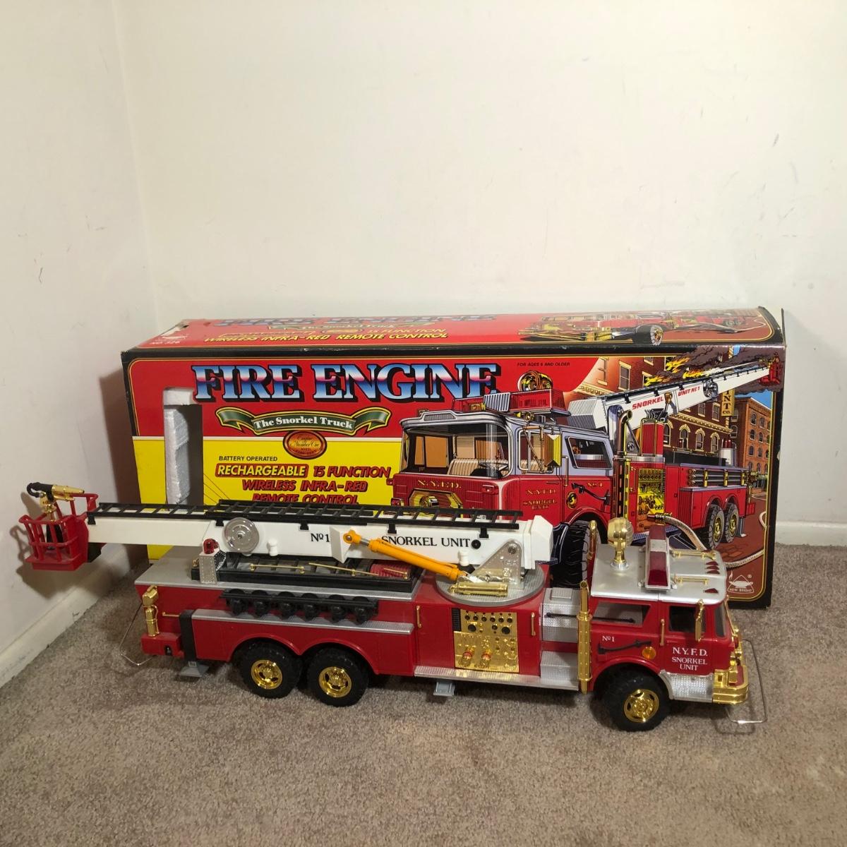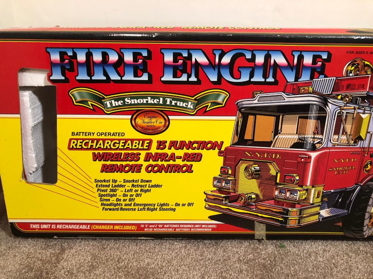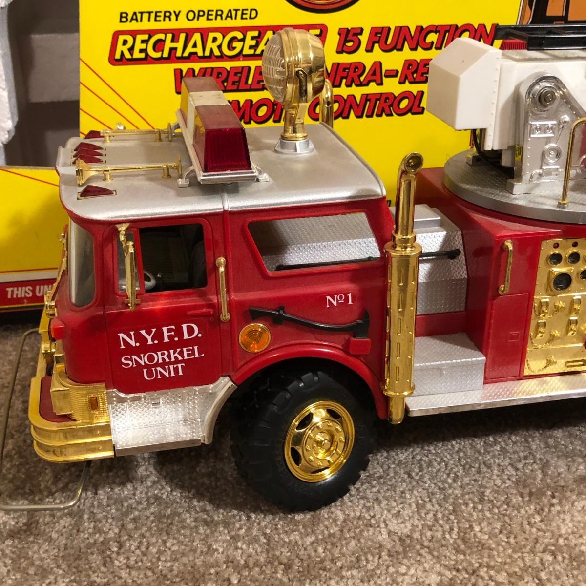 LOT 101M: Battery Operated NYFD Snorkel Truck Fire Engine w/ Original Box & Remote