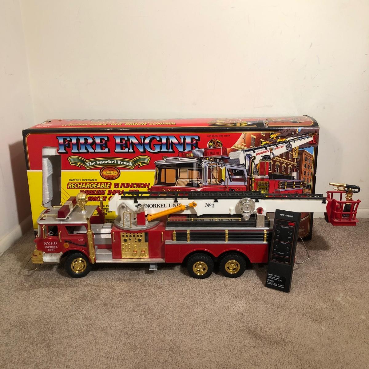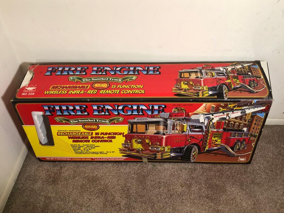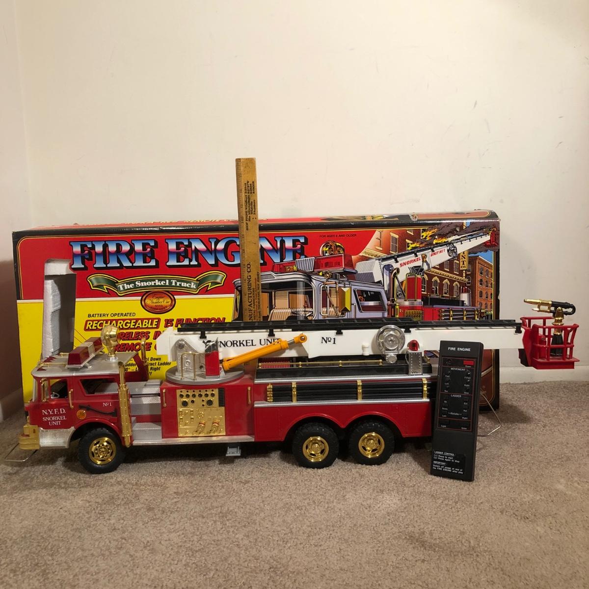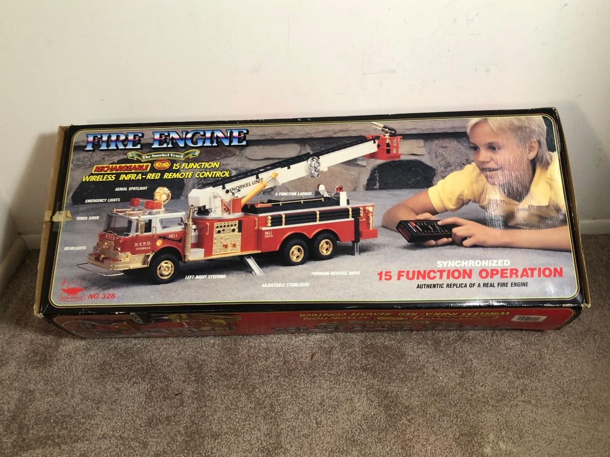LOT 101M: Battery Operated NYFD Snorkel Truck Fire Engine w/ Original Box & Remote