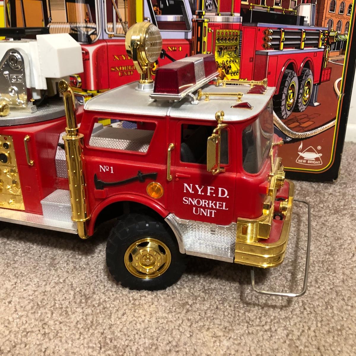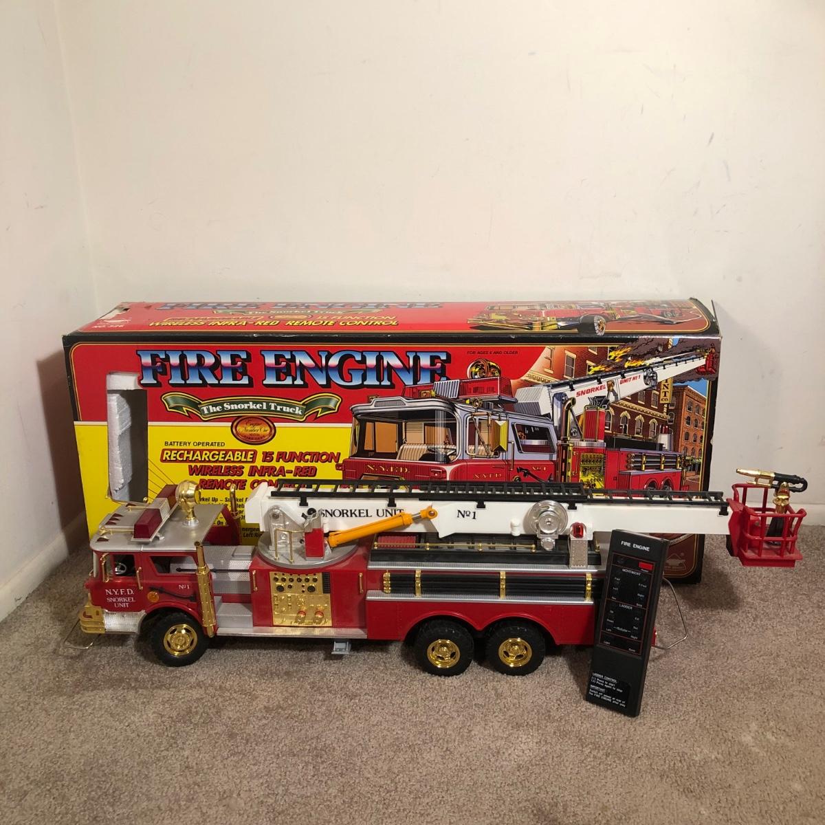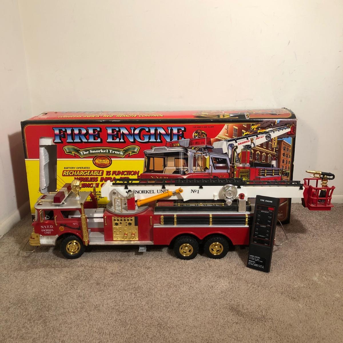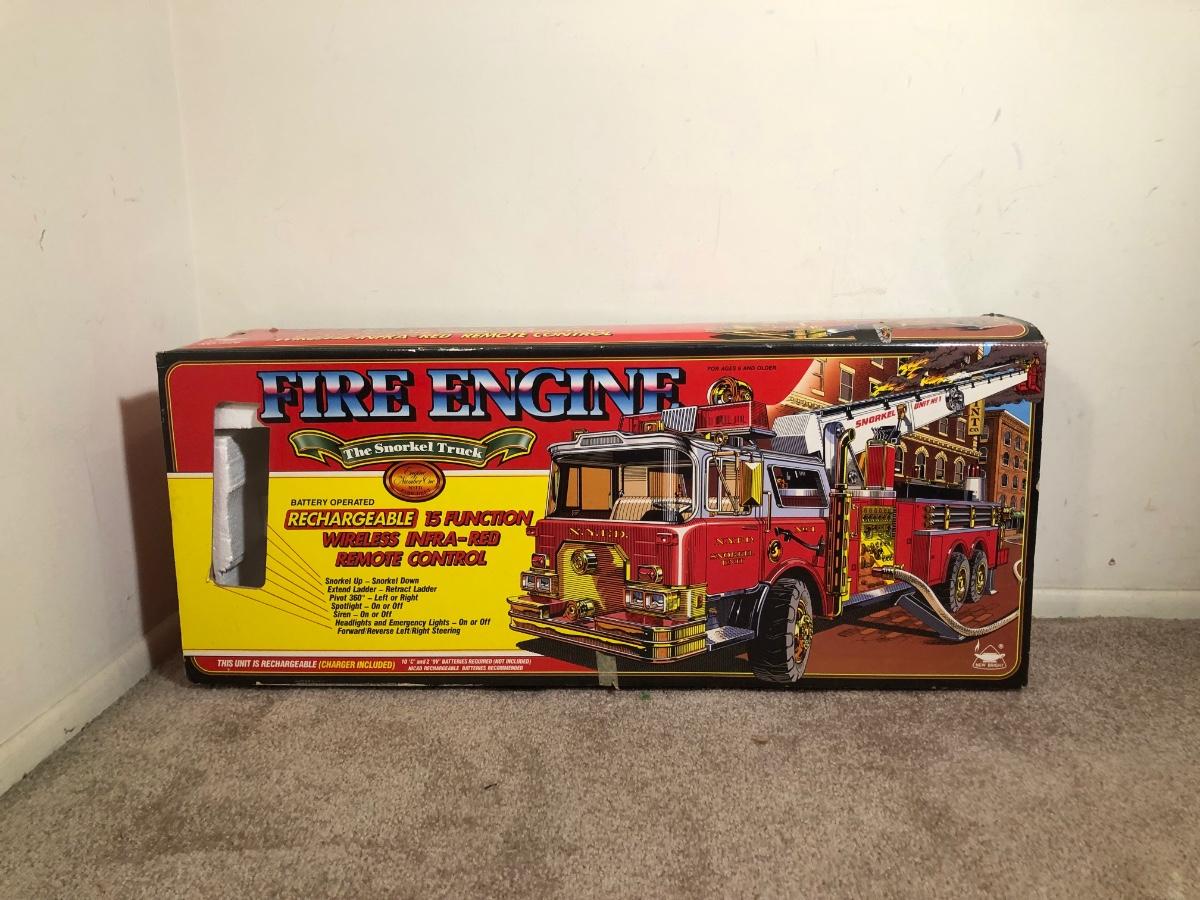 LOT 101M: Battery Operated NYFD Snorkel Truck Fire Engine w/ Original Box & Remote