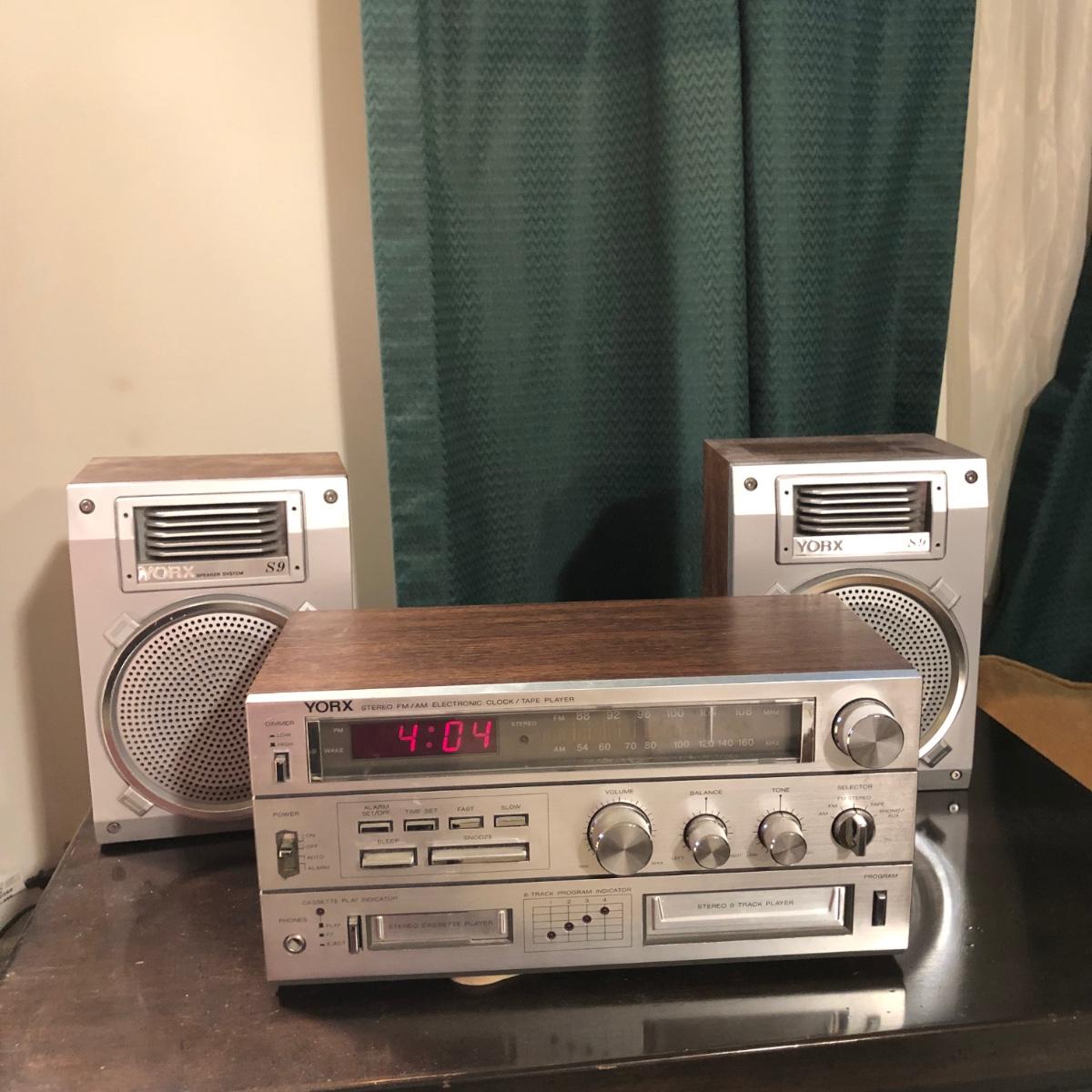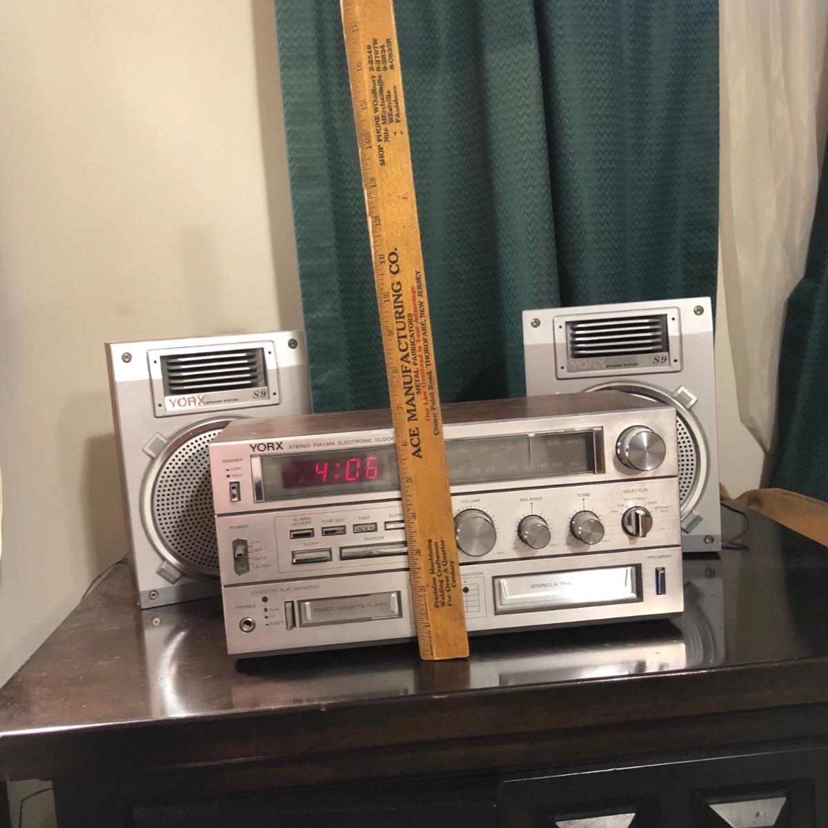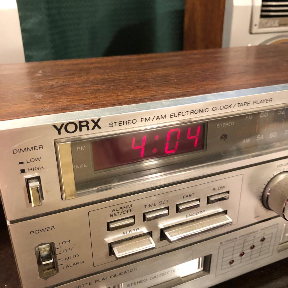 LOT 106M: Yorx Stereo FM/AM Electric Clock/Tape Player Model M2487 w/ Yorx Speakers Model S-9